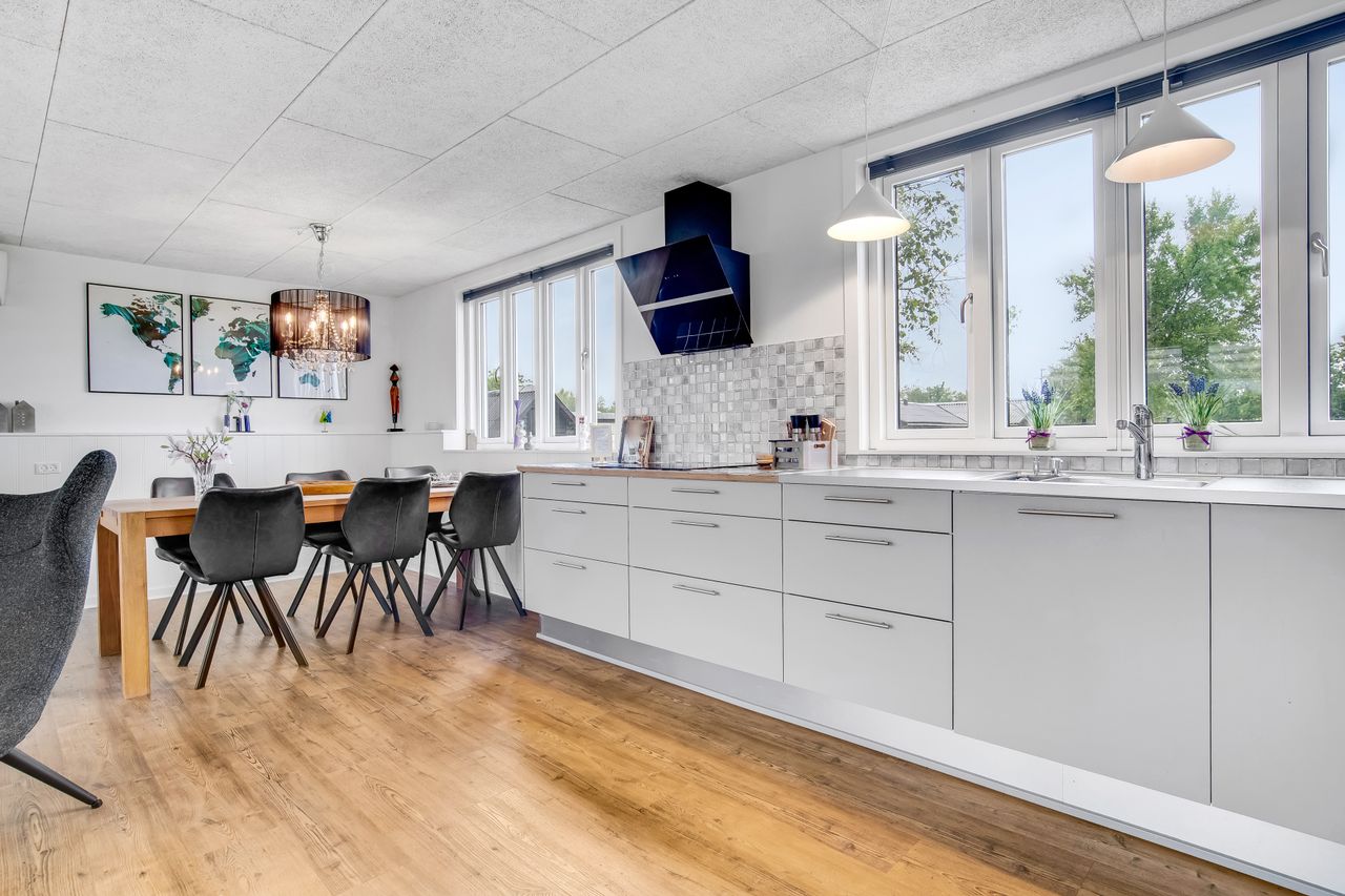 Huset er oprindeligt opført i 1977, men gennemgik i 2022 en gennemgribende renovering, så det i dag fremstår lyst, moderne og indflytningsklart. I får i alt 86 m2, heraf 74 m2 i hovedhuset og 12 m2 i det charmerende og velbyggede anneks – perfekt til gæster eller teenagere.