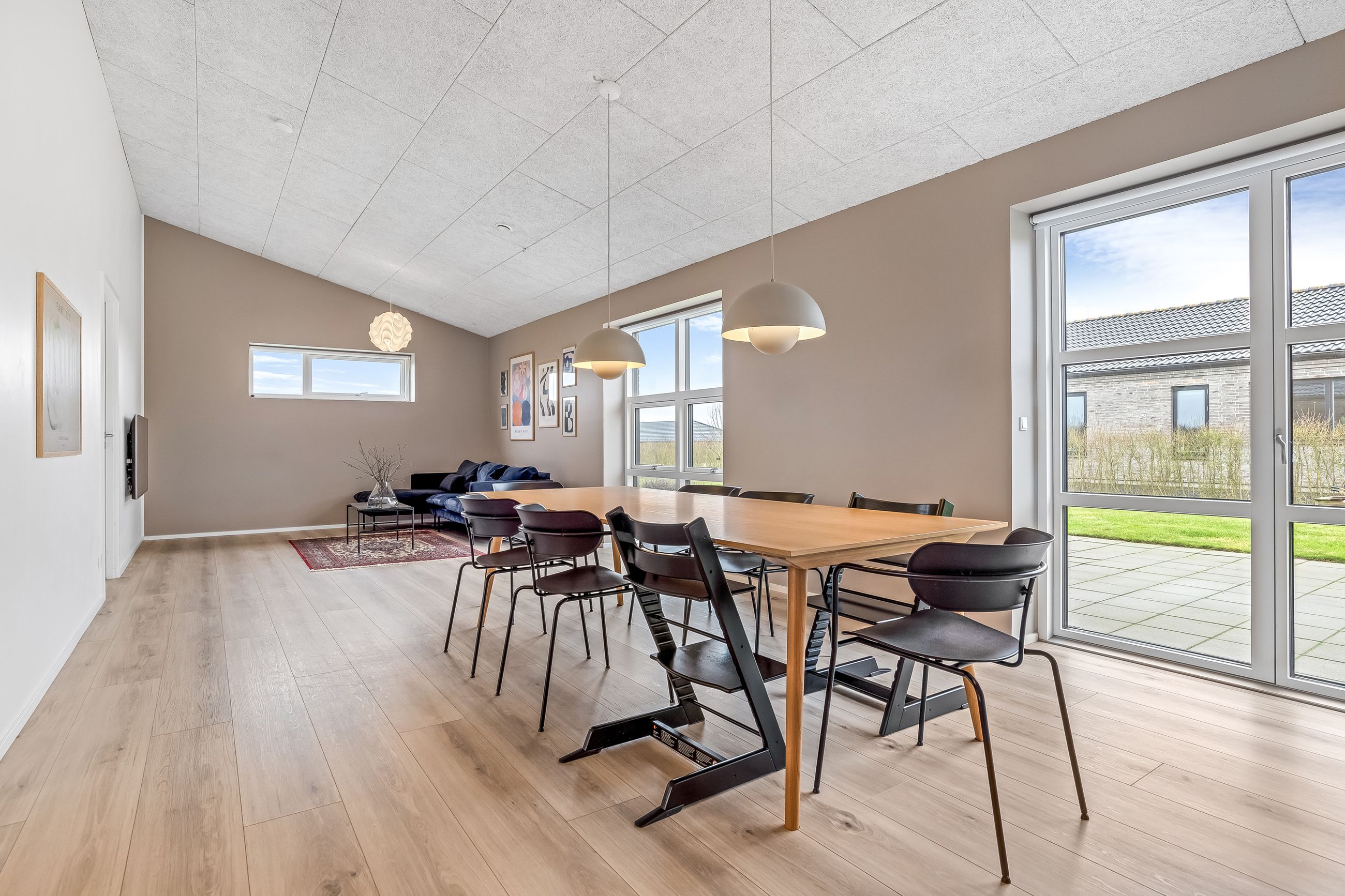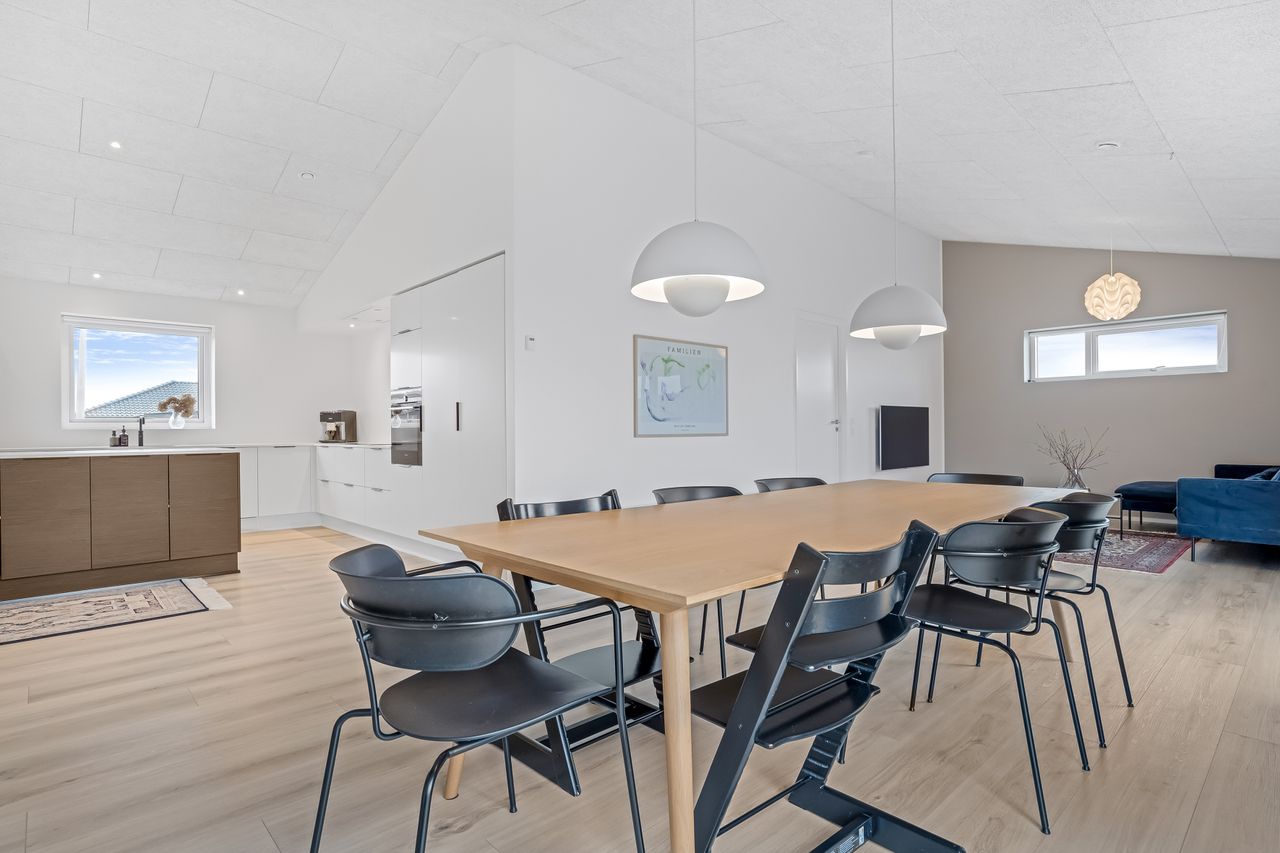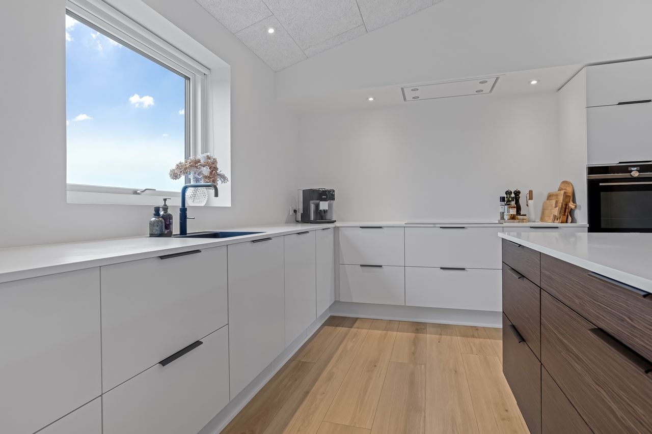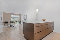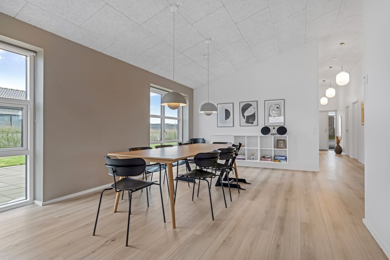 Boligens hjerte er placeret i køkken/alrummet, som udfolder sig i et godt lysindfald og loft til kip. Køkkenet, som er fra HTH, er bl.a. indrettet med stor ø, som fungerer som den naturlige opdeling mellem køkken og alrum. Alrummet fortsætter i direkte forlængelse til stuen, og der er derfor tale om en rigtig "samtalebolig" med rig mulighed for større selskaber.