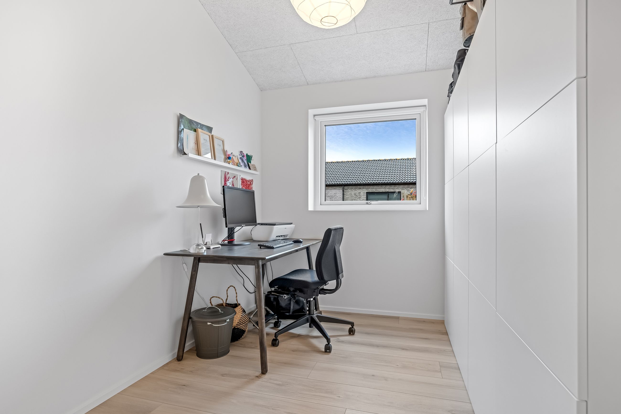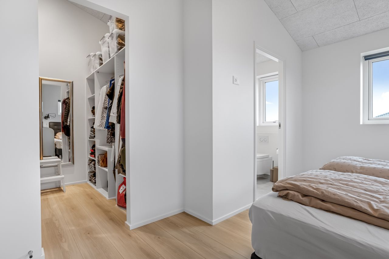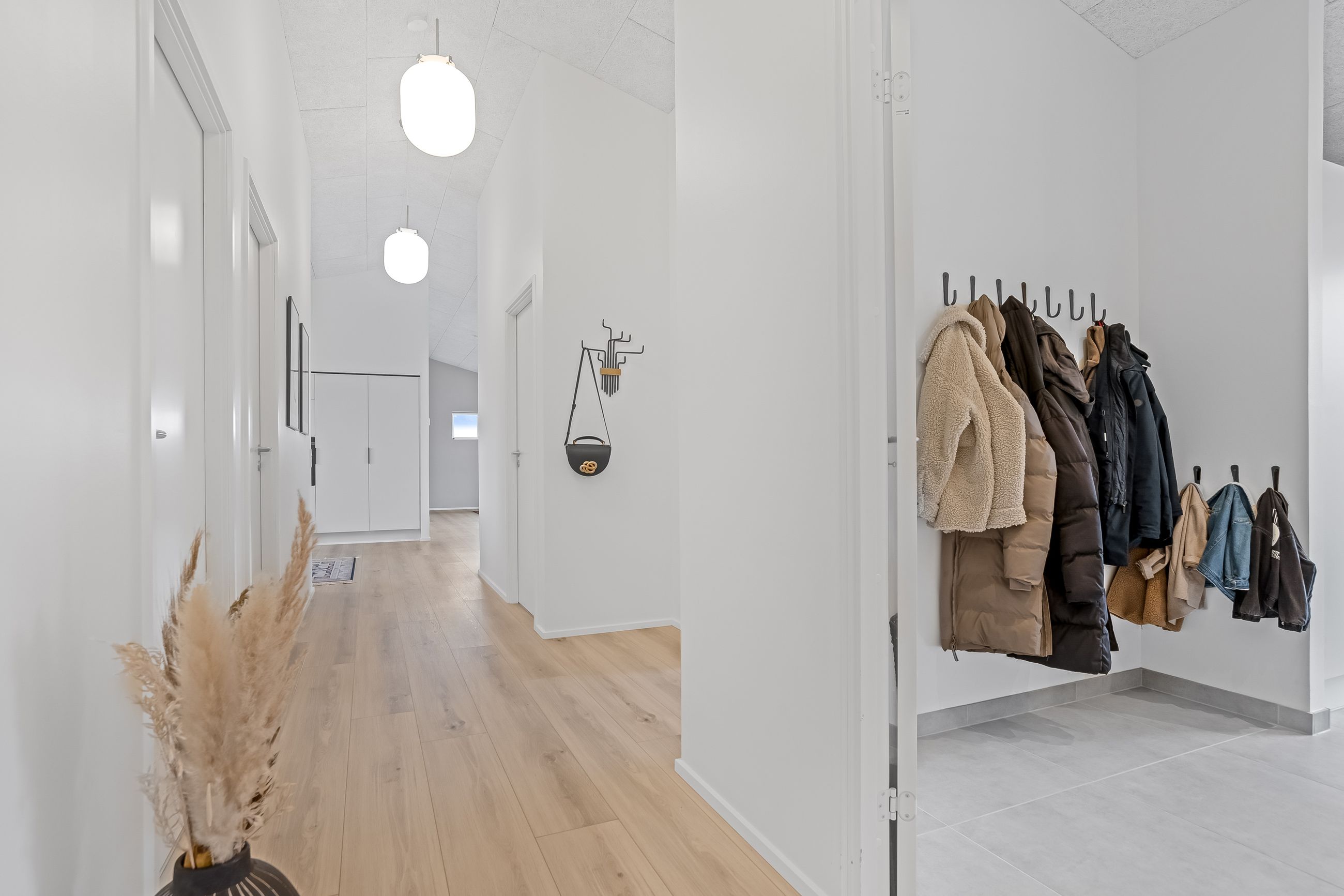 Her er der tale om et meget attraktivt boligemne, som med dets 156 m2 kan danne rammerne for familier i mange størrelser. Boligen indeholder således 4 gode værelser + samt en dejlig, integreret stue i forlængelse af køkken/alrummet. Husets forældreafdeling er placeret for enden af huset og har sit eget walk in og badeværelse.