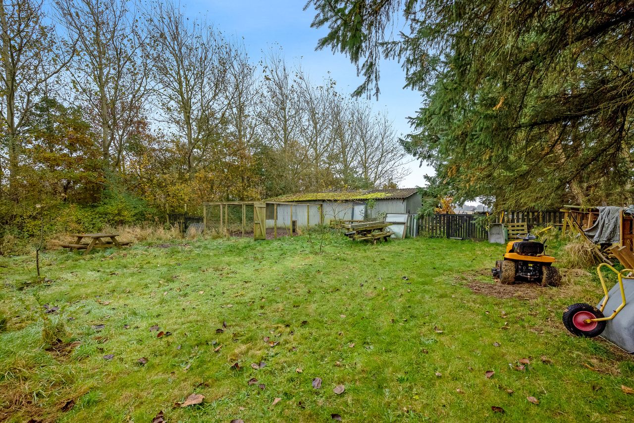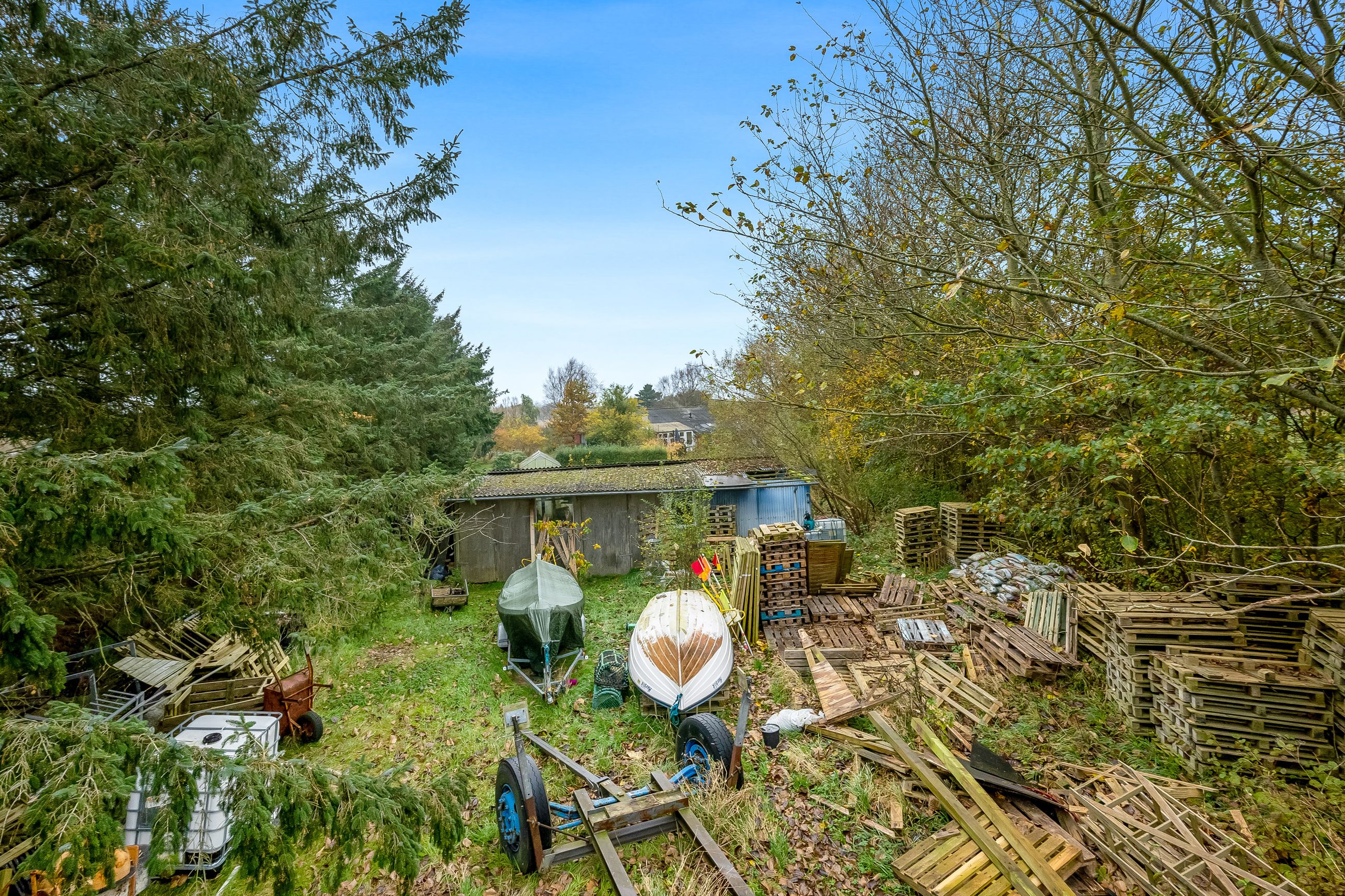 Netop grunden er på en hyggelig facon omkranset af træer og munder i den sydlige spids ud i en markvej, hvortil ejendommen på praktisk vis kan tilkøres fra den anden vej.