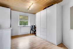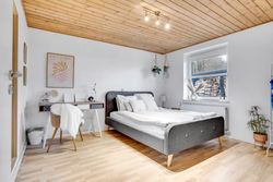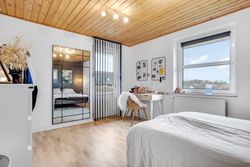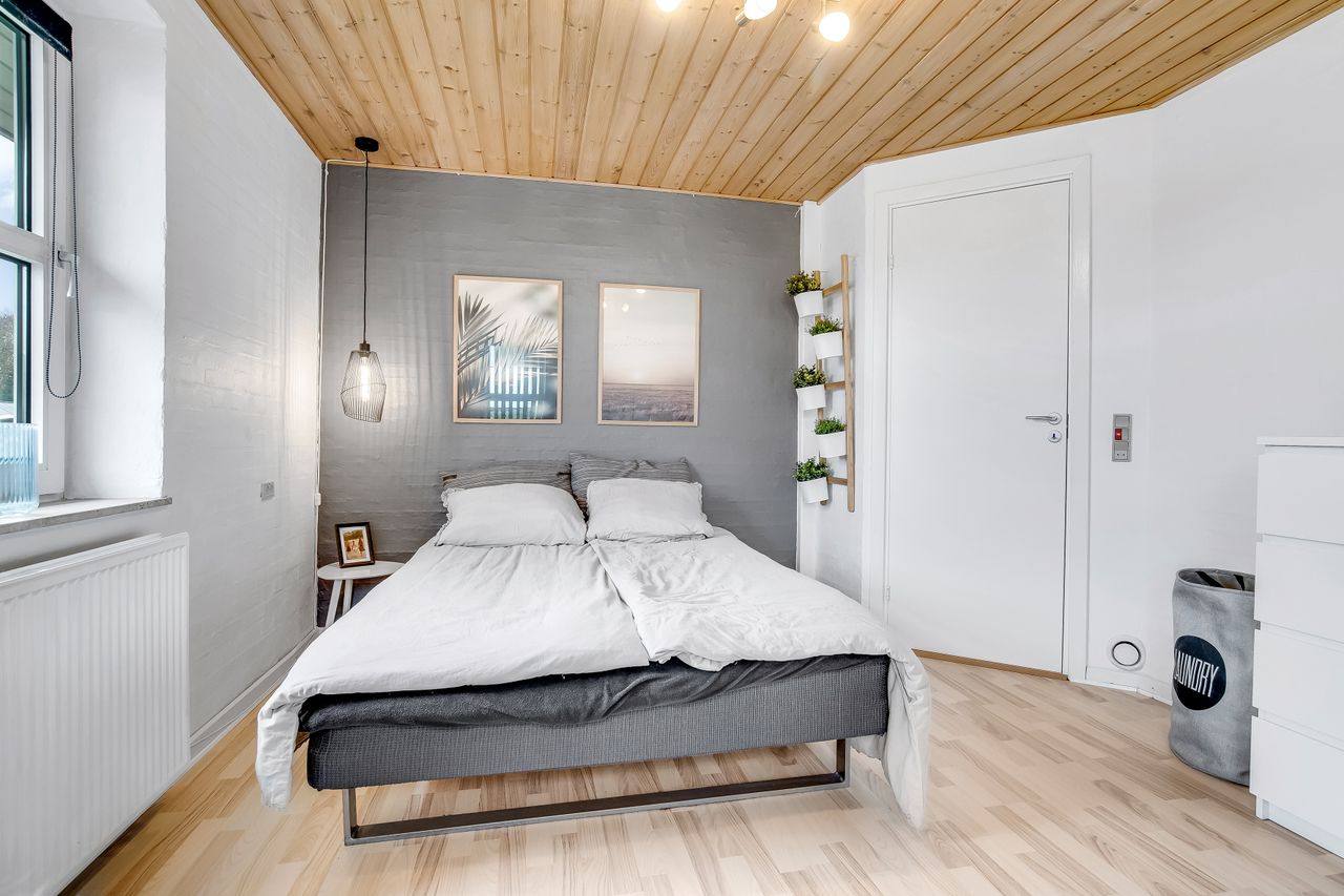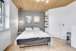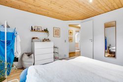 I modsatte ende ligger en voksenafdeling, der består af et soveværelse med faste skabe og et badeværelse.