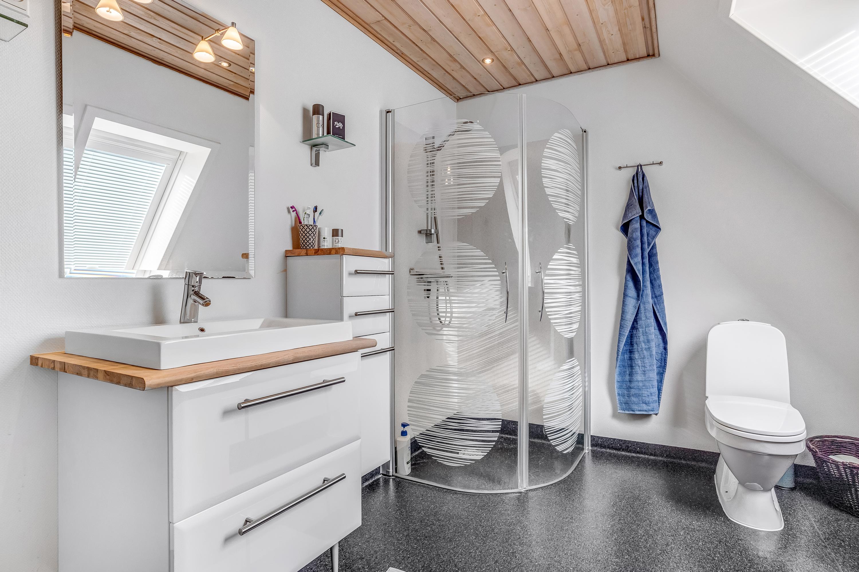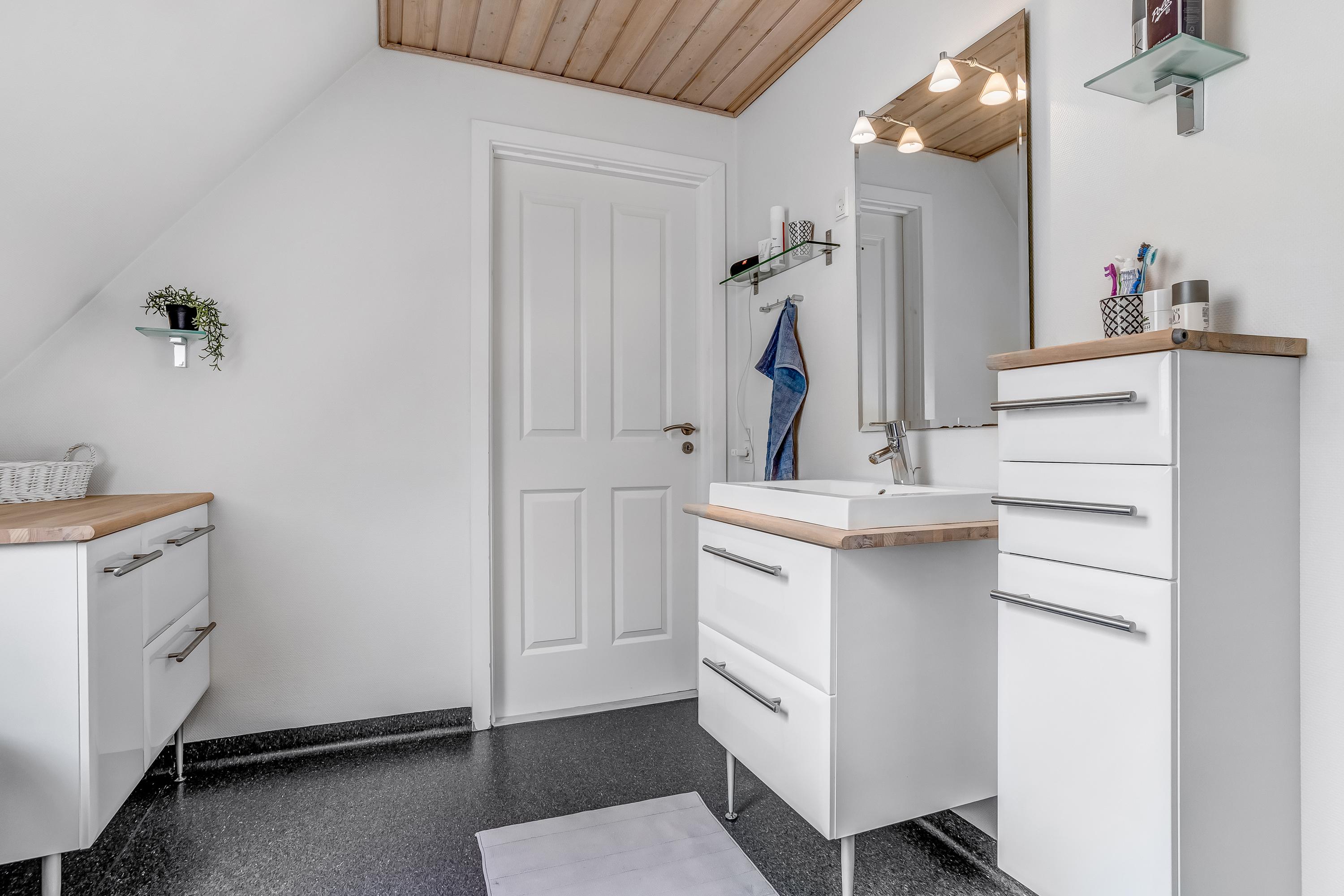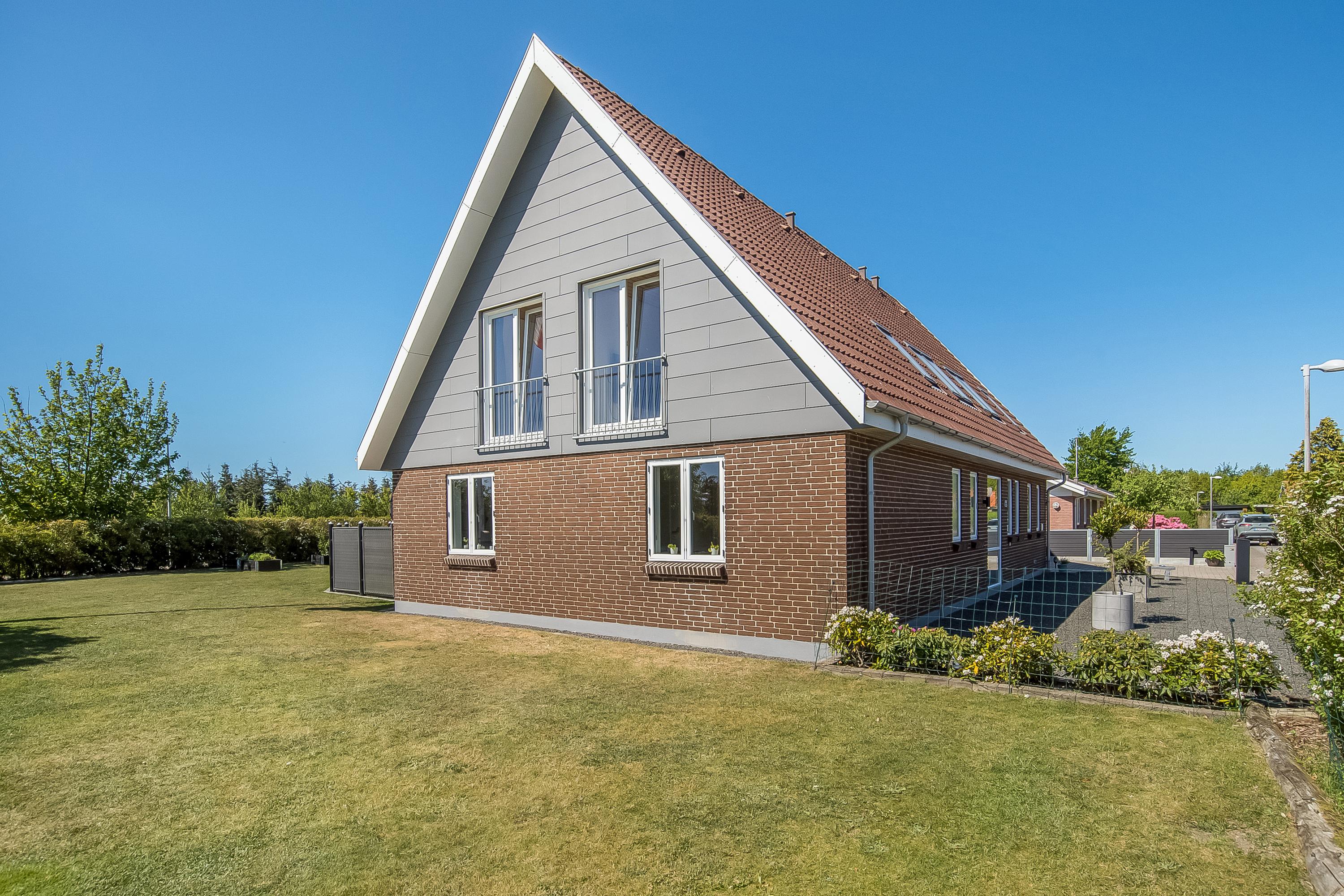 Villaen er opført i solide materialer og præsenterer sig tidløst med en funktionel indretning i to plan. De 206 boligkvadratmeter er fordelt på to etager, hvor stueplan byder på en entré/bryggers med god
