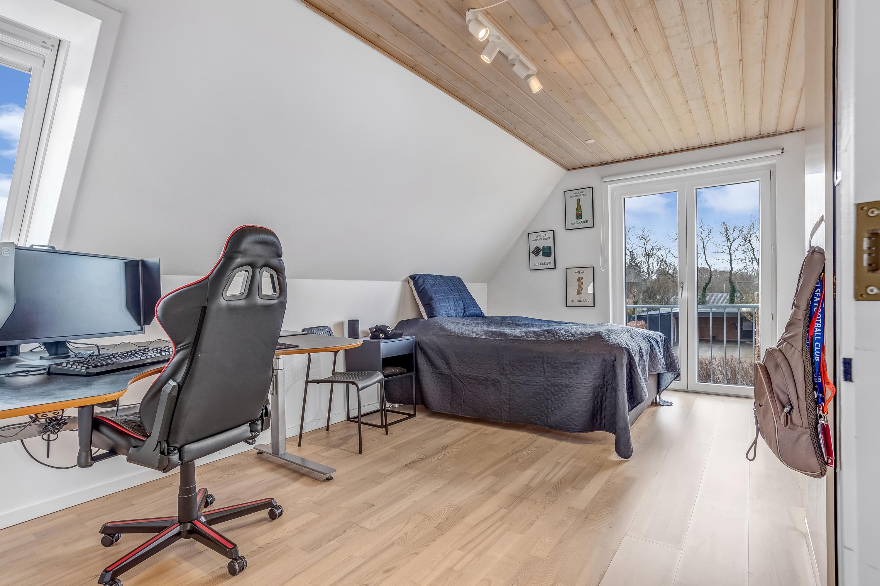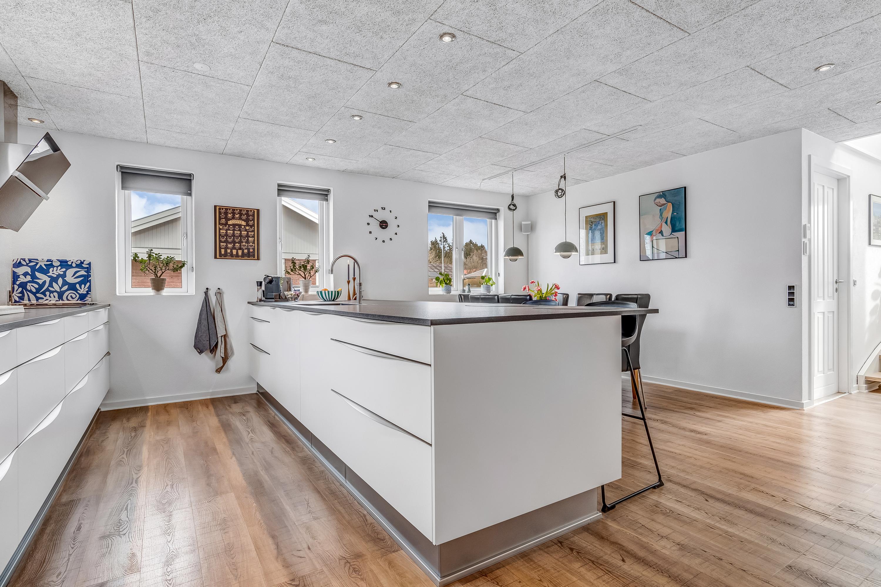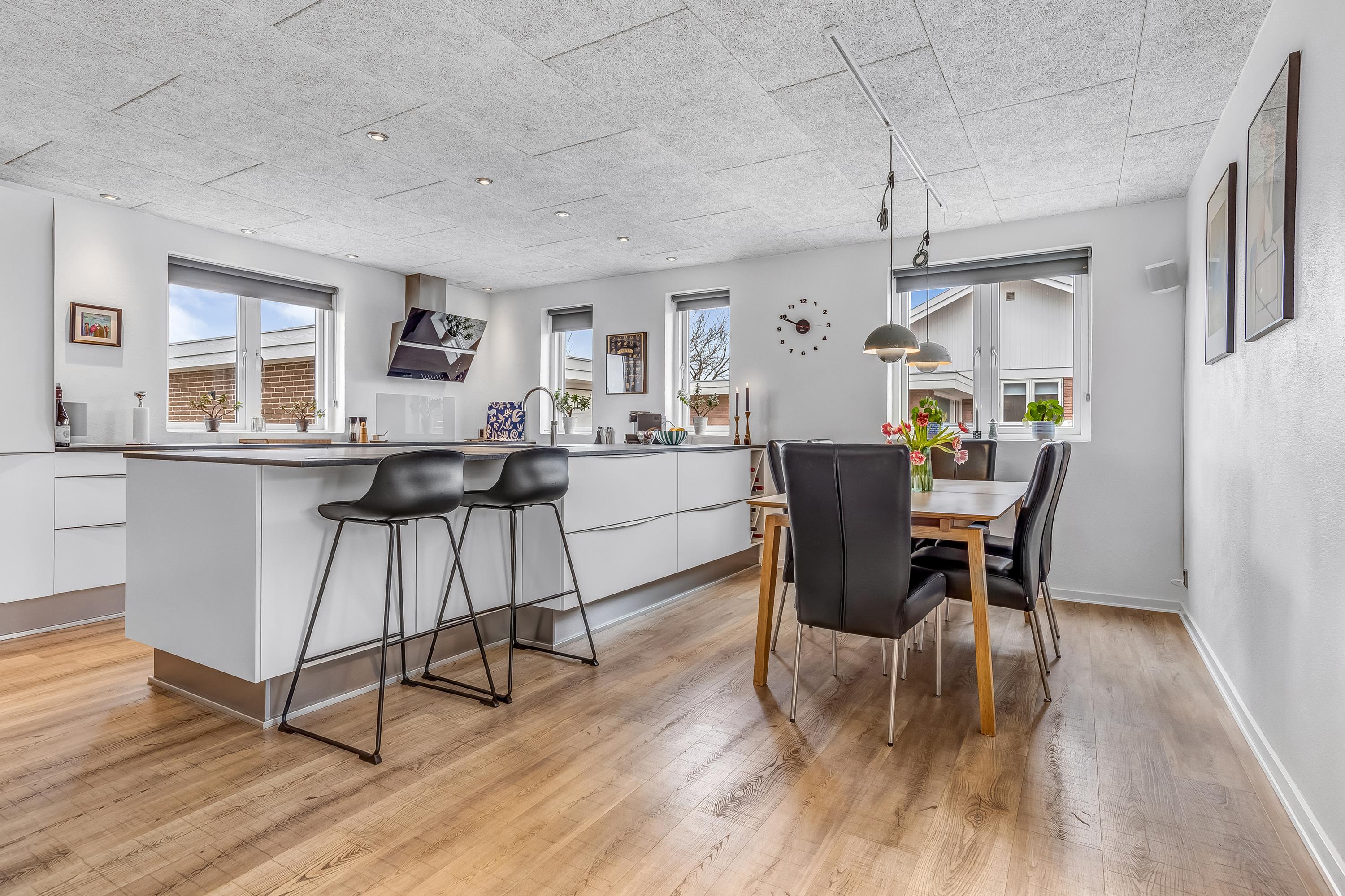 Villaen er opført i solide materialer og præsenterer sig tidløst med en funktionel indretning i to plan. De 206 boligkvadratmeter er fordelt på to etager, hvor stueplan byder på en entré/bryggers med god