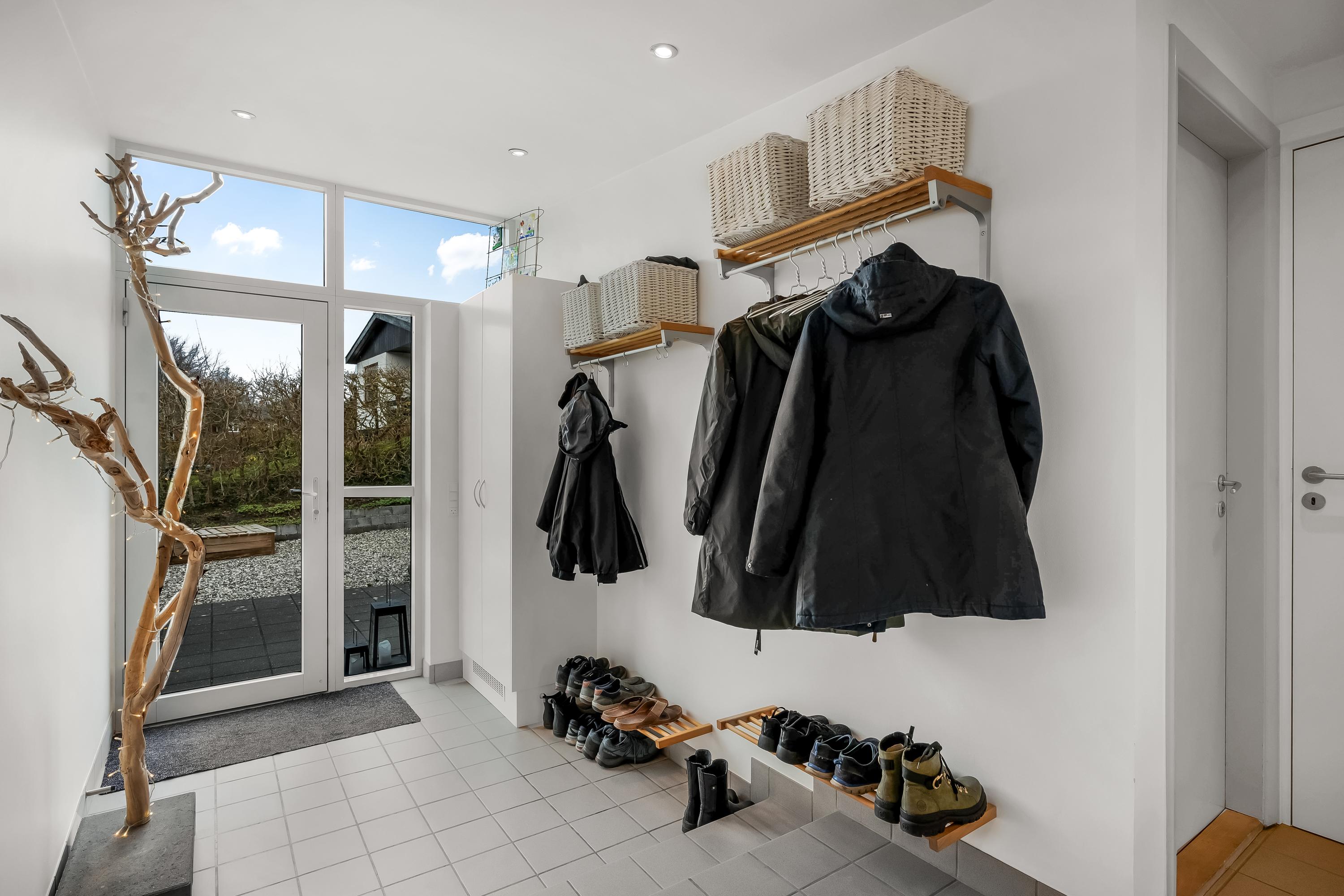 På en let kuperet grund i Hornshøj ligger denne velholdte og flot opdaterede rødstensvilla. Huset udmærker sig med bl.a. 2 totalrenoverede badeværelser og et køkken, som også udvides i år 2003 med en skøn tilbygning, hvor store ovenlysvinduer giver et fantastisk lysindfald. Desuden modtages I