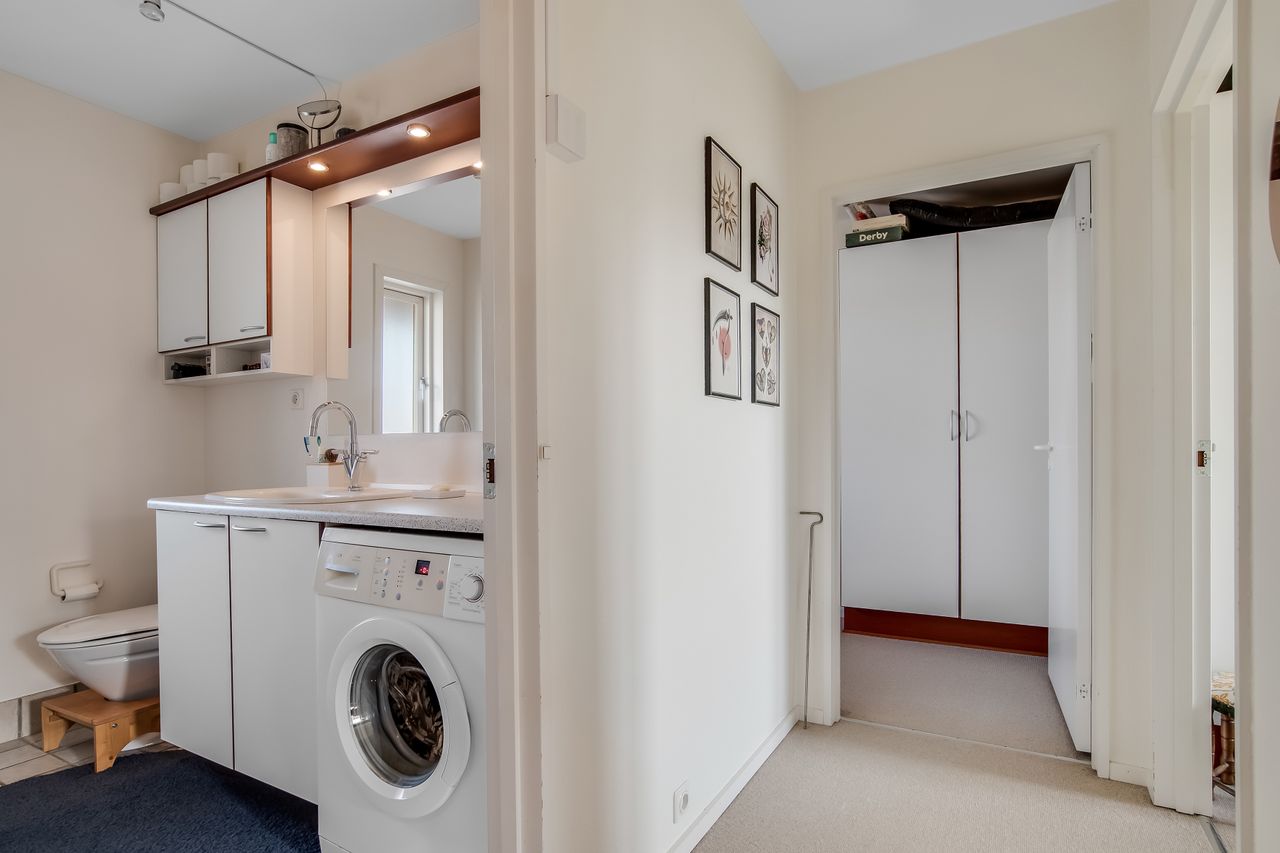 Nydelig andelsbolig beliggende i ejendom opført i år 2000 i gule mursten med skifereternittag og hvide vinduer. I alt 88 m2 veludnyttet bolig i 2 plan, der fremstår lys og velholdt med hvide lofter, lyse vægge og laminatplankegulve. Boligen udmærker sig bl.a. med et A2010 energimærke, Genvex-system i hele boligen, samt gulvvarme i hele stueplanet. Til ejendommen er der tilhørende nyere anlagte terrasser beliggende omkring huset og et redskabsrum på ca. 5 m2. Alt i alt en rigtig flot og veludnyttet andelsbolig.