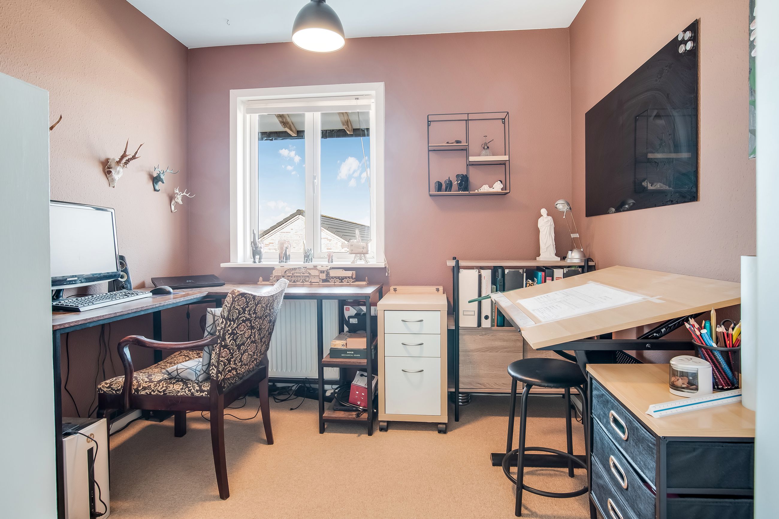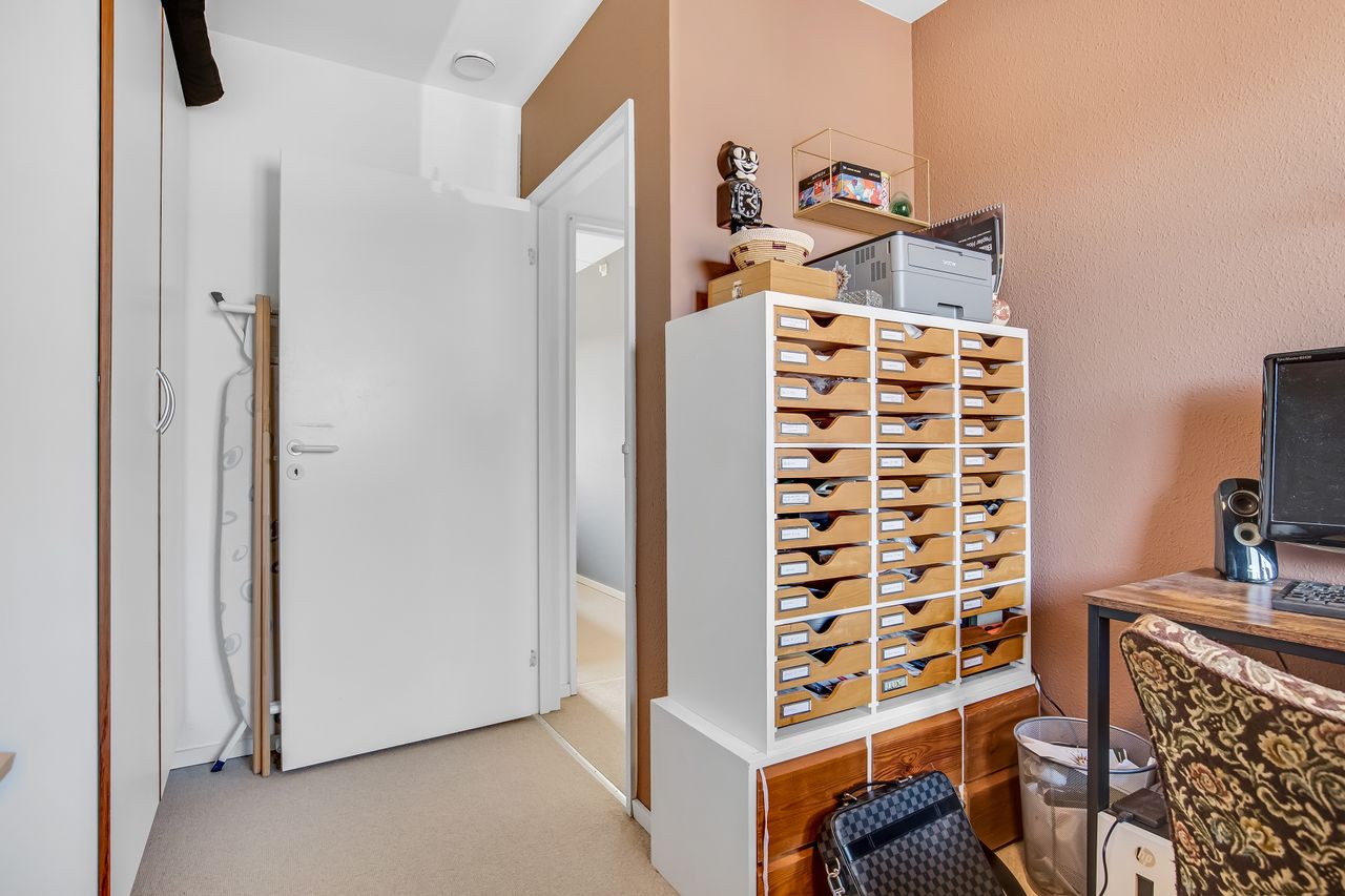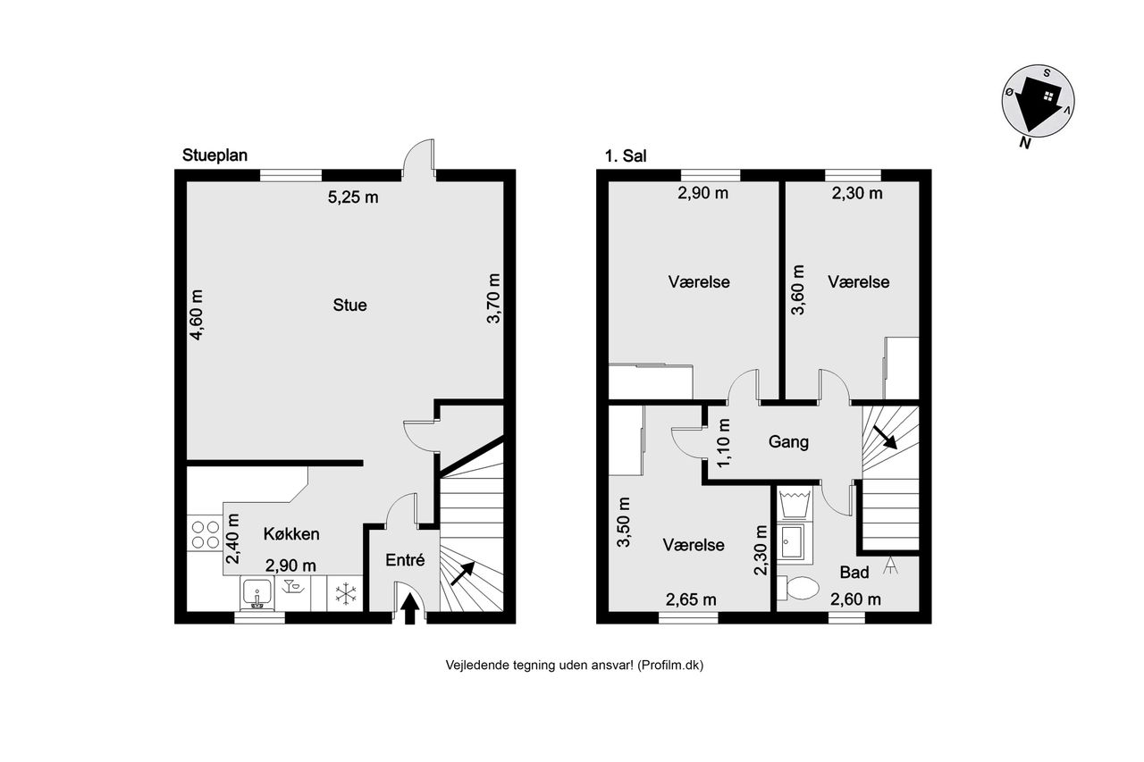 Boligen er indrettet med entre med pænt klinkegulv og trappe til 1. sal, tidløst køkken med lyst inventar, opholds-/spisestue med laminat plankegulv og udgang til ugeneret flisebelagt sydvendt terrasse. I sammenhæng med stuen er der desuden et mindre disponibelt rum til diverse opbevaring.- 1. sal: Fordelingsgang, badeværelse med bruseniche, gråt klinkegulv samt pænt lyst inventar og vaskefaciliteter , soveværelse med faste skabe og 2 værelser med faste skabe.