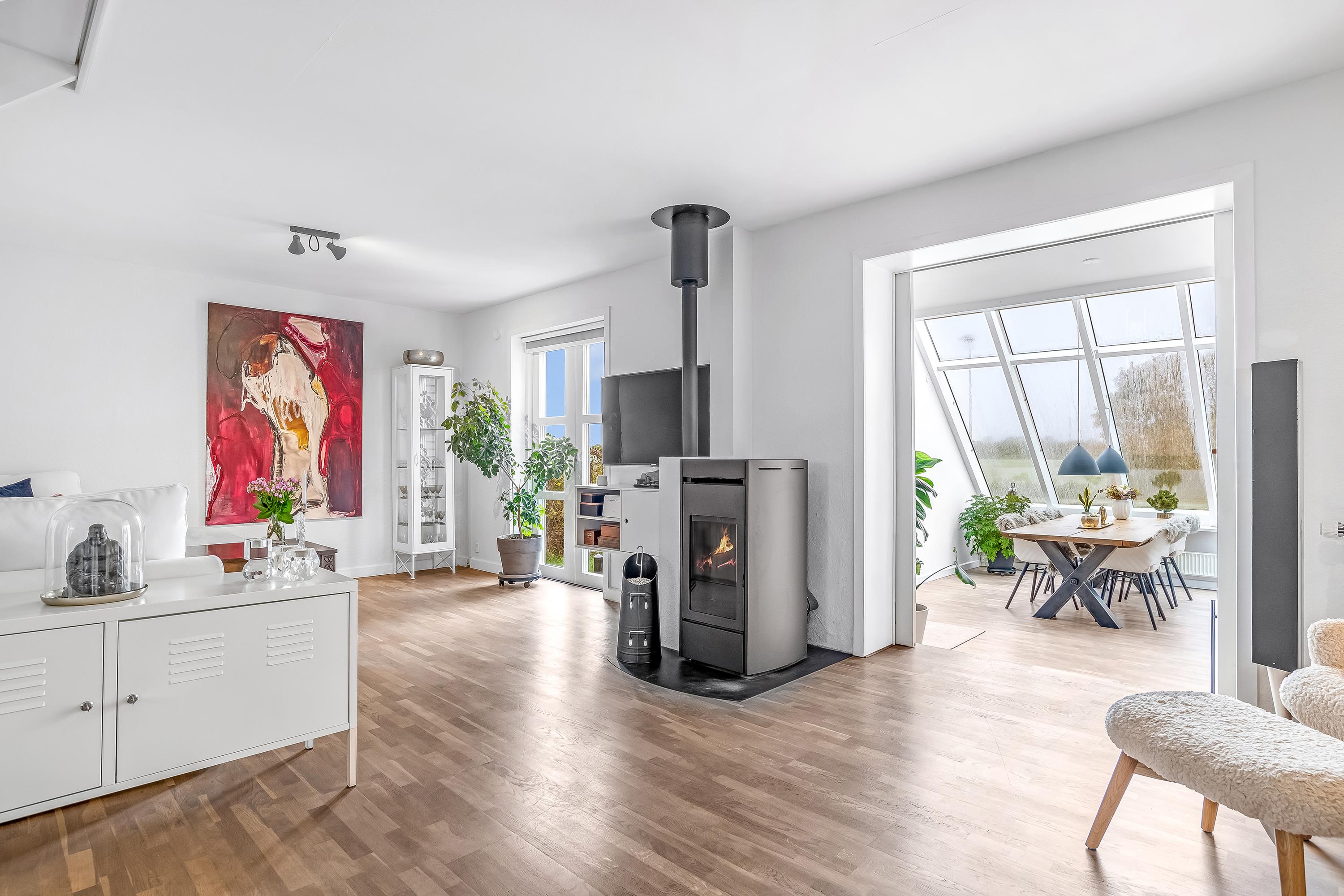 Villa med arkitekttegnet tilbygning, hjemlig atmosfære og landlig idyl