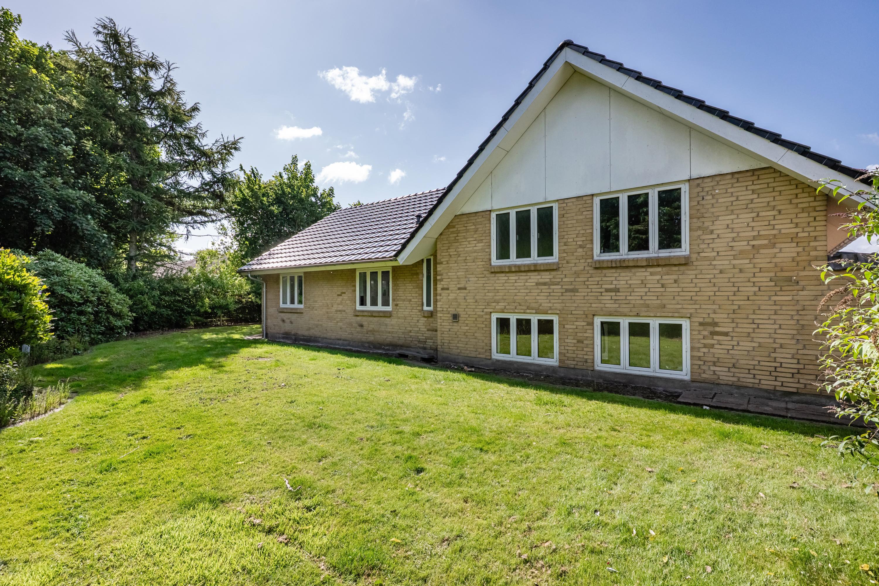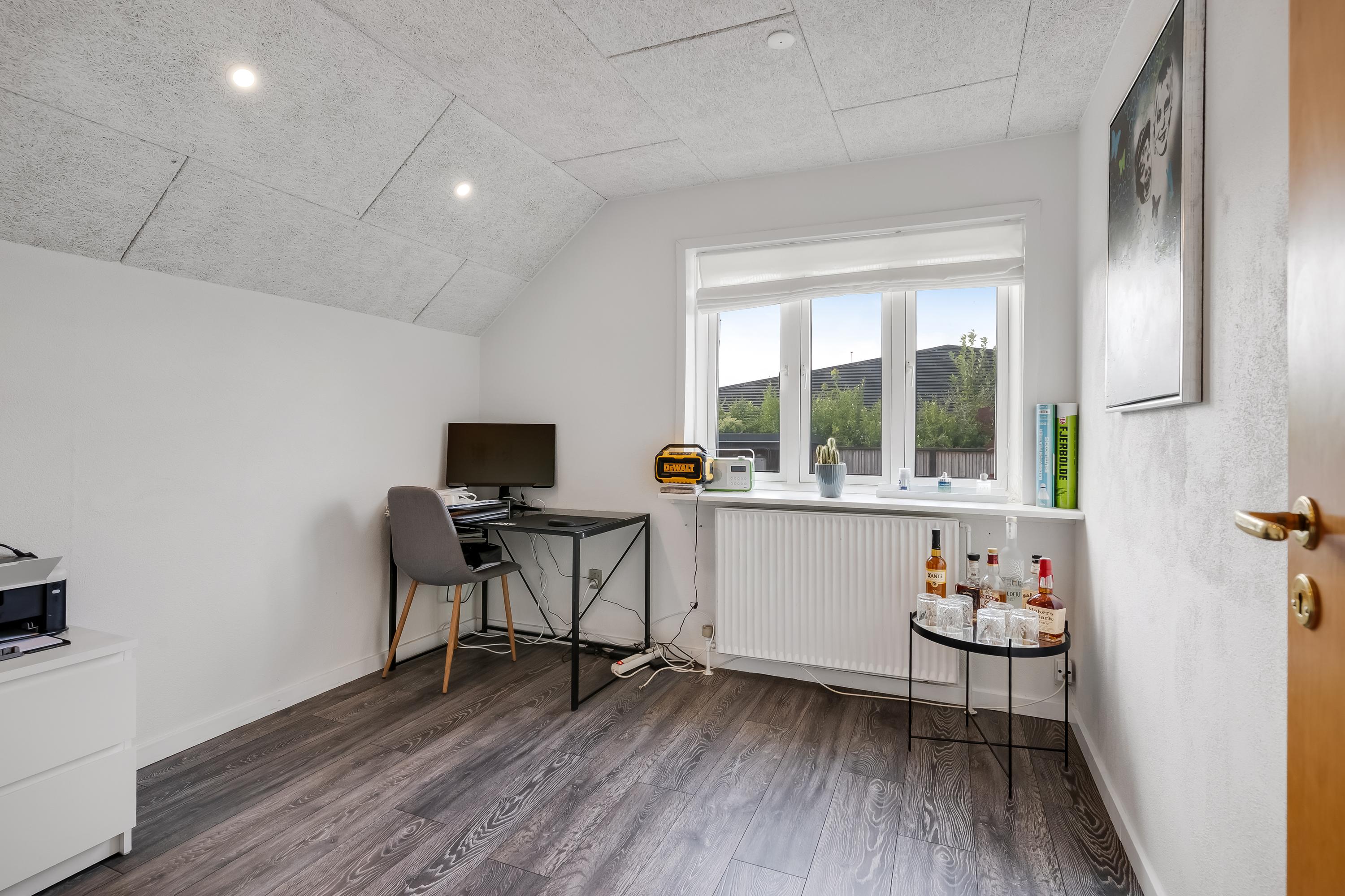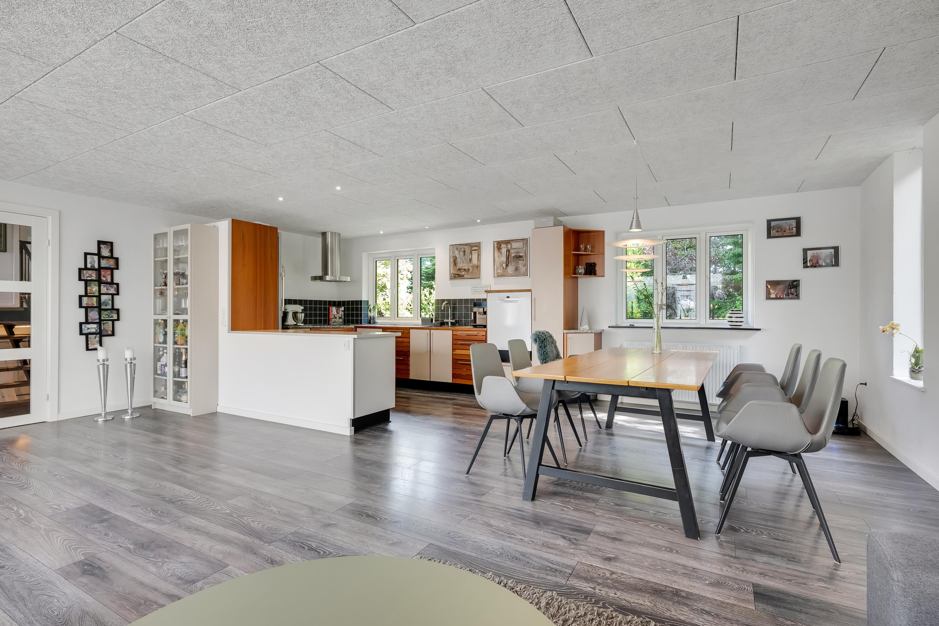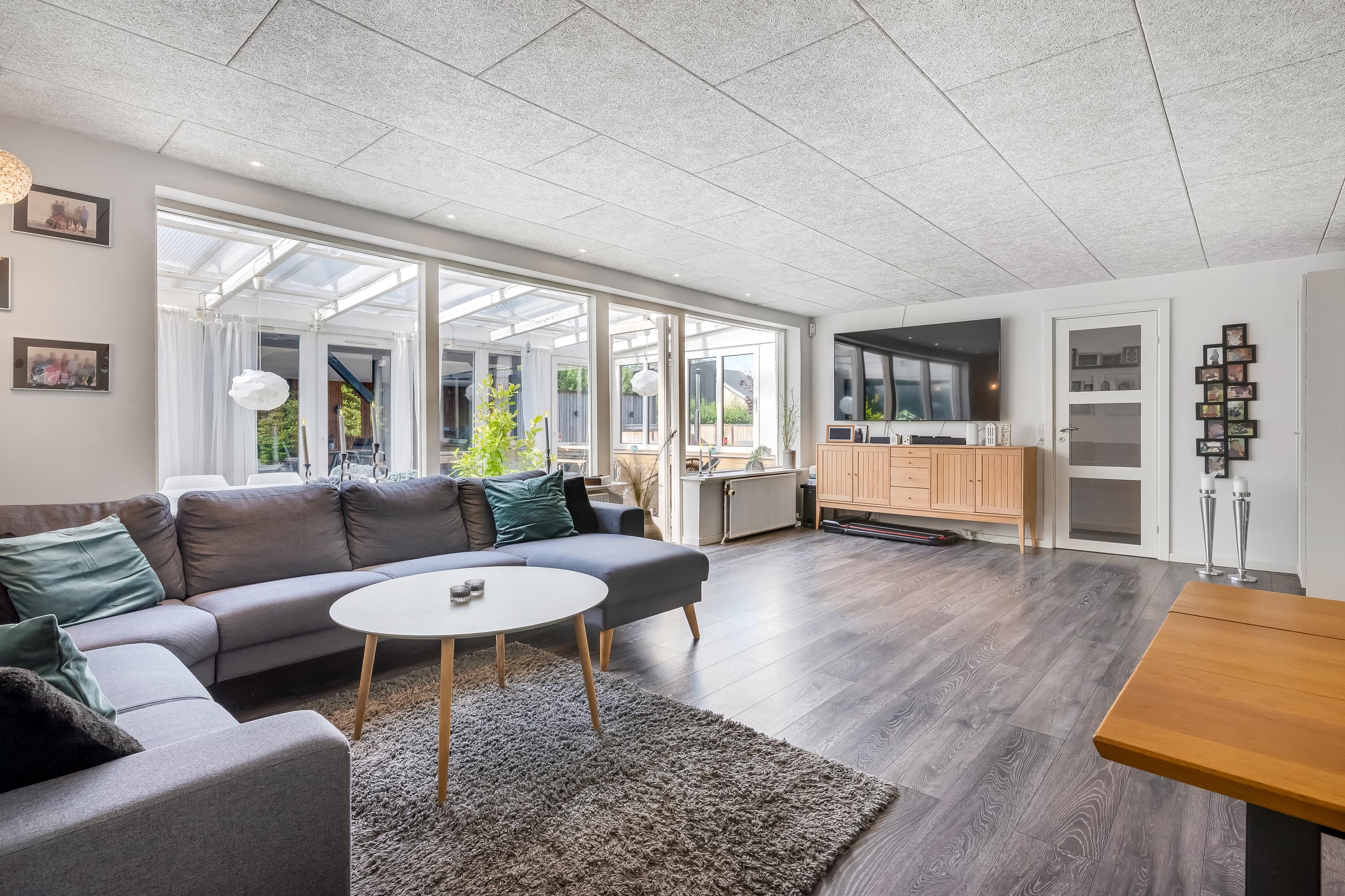 Det er den enorme sydvendte terrasse og den ligeledes voluminøse garagebygning, der skiller denne spændende ejendom i Holstebro ud fra mængden. I kommer til at bo i villaen, der med 125 m2 og hertil en god og anvendelig kælder fint kan huse en børnefamilie. Det ligger altsammen på en lukket stikvej