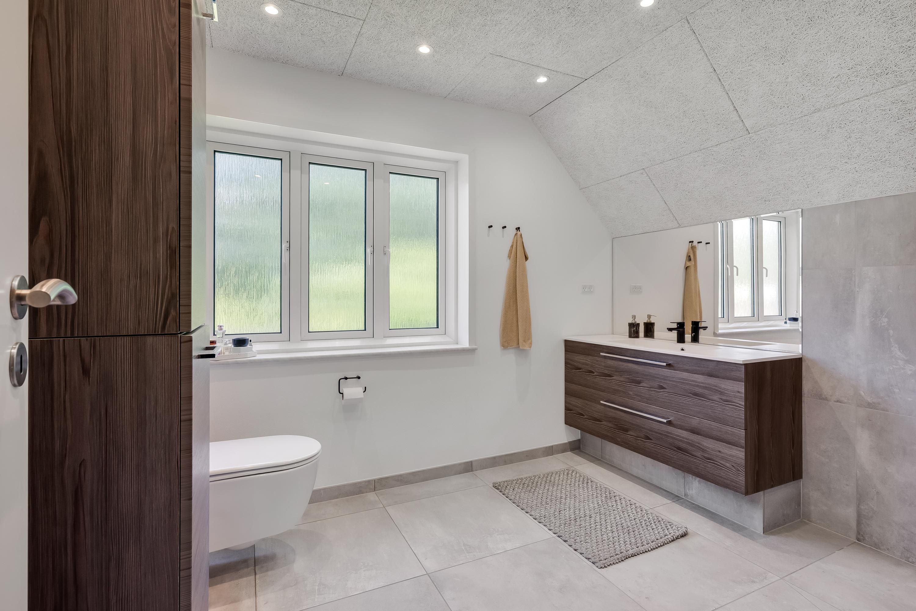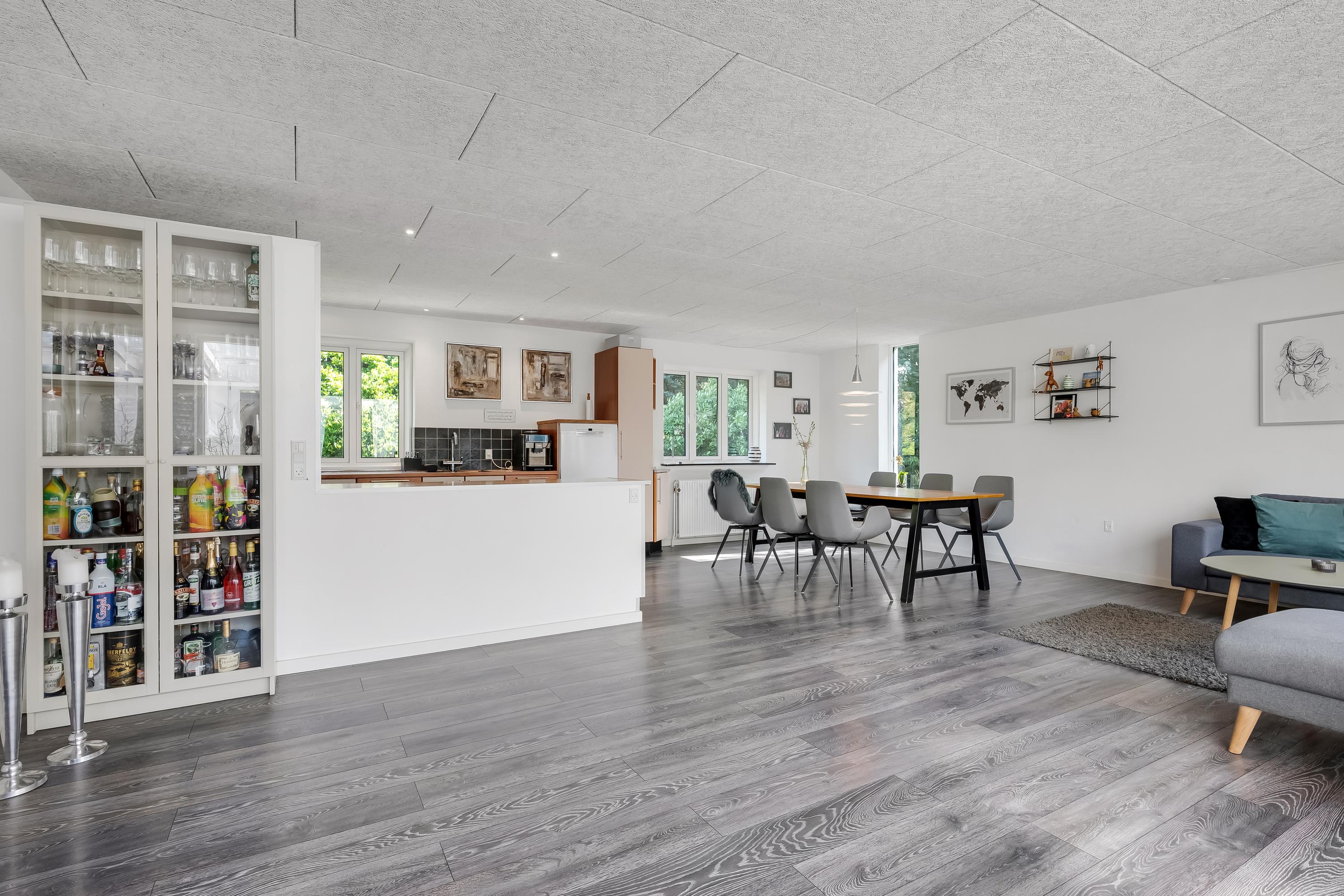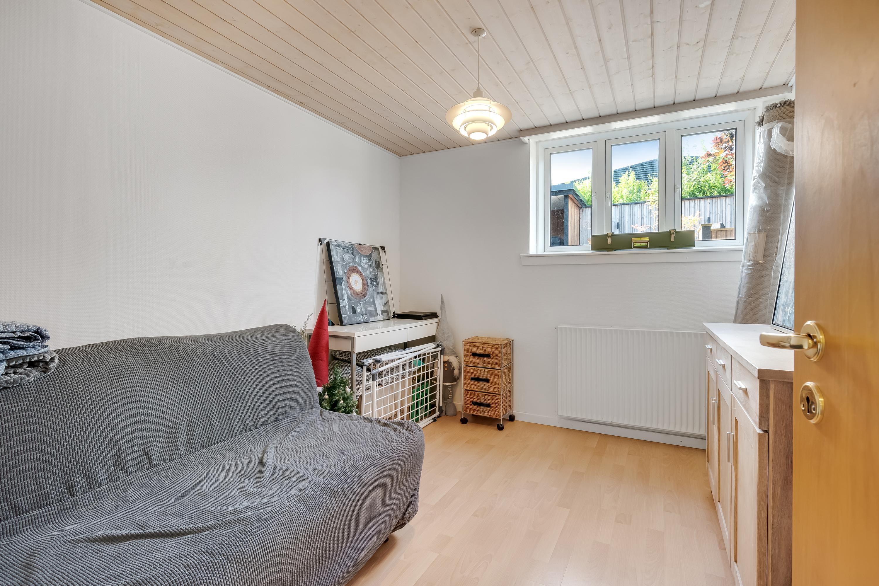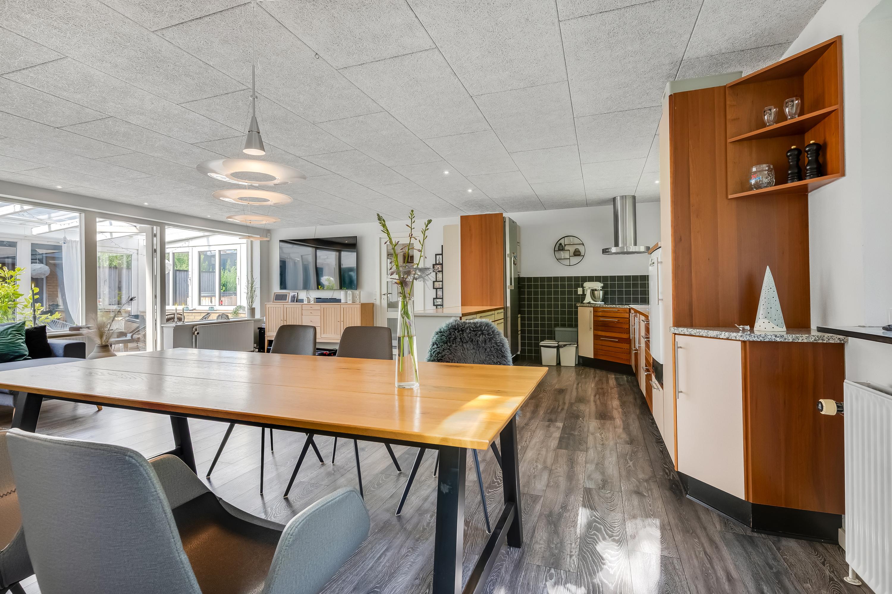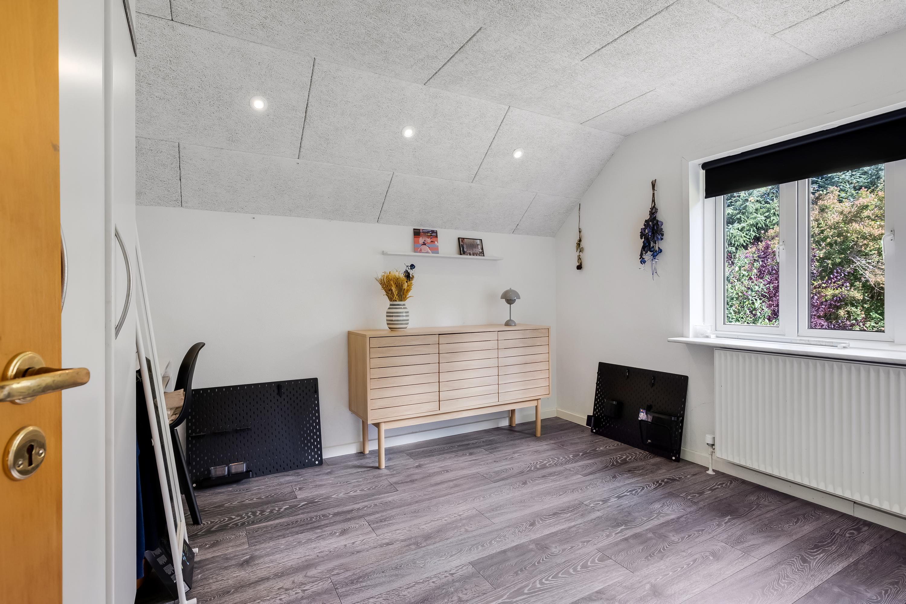 Det er den enorme sydvendte terrasse og den ligeledes voluminøse garagebygning, der skiller denne spændende ejendom i Holstebro ud fra mængden. I kommer til at bo i villaen, der med 125 m2 og hertil en god og anvendelig kælder fint kan huse en børnefamilie. Det ligger altsammen på en lukket stikvej