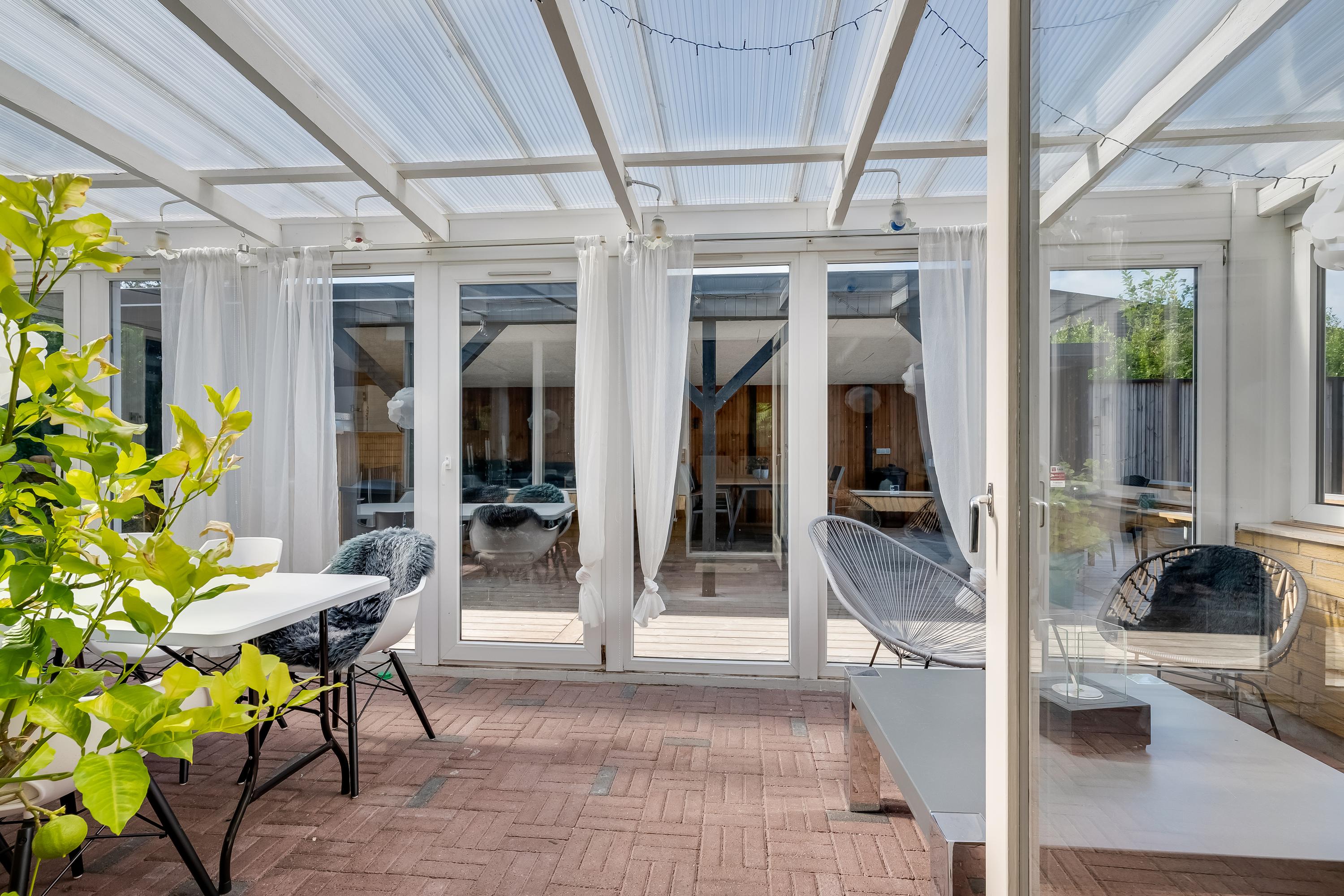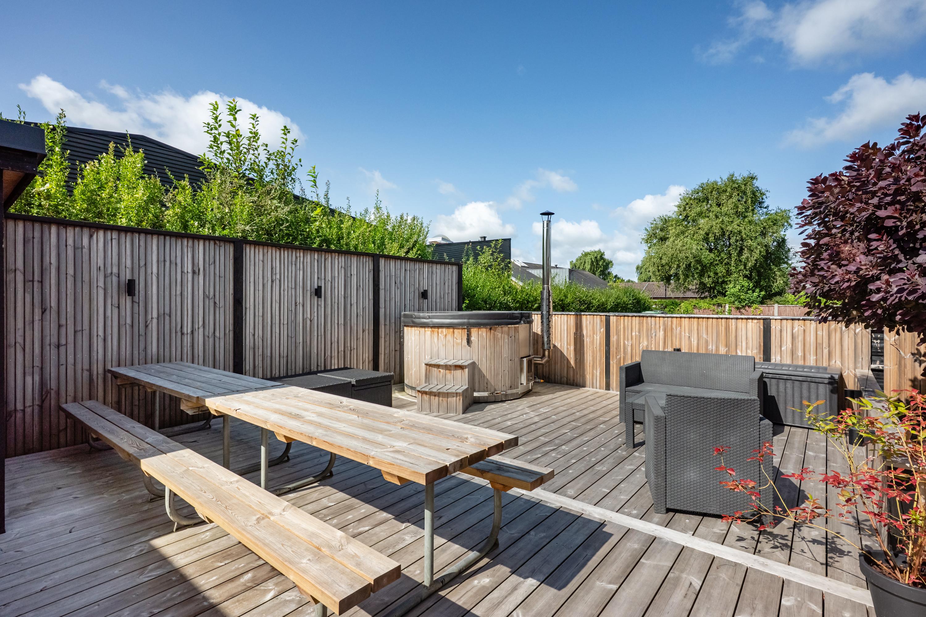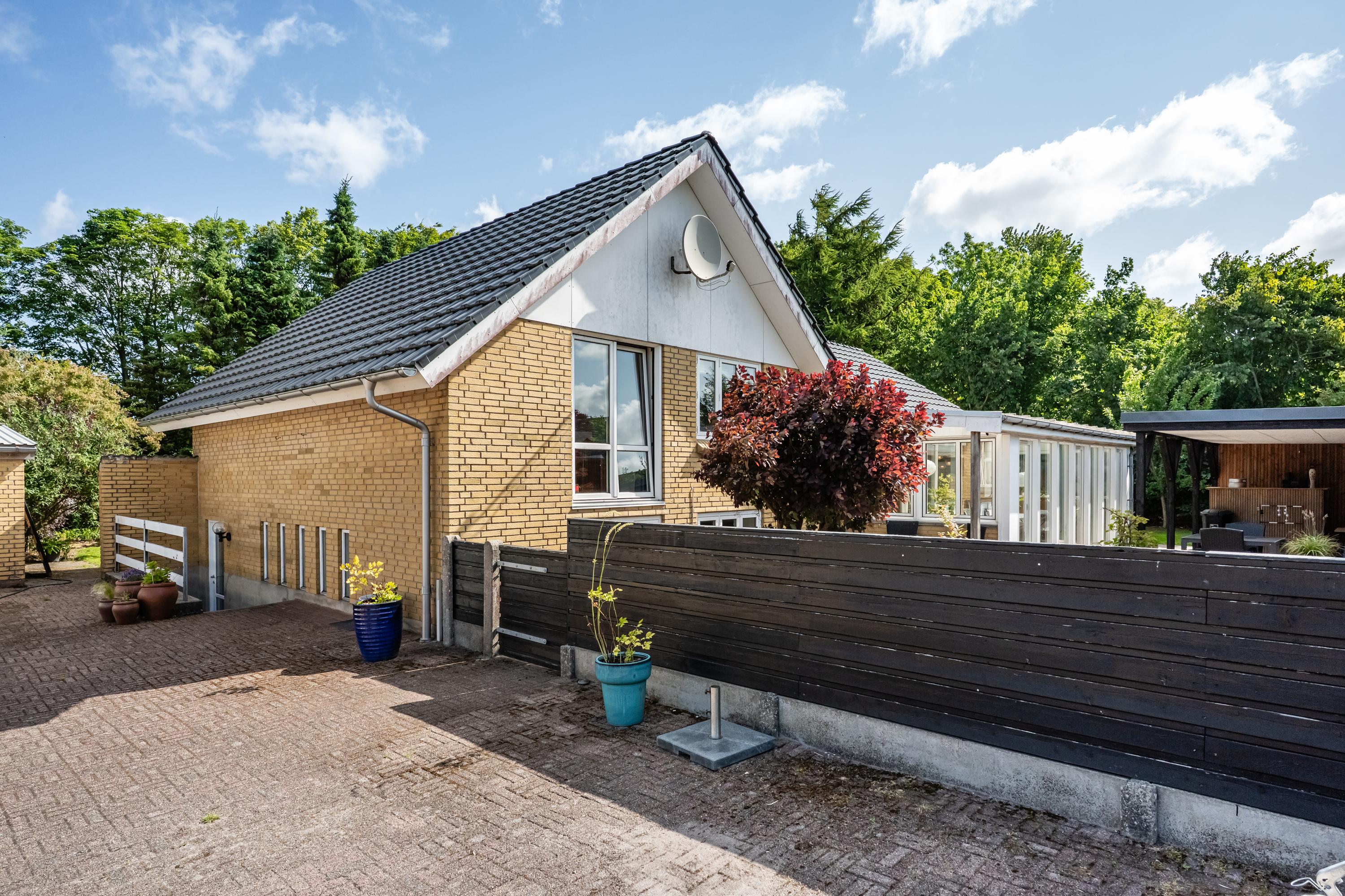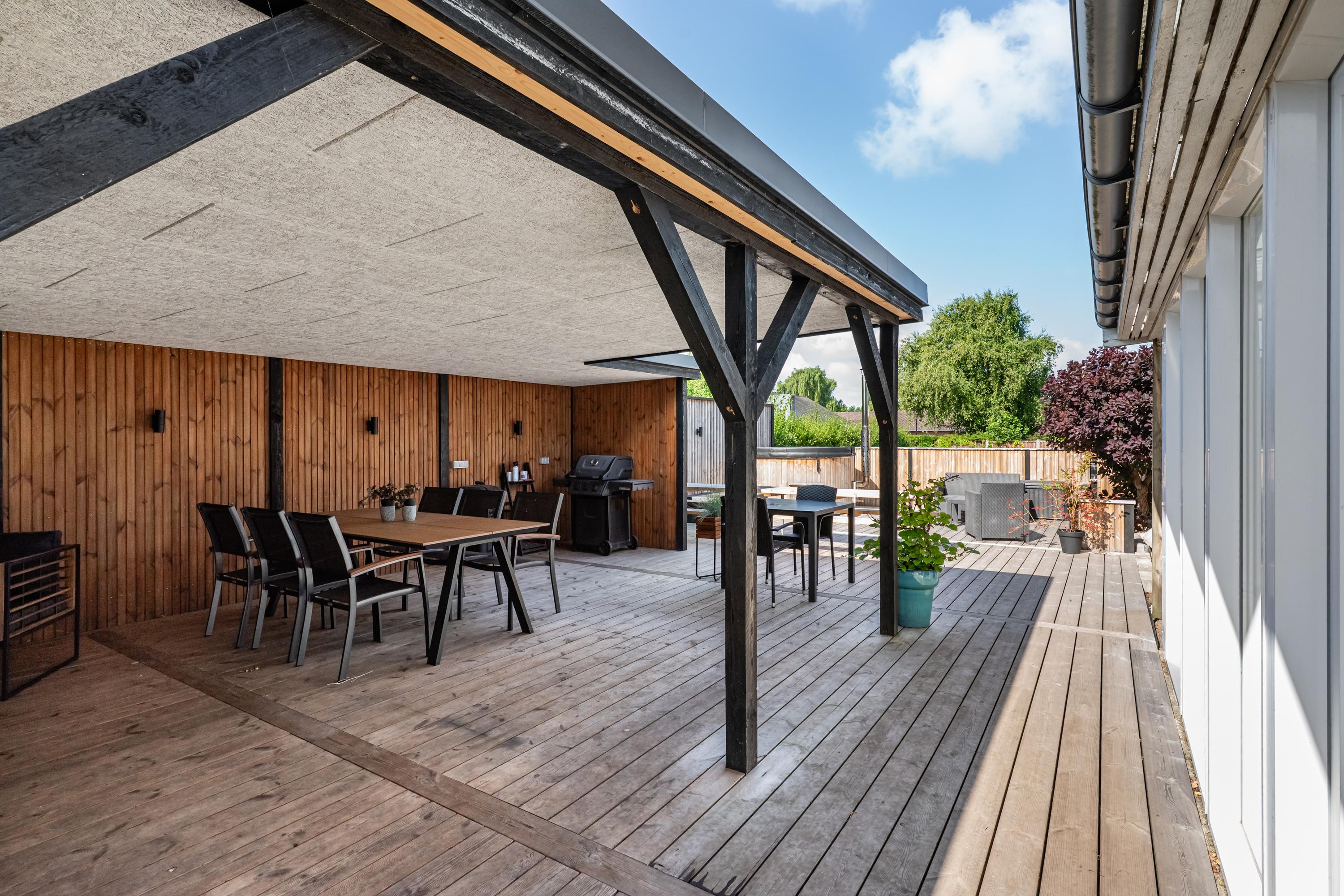Spændnede villa med kæmpe garage-/erhvervsbygning og superlækkert terrassemiljø