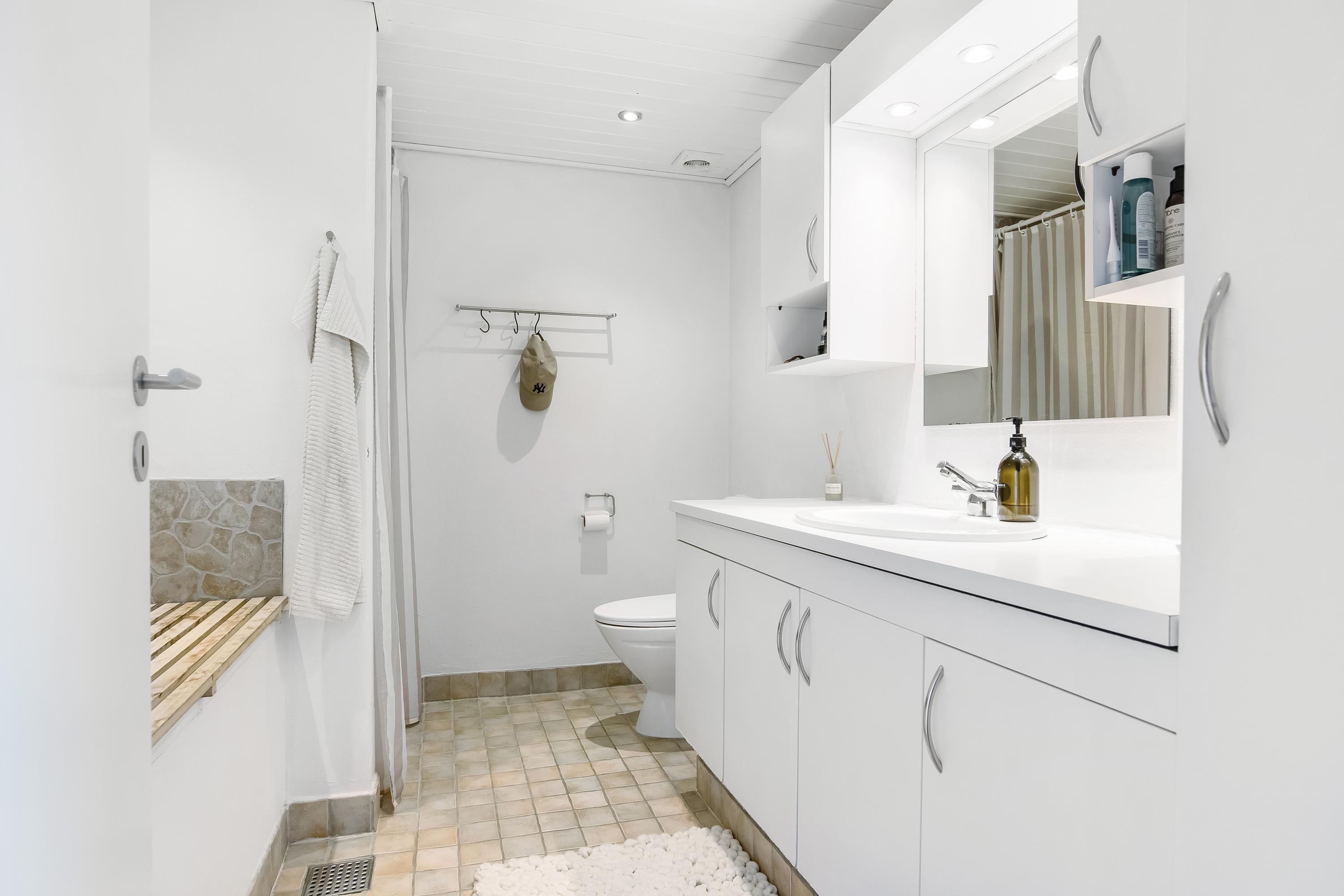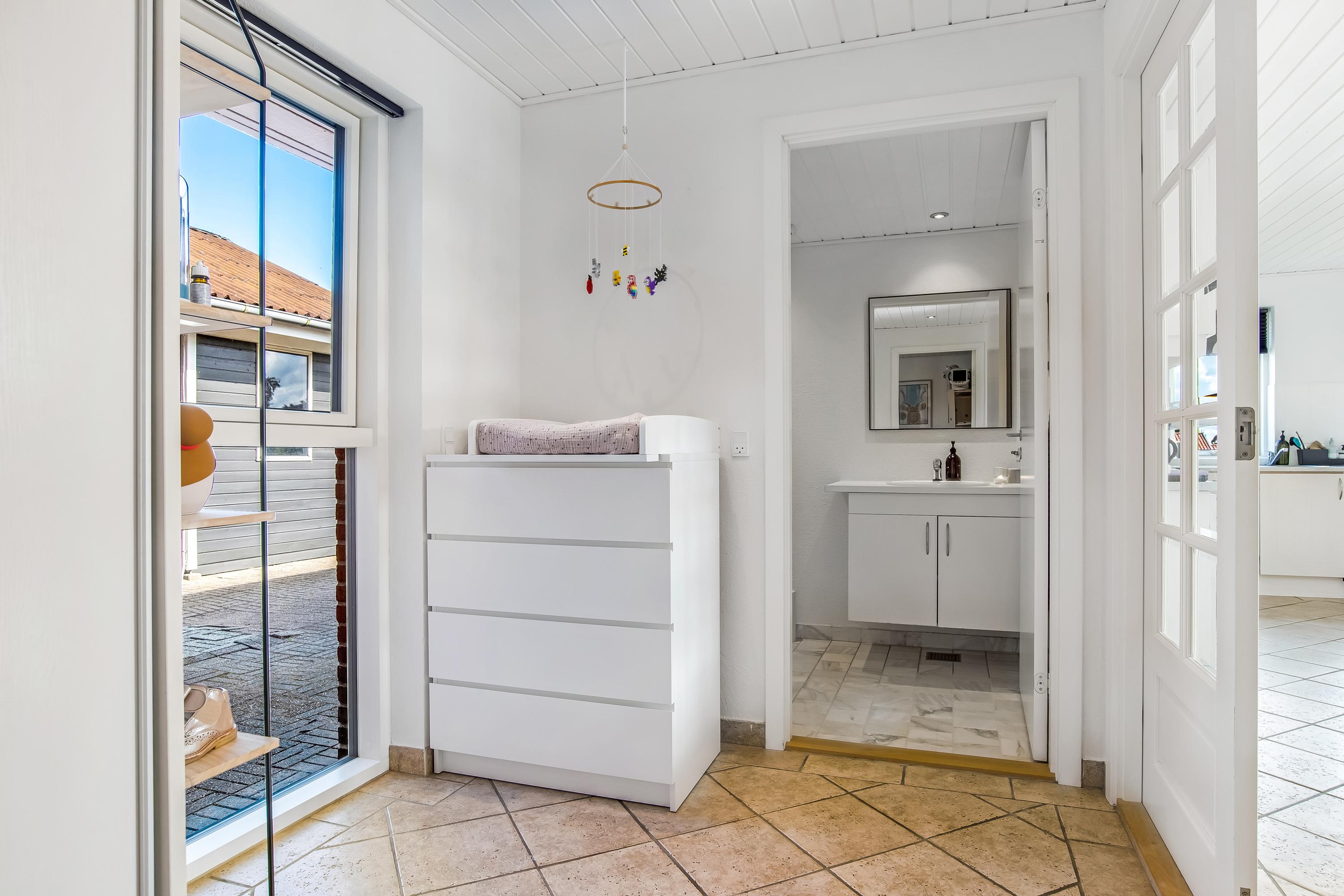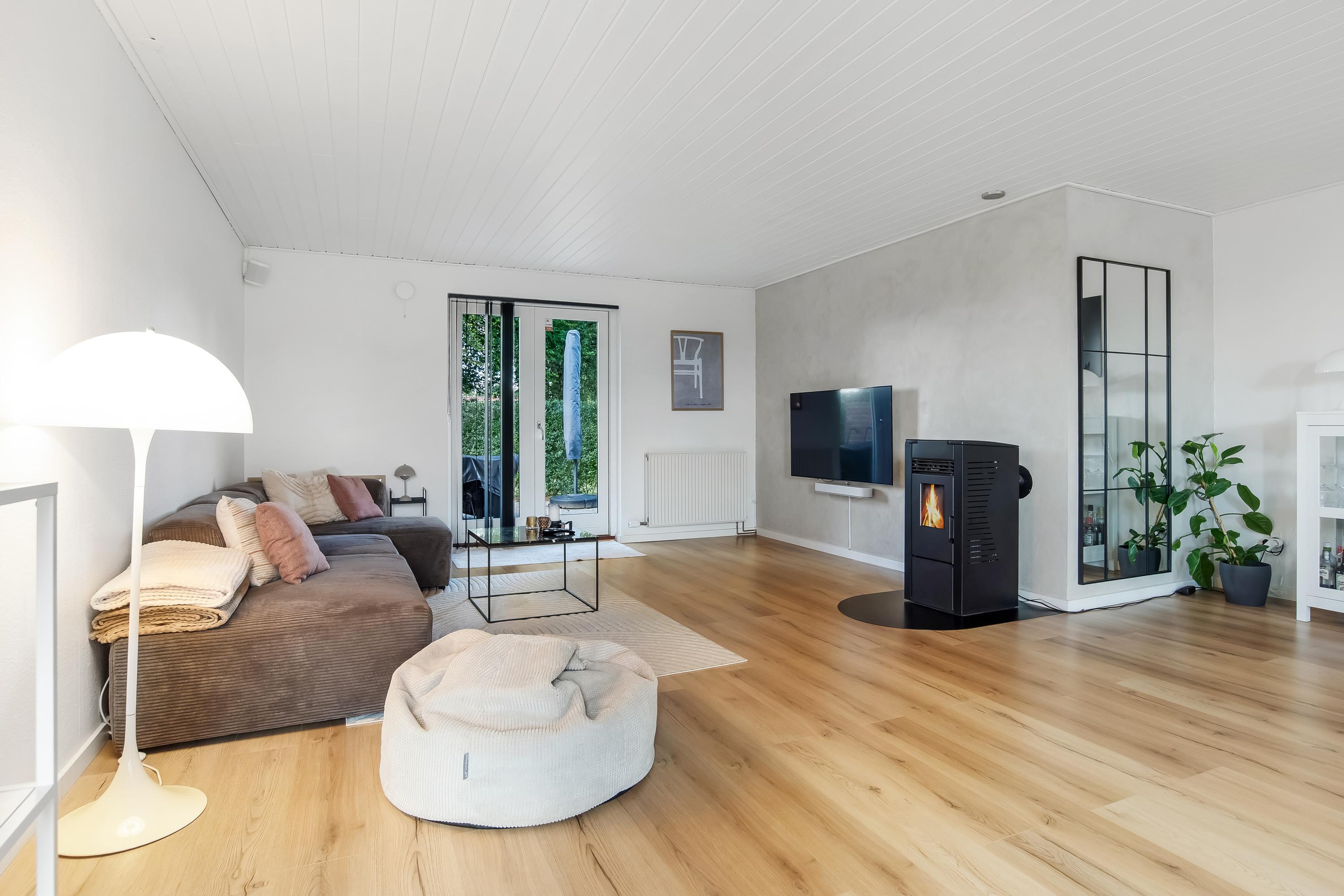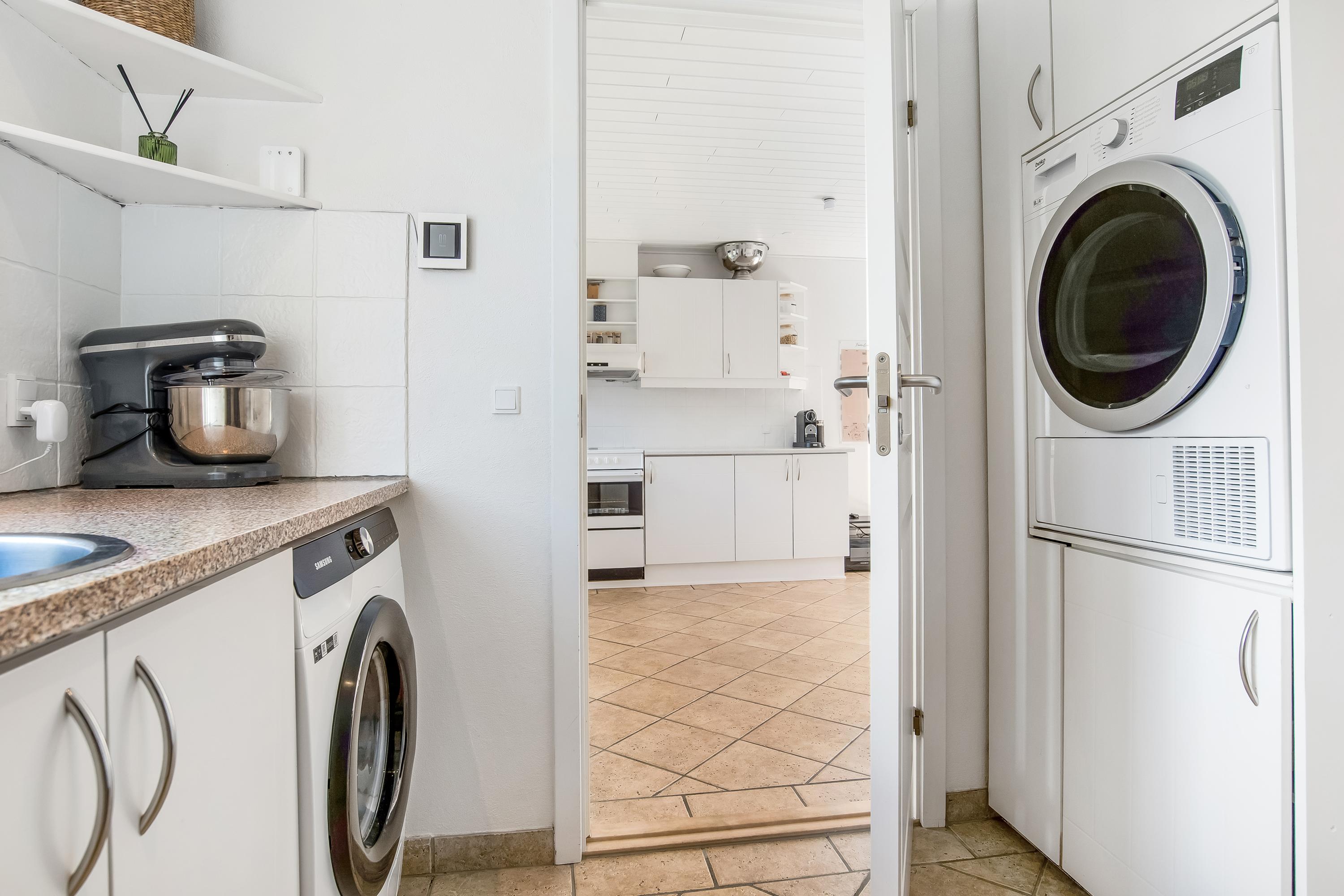 Indretningen består af et praktisk bryggers med vaskefaciliteter, et lyst køkken/alrum i åben forbindelse med stuen samt en