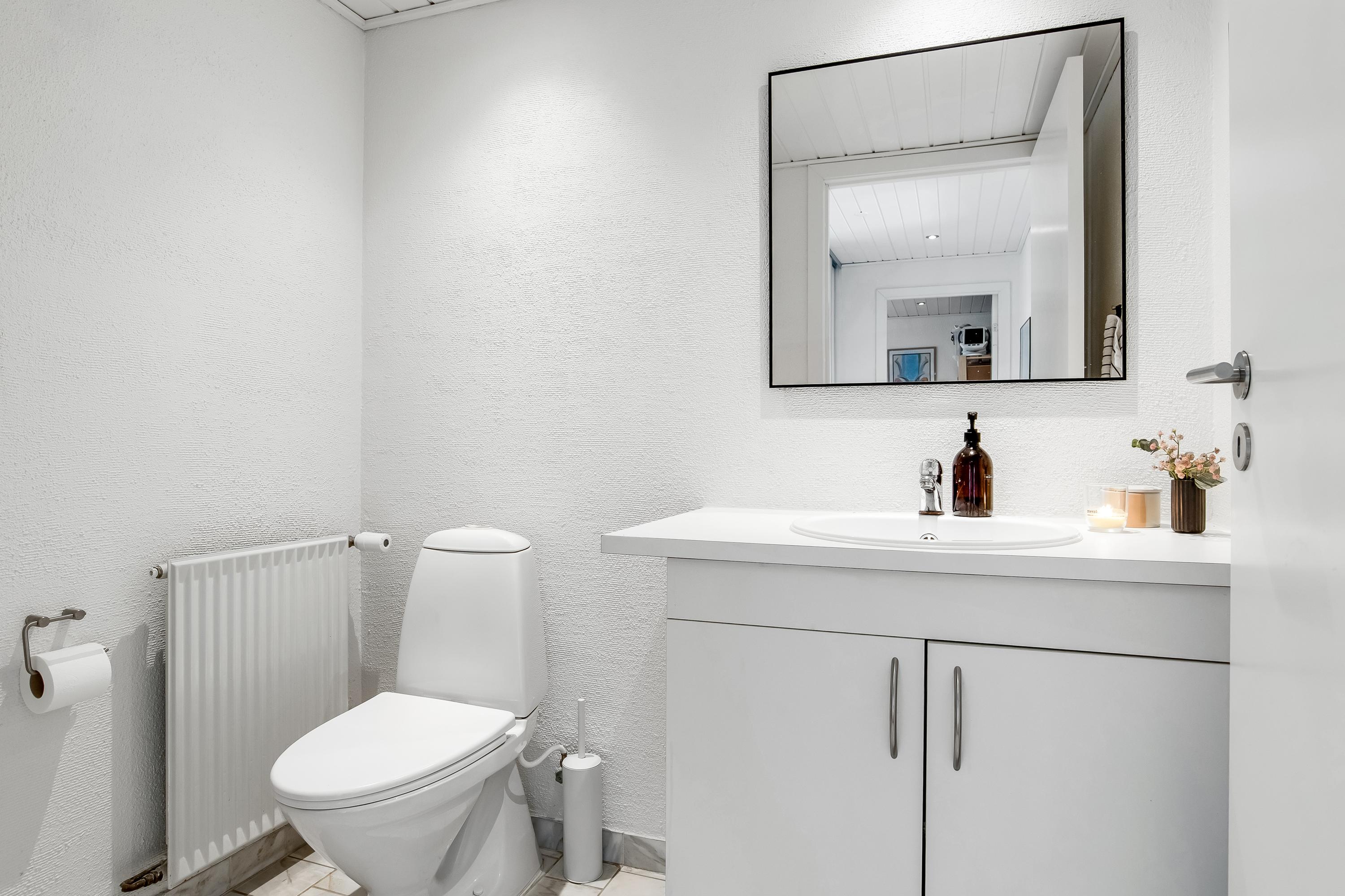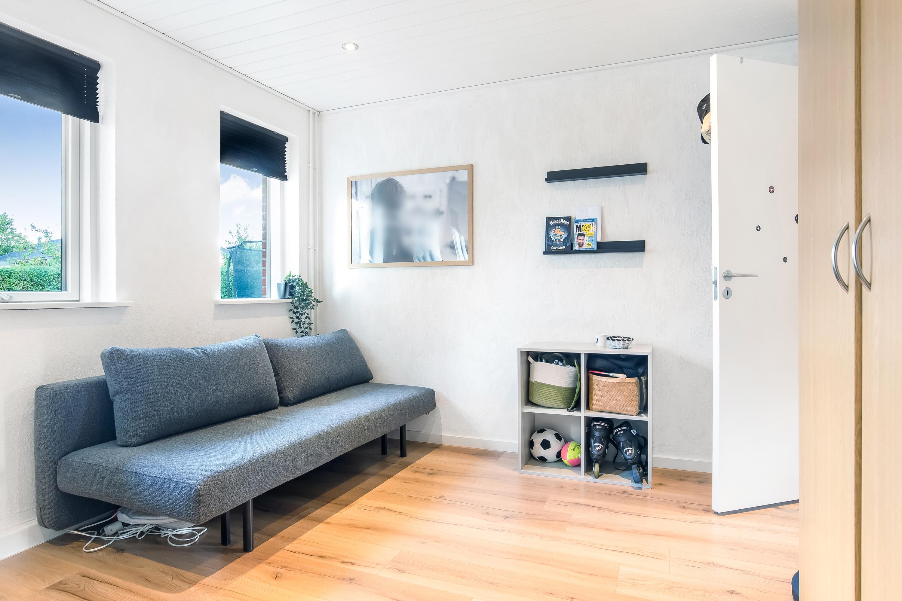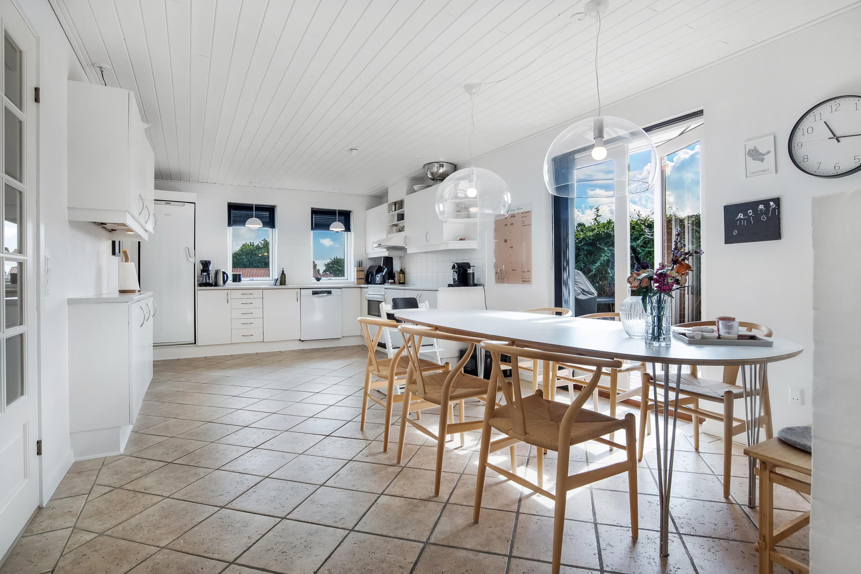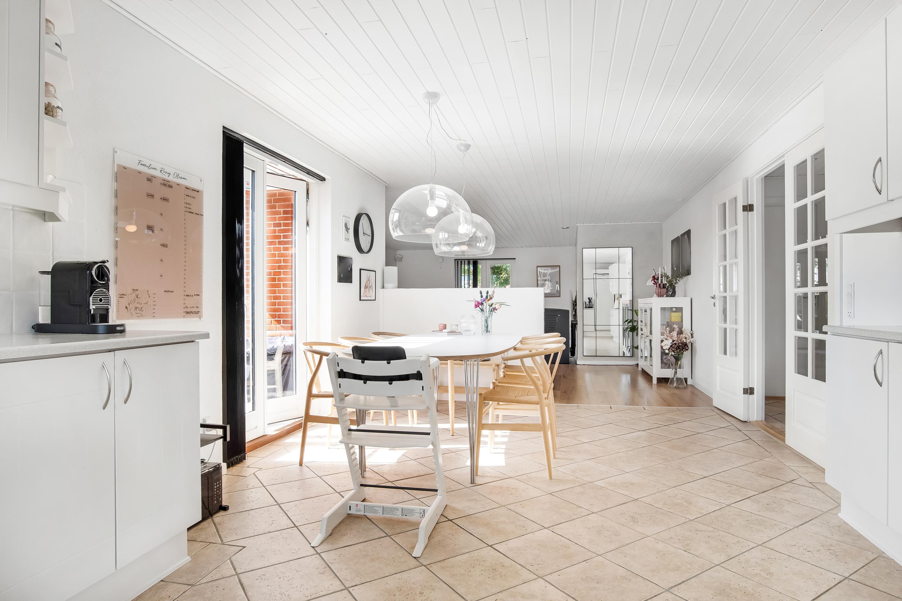 Indretningen består af et praktisk bryggers med vaskefaciliteter, et lyst køkken/alrum i åben forbindelse med stuen samt en