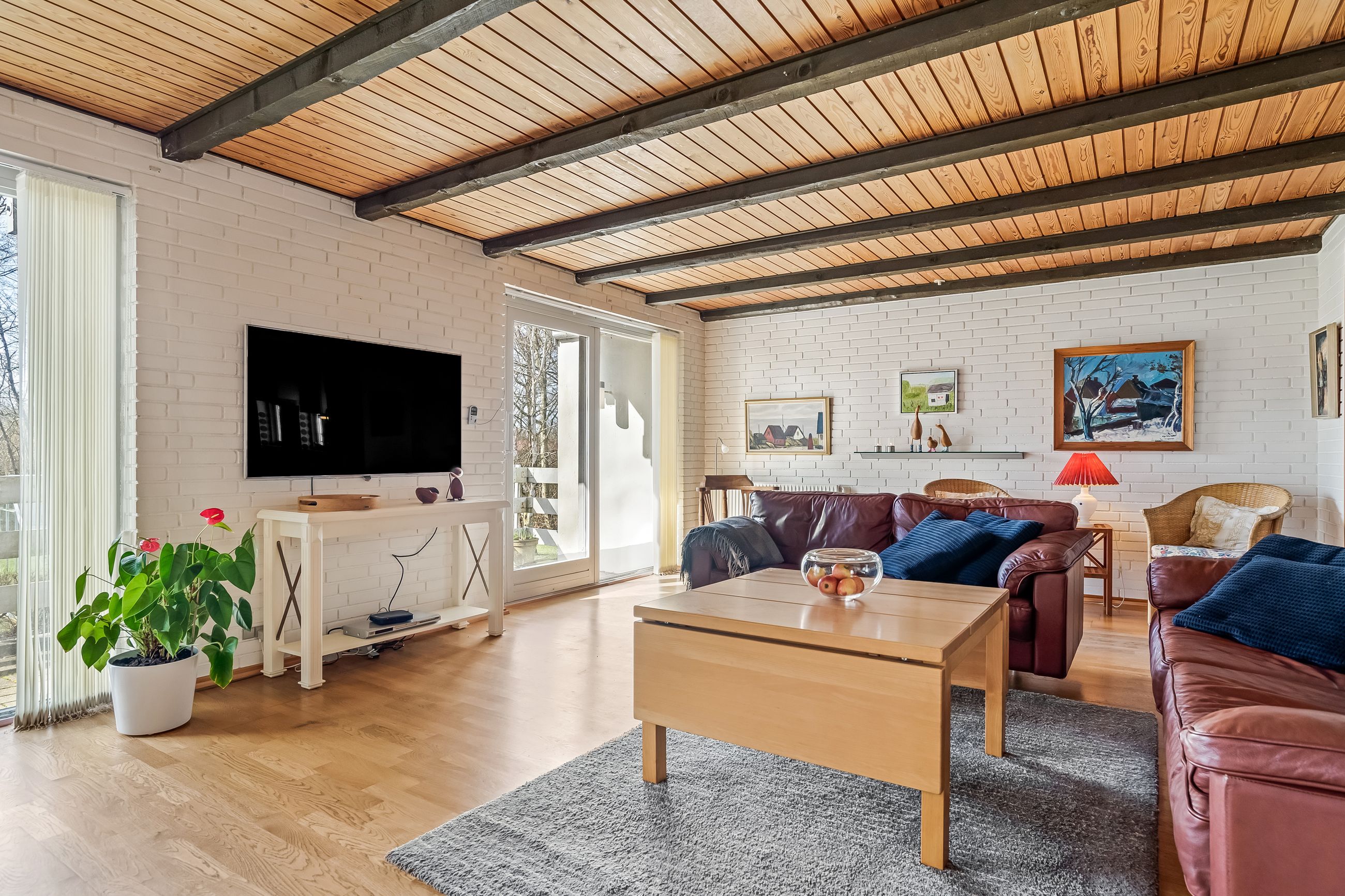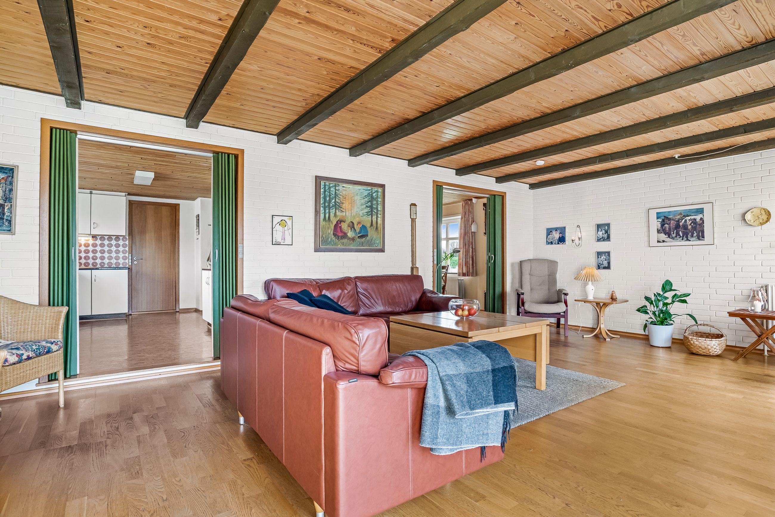 spisestue, køkken og stue med udgang til en sydvendt terrasse.
