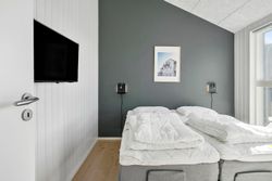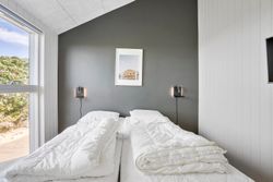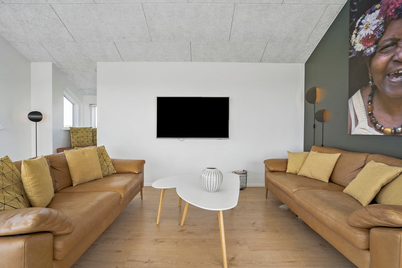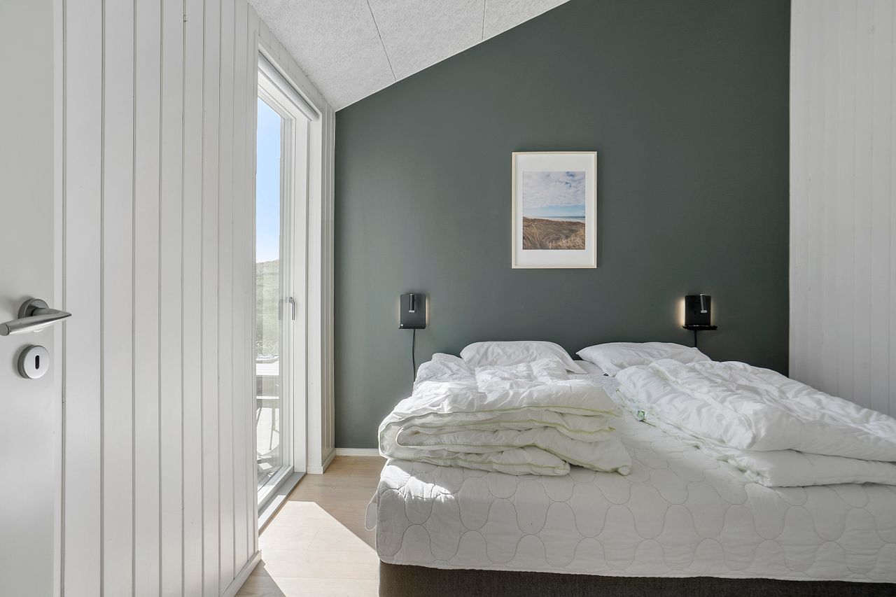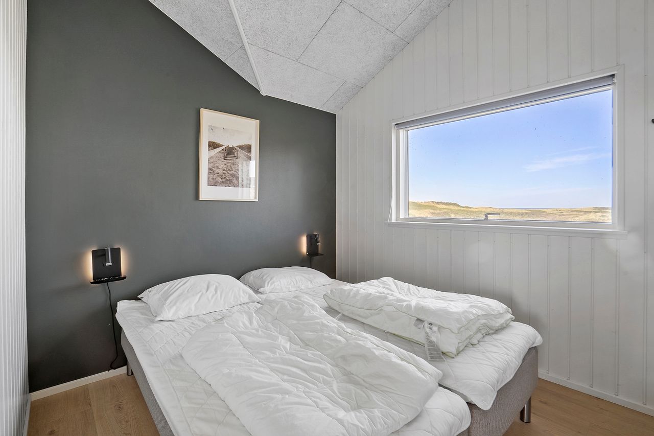 Indvendigt imponerer sommerhuset med et stilfuldt og moderne design, der oser af elegance. Store vinduespartier lukker masser af lys ind og forbinder de smagfuldt indrettede rum med den smukke natur udenfor. Gulvvarme i både opholdsrum og soveværelser sikrer en behagelig atmosfære året rundt, og de fem soveværelser er indrettet med kvalitetssenge, som indbyder til afslapning og hvile.