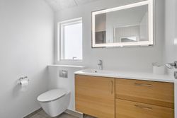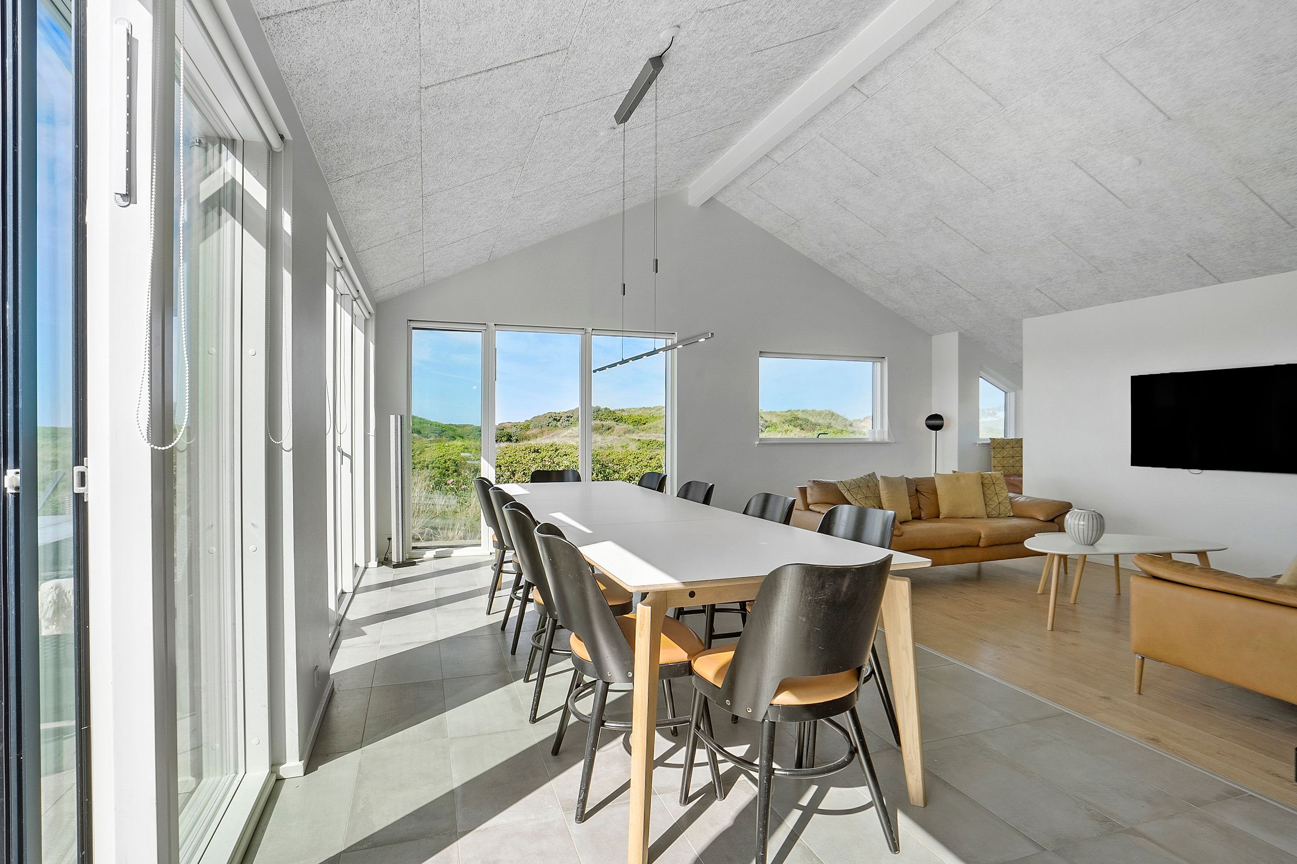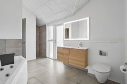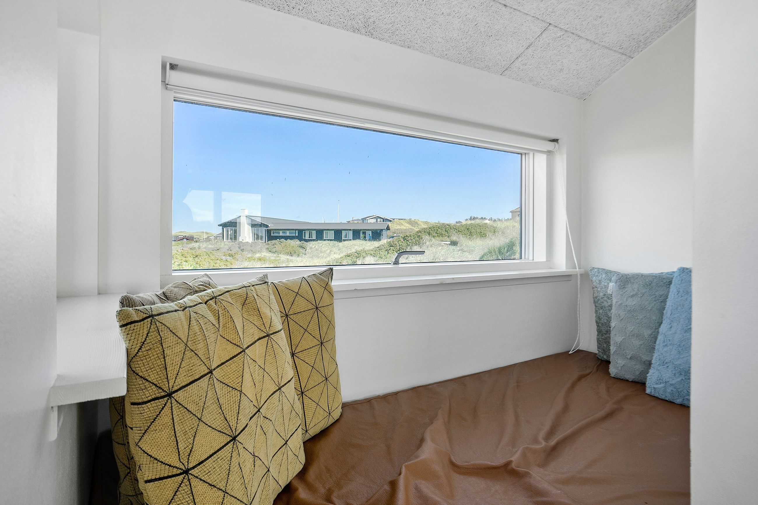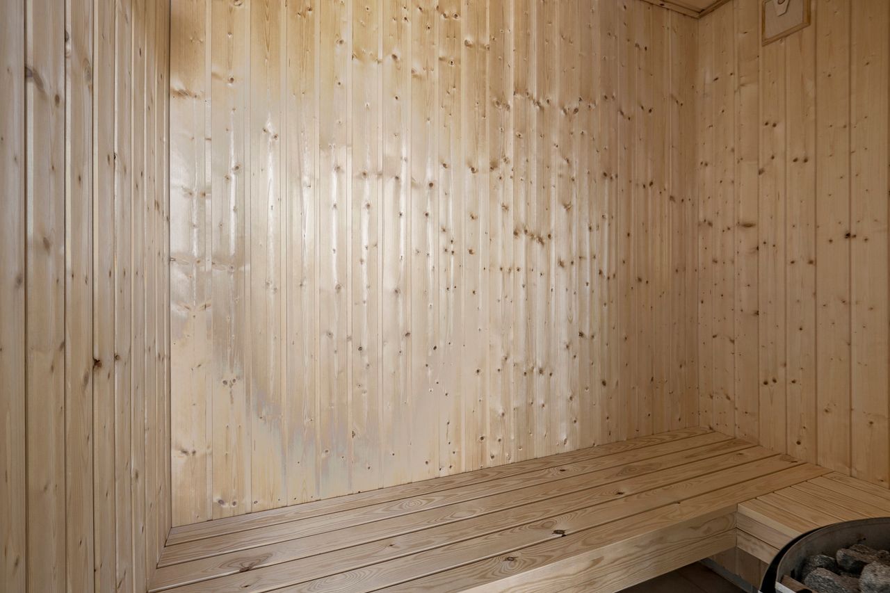 Indvendigt imponerer sommerhuset med et stilfuldt og moderne design, der oser af elegance. Store vinduespartier lukker masser af lys ind og forbinder de smagfuldt indrettede rum med den smukke natur udenfor. Gulvvarme i både opholdsrum og soveværelser sikrer en behagelig atmosfære året rundt, og de fem soveværelser er indrettet med kvalitetssenge, som indbyder til afslapning og hvile.