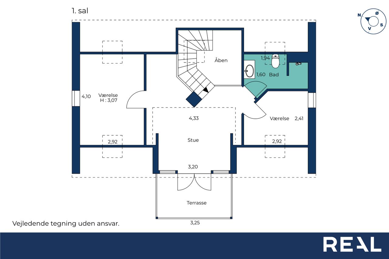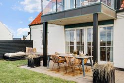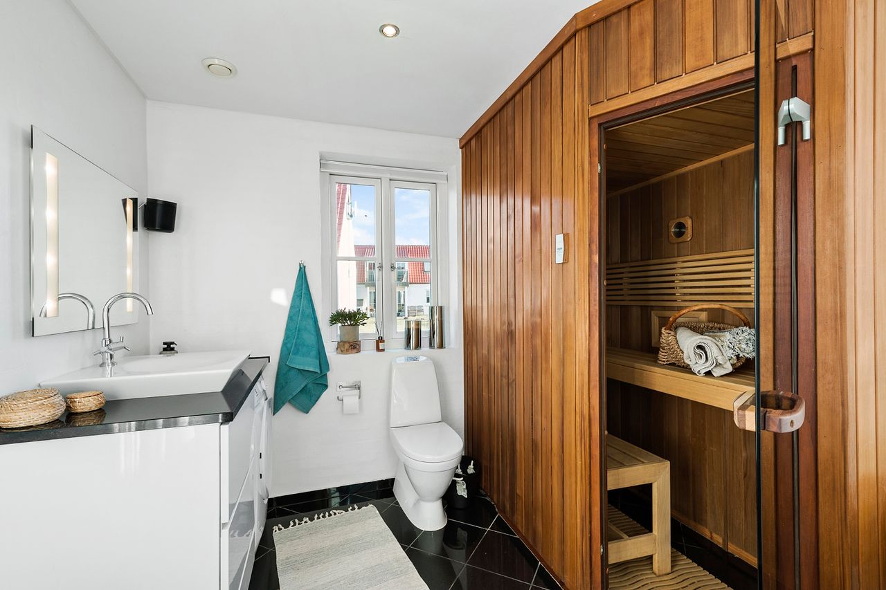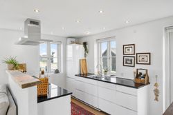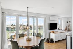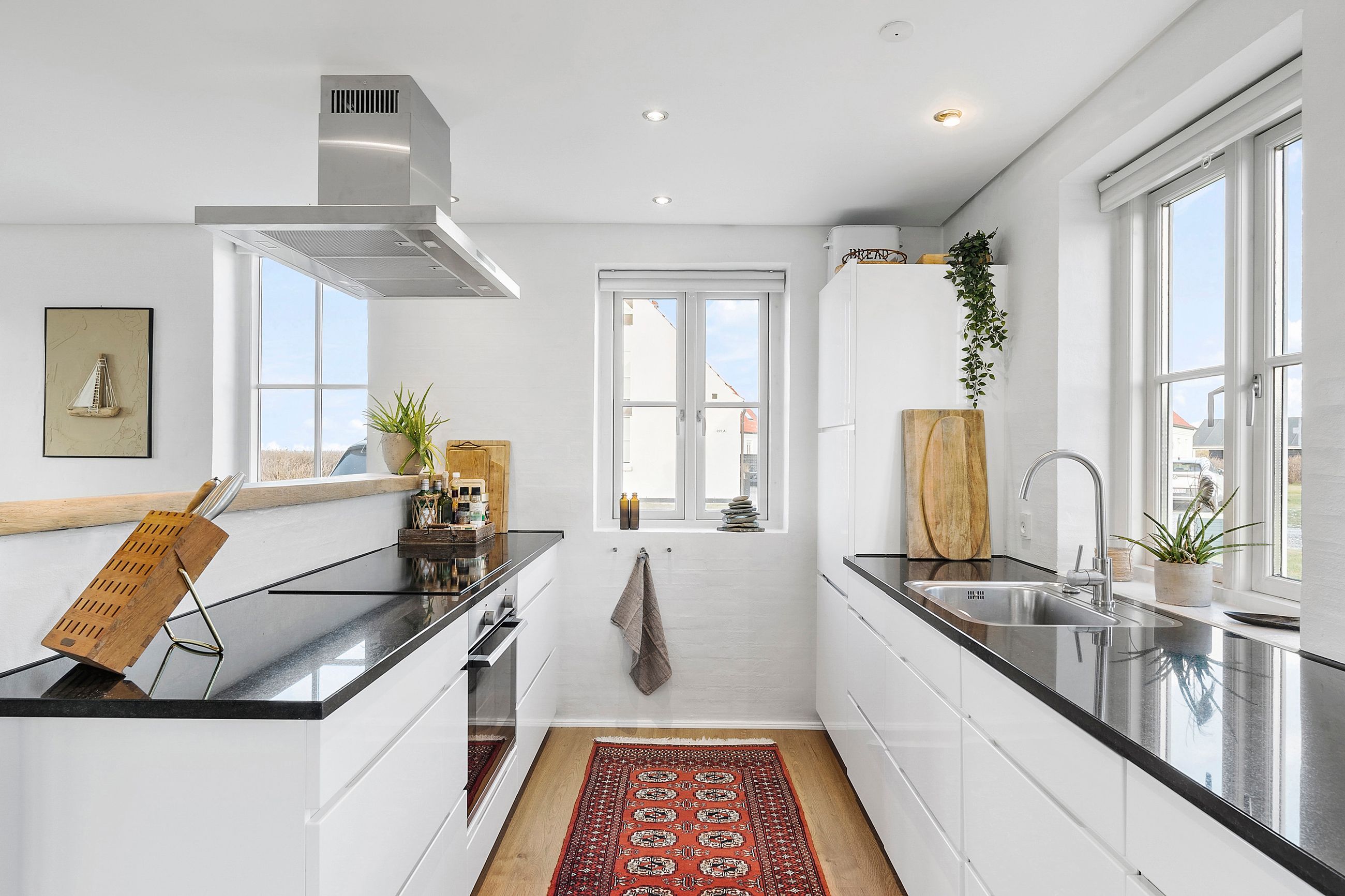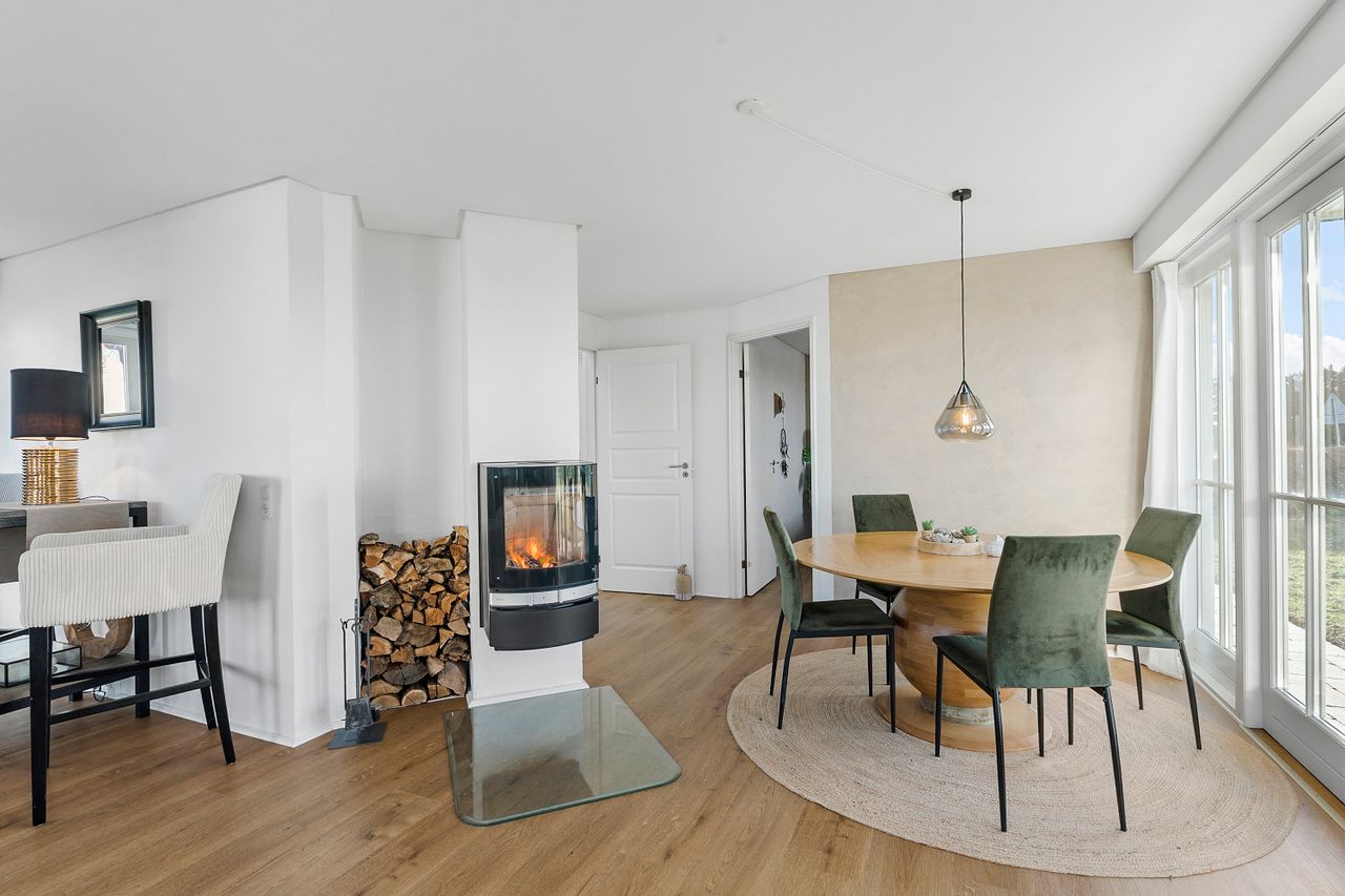 Det åbne køkken-alrum danner hjertet af huset og er det perfekte samlingspunkt for familie og venner. Herfra er der direkte adgang til en vestvendt terrasse, hvor du kan nyde solnedgangen, der kaster sit gyldne skær lige ind i stuen.