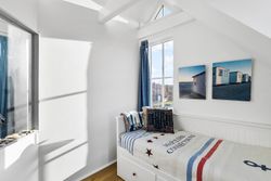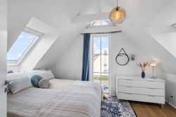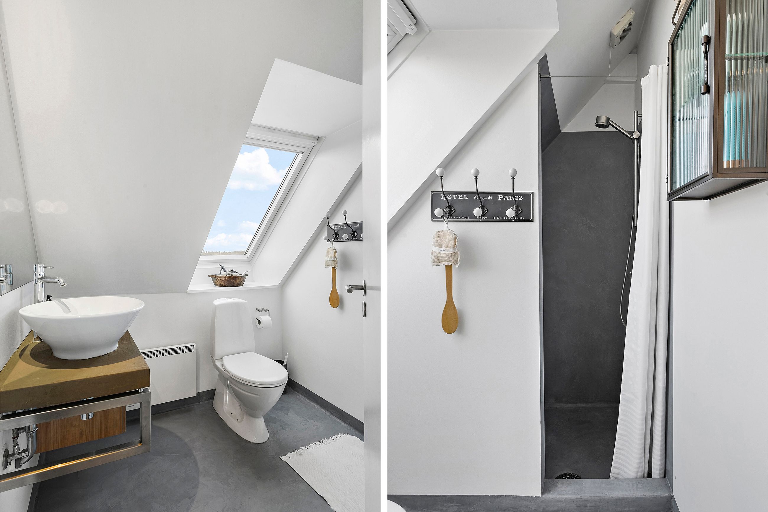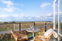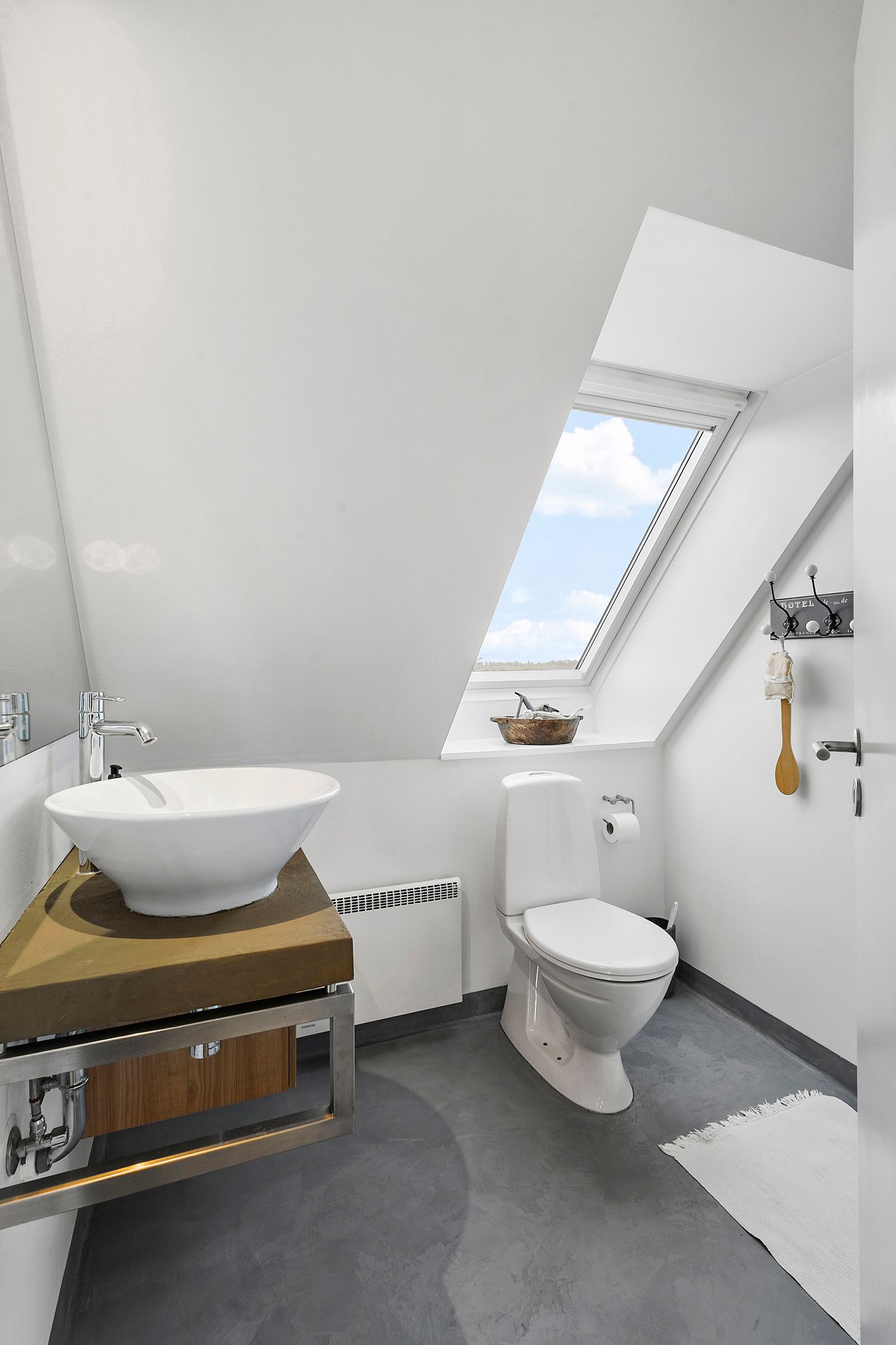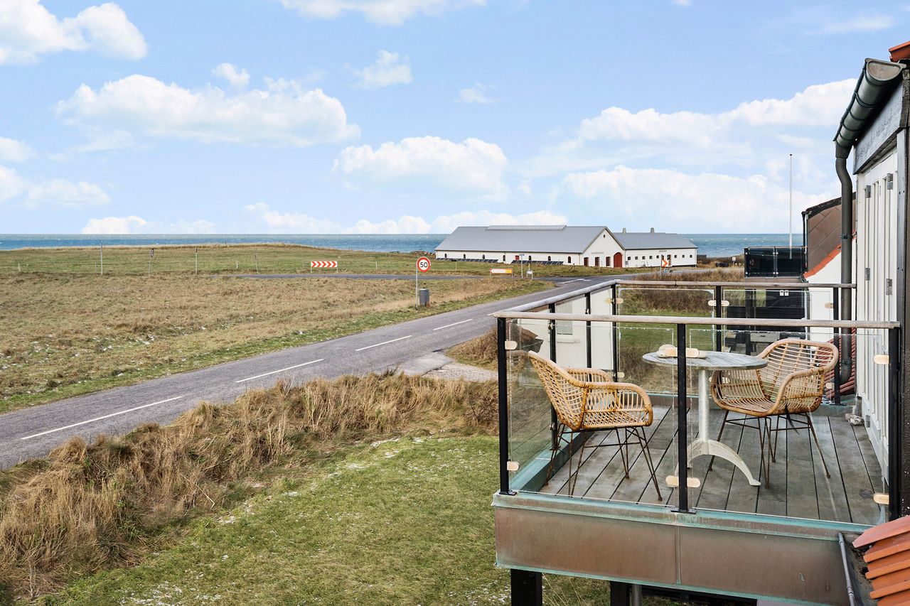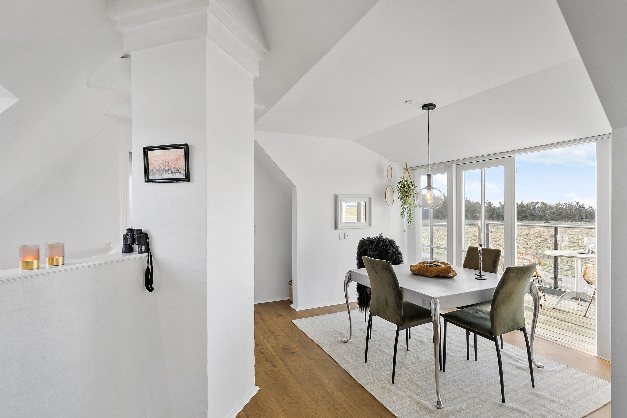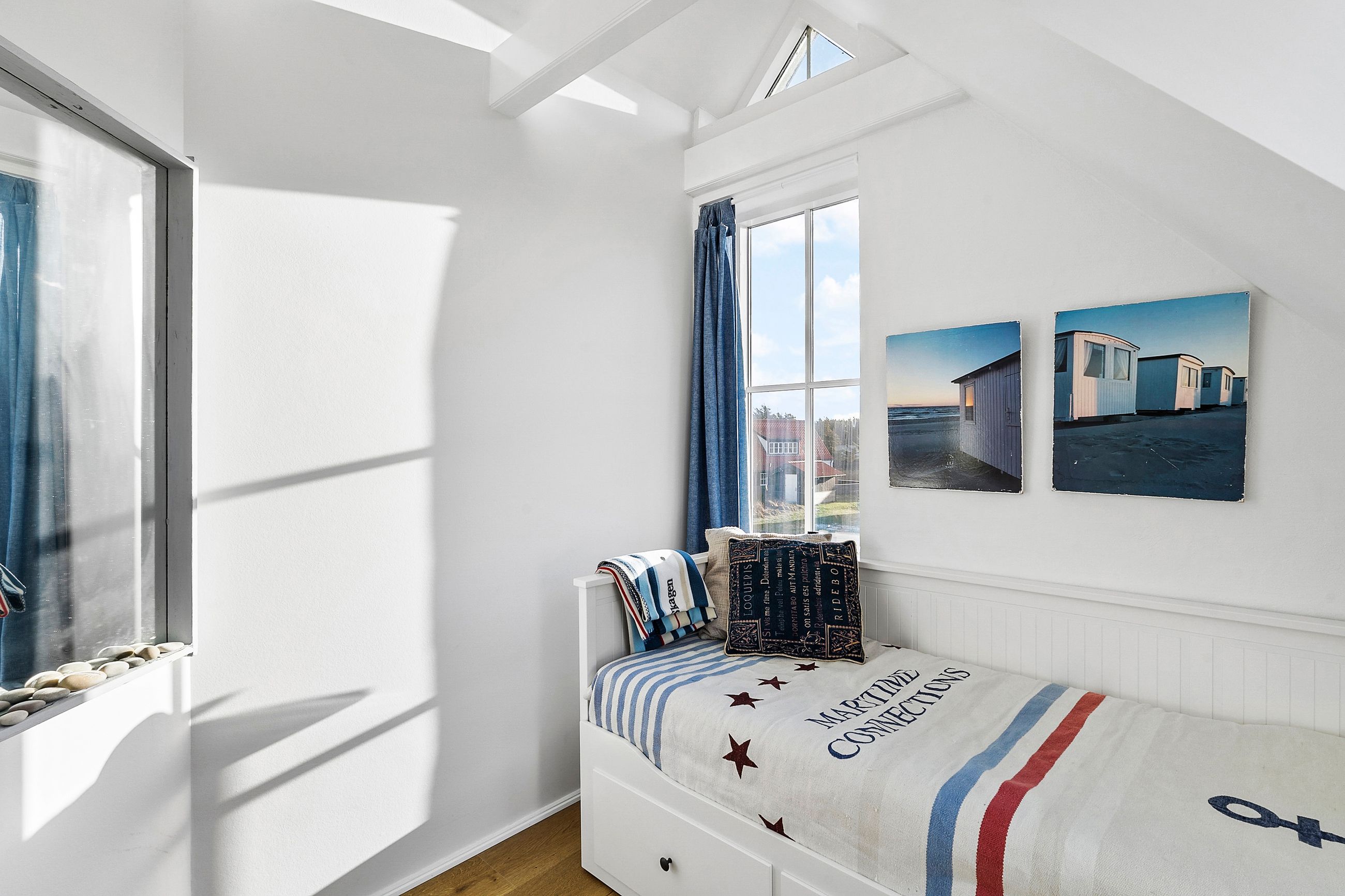 På første sal finder du en hyggelig lille stue med udgang til en altan – et oplagt sted at nyde et glas vin, mens solen forsvinder bag horisonten og skaber et malerisk landskab over vandet.