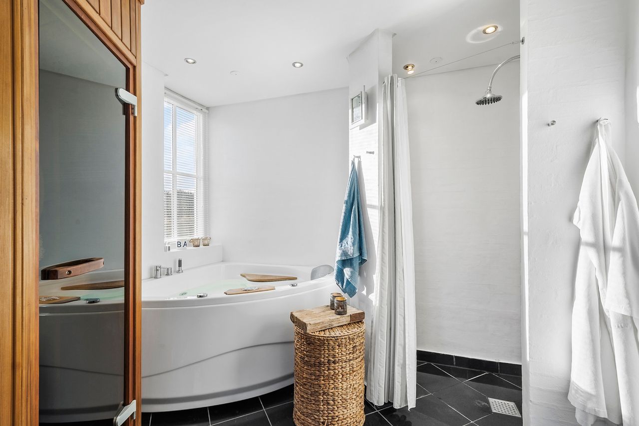 Indvendigt fremstår sommerhuset særdeles velholdt og er indrettet med fokus på kvalitet og komfort. Det rummer tre rummelige værelser og to badeværelser, hvoraf det ene er ren forkælelse med wellnessfaciliteter som spa og sauna.