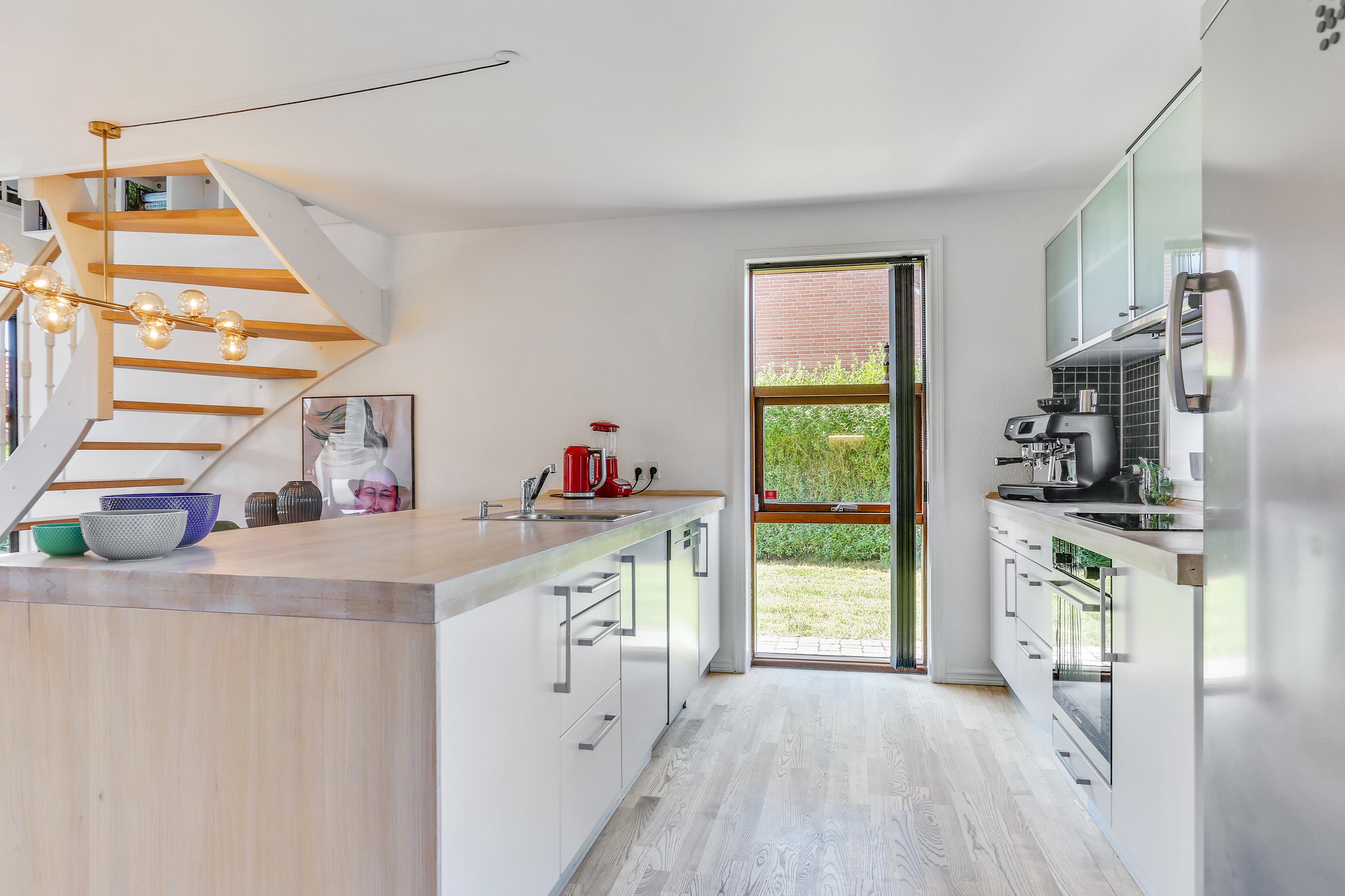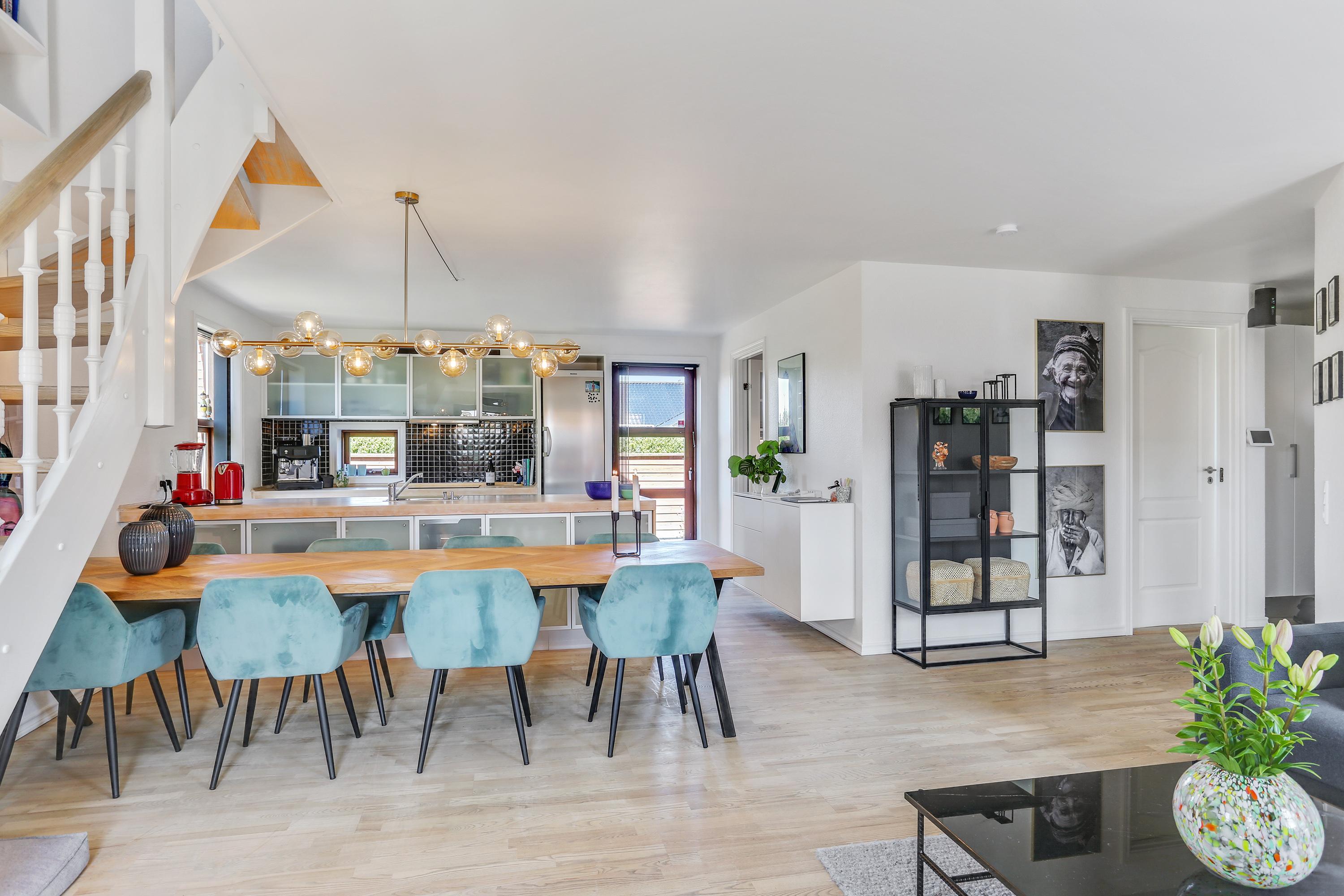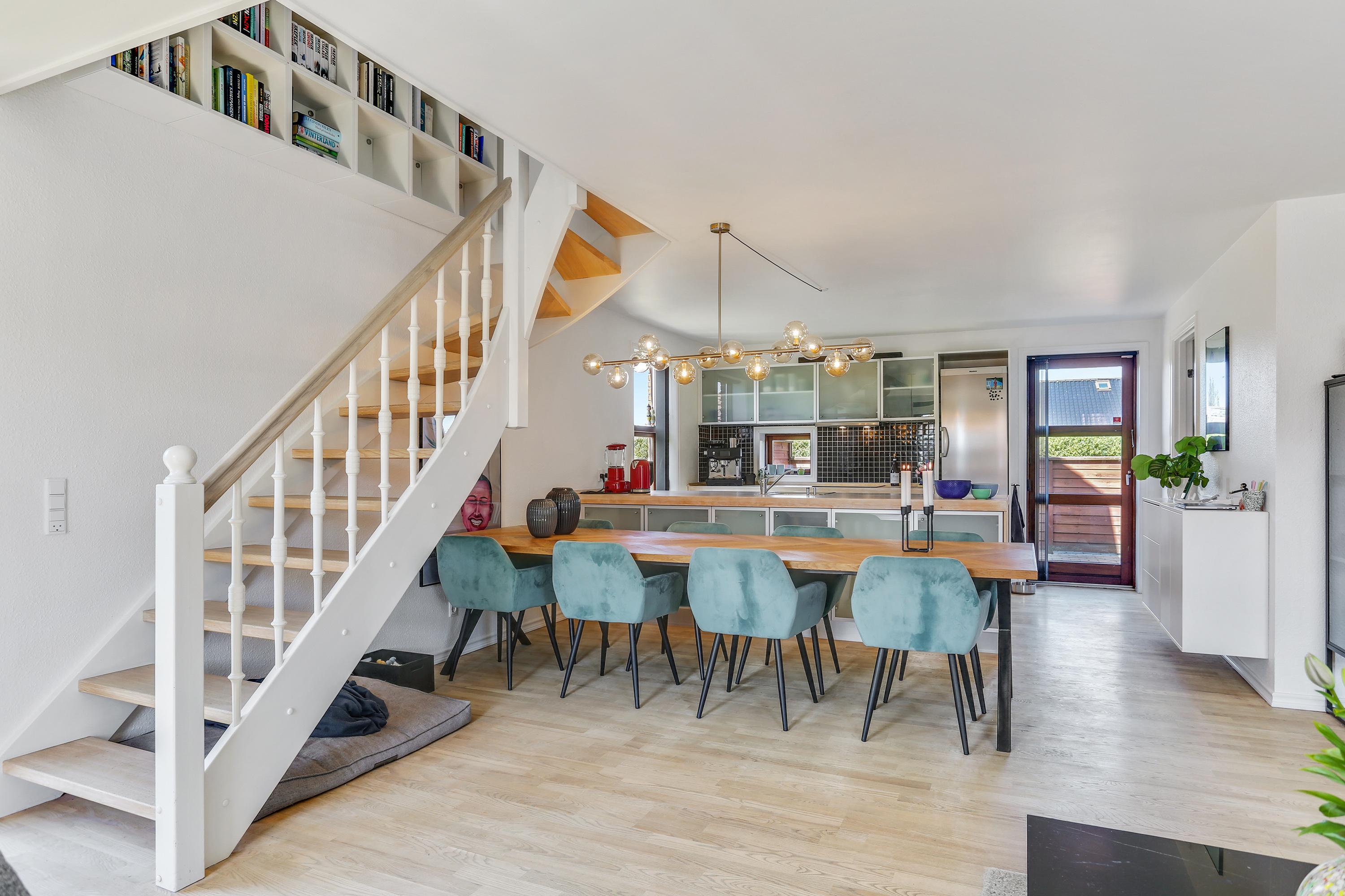 Når du træder indenfor, mødes du af en indbydende atmosfære og en gennemtænkt planløsning. Huset byder på en rummelig carport