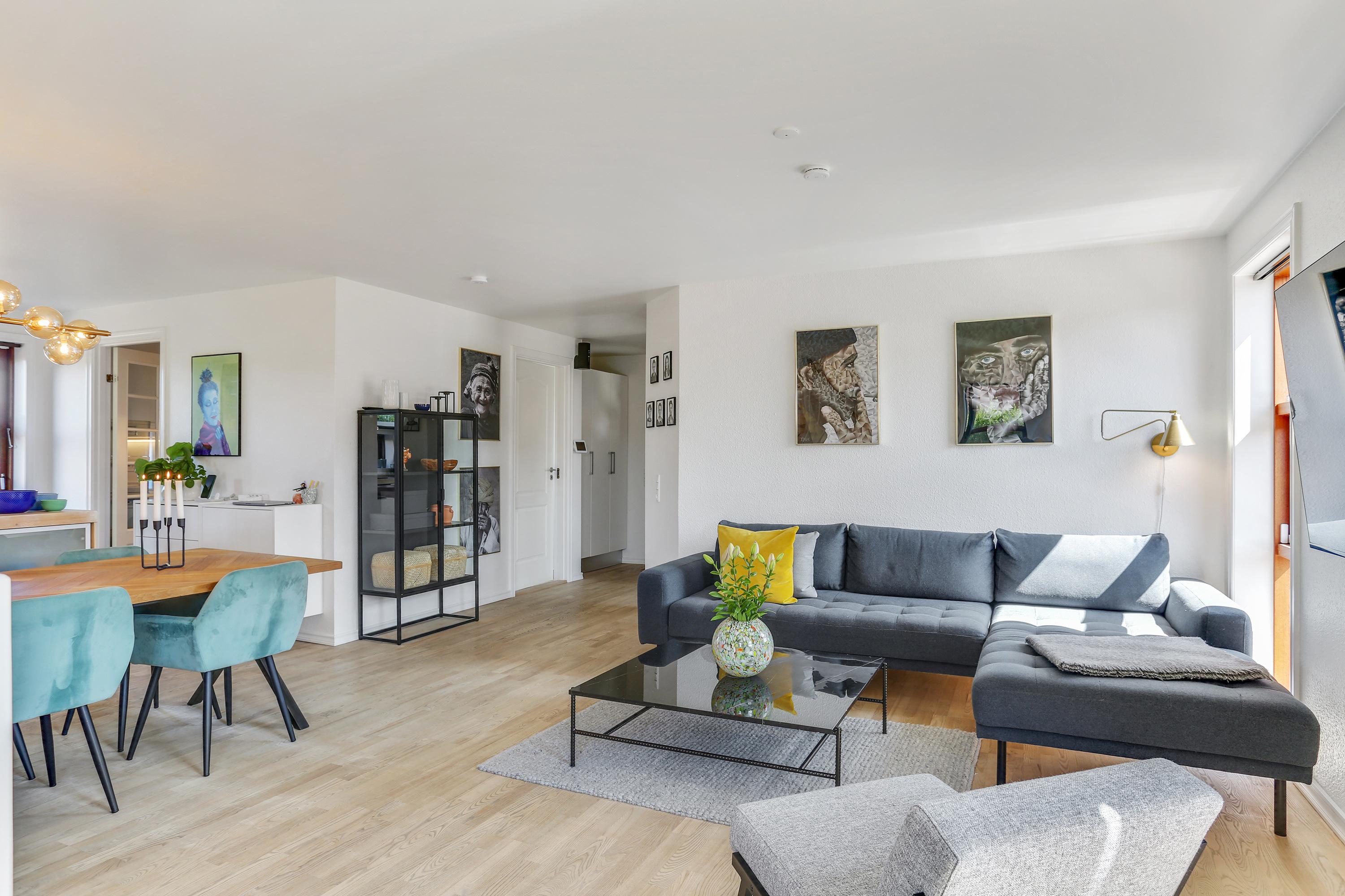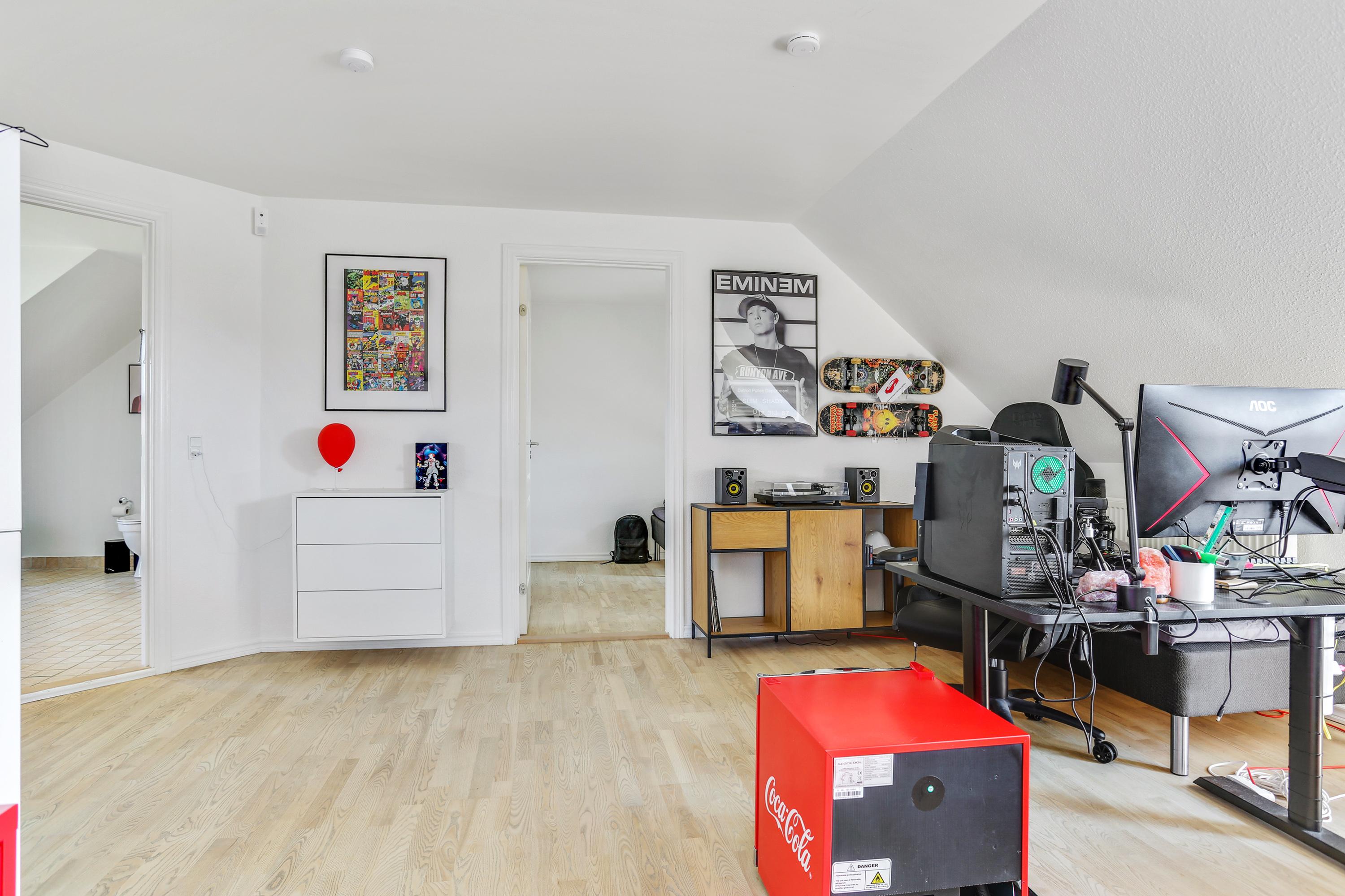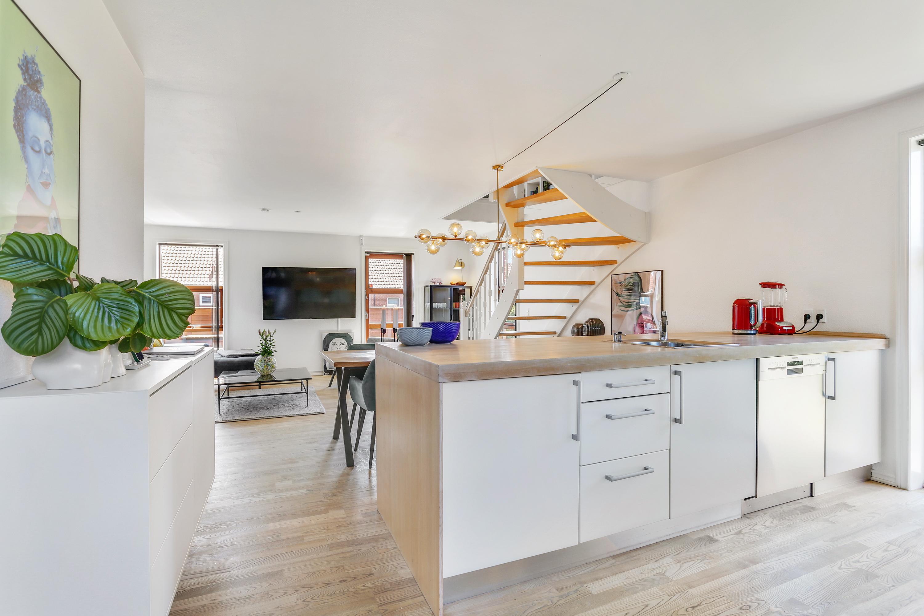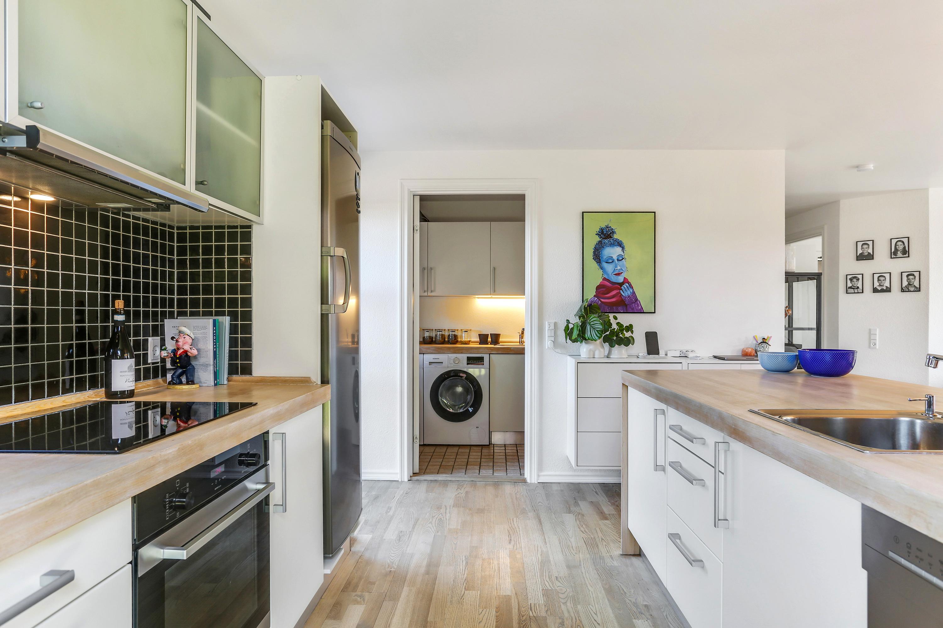 Når du træder indenfor, mødes du af en indbydende atmosfære og en gennemtænkt planløsning. Huset byder på en rummelig carport