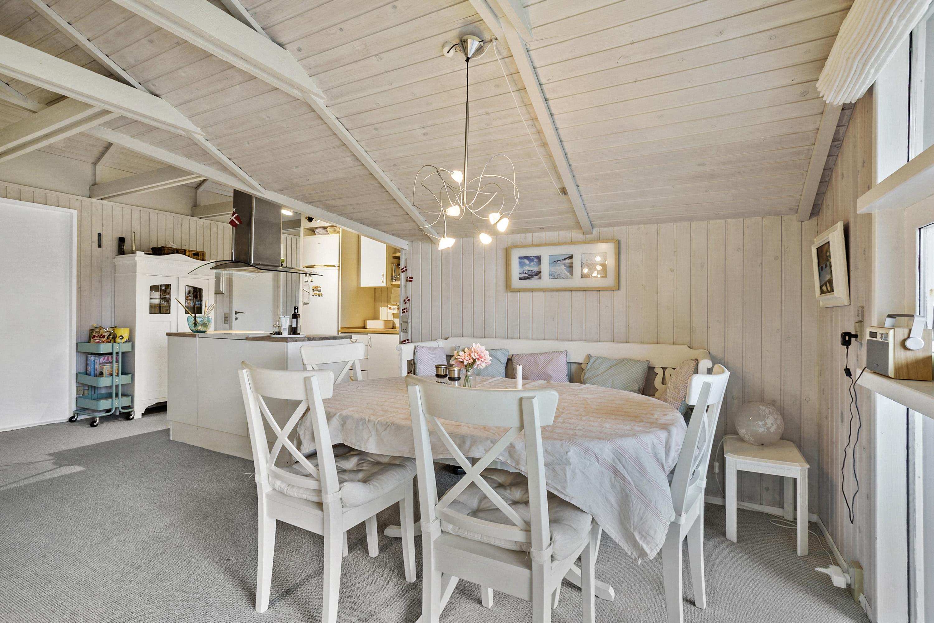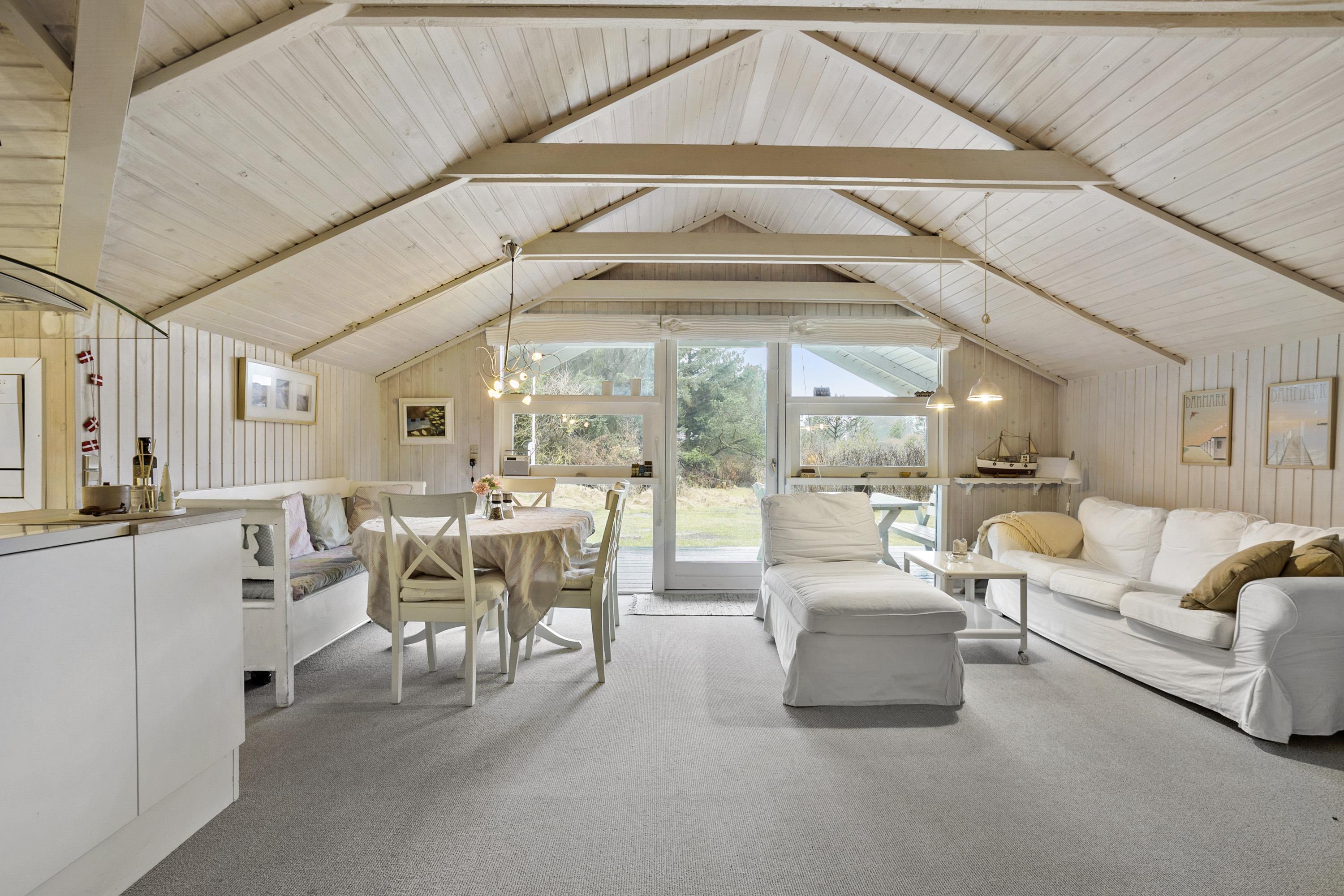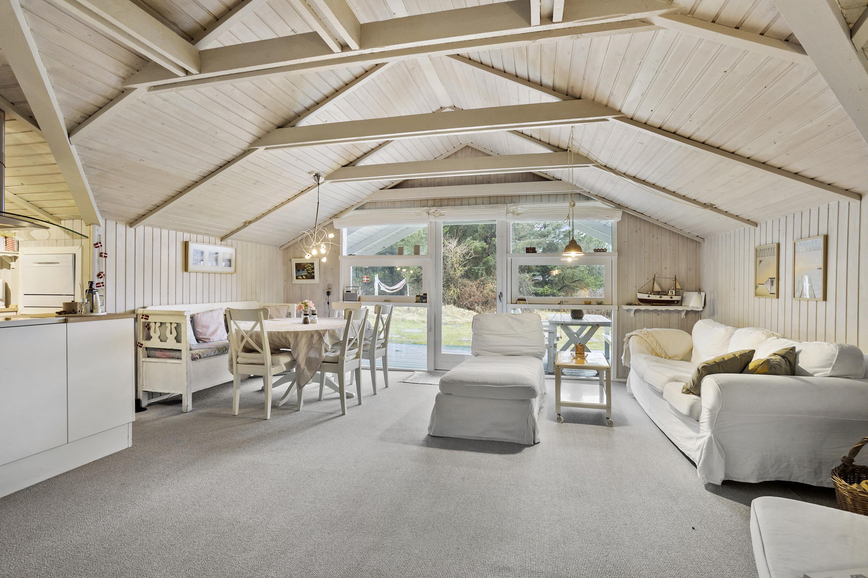 Her er hyggen i højsædet både inde og ude. Sommerhuset er indrettet med tre gode værelser, et lyst badeværelse og et stort, åbent