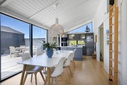 Allerede når bilen glider ind i den rummelige dobbeltgarage, sænker roen sig. M Christensens Vej 95 byder på et fantastisk og autentisk sommerhus opført i 2021 – en ejendom, hvor der er tænkt over hver eneste detalje, og hvor kvalitet, æstetik og funktionalitet går hånd i hånd.