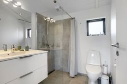 Boligen rummer tre rummelige værelser, en hyggelig hems samt to flotte badeværelser – alt holdt i en moderne og stilren stil, der matcher husets øvrige udtryk.