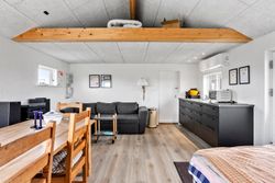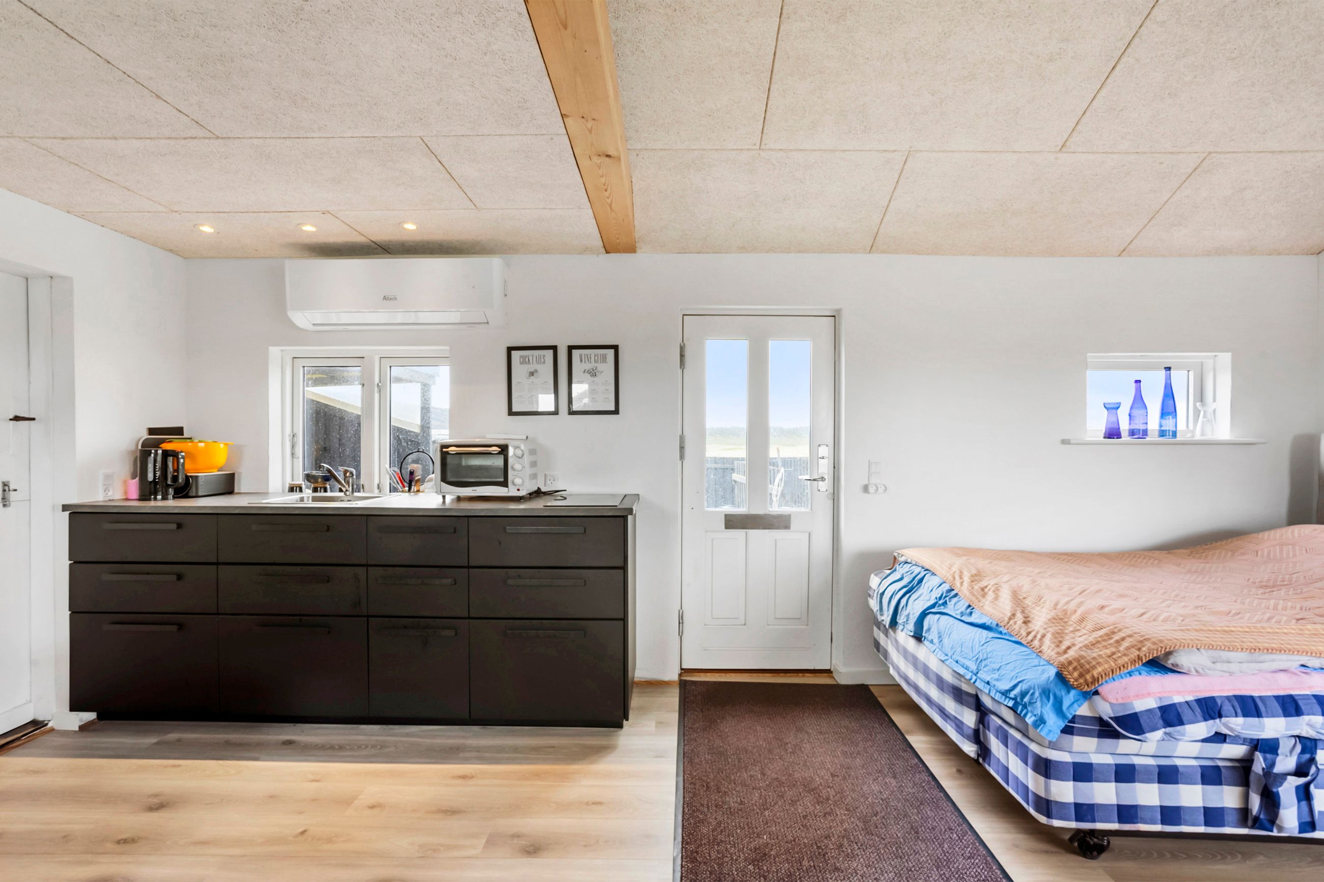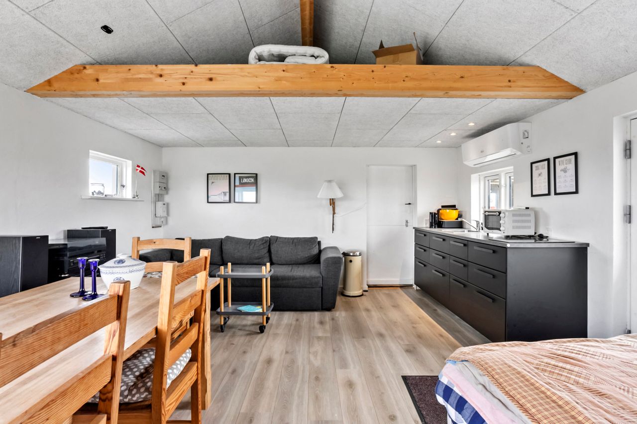 Stuen rummer både opholdsplads og en soveplads, og derudover er der en lille hems, som kan bruges til ekstra soveplads eller hyggekrog. Huset har desuden en entré/gang samt et funktionelt badeværelse.