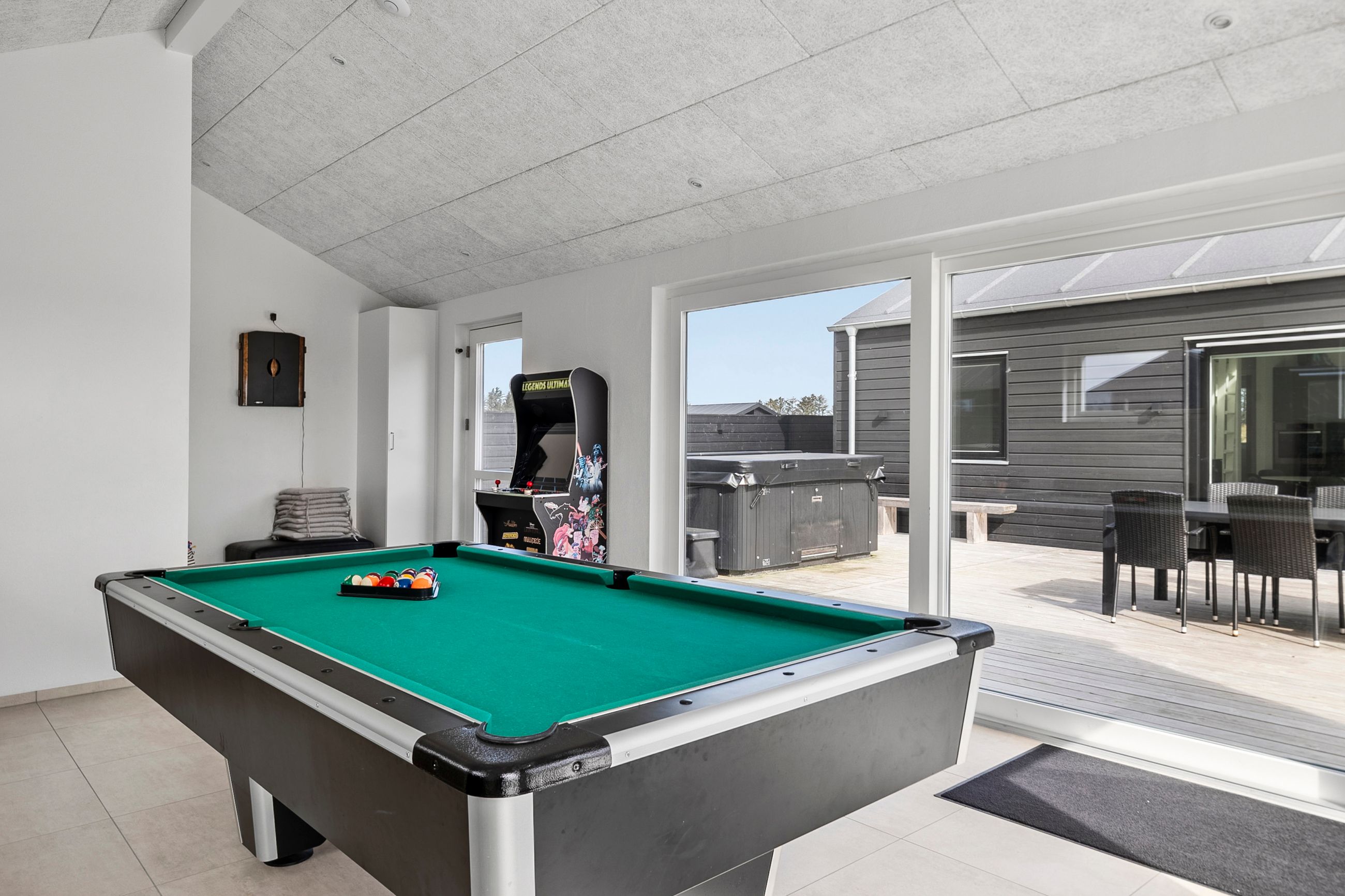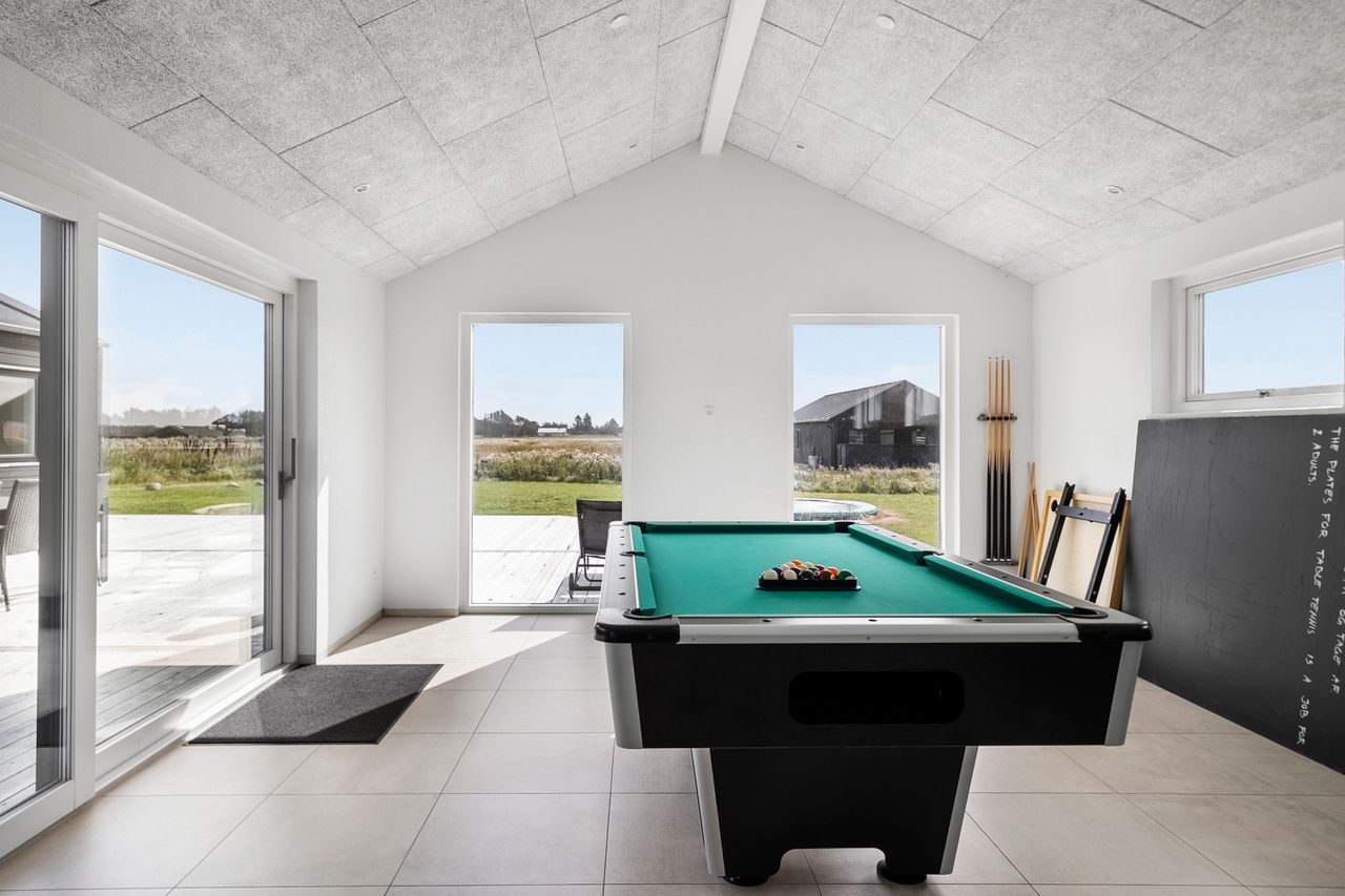 Annekset er et ekstra plus – et lyst aktivitetsrum med dart, poolbord og bordtennis, hvor familiens yngste (og legesyge voksne) kan udfolde sig.