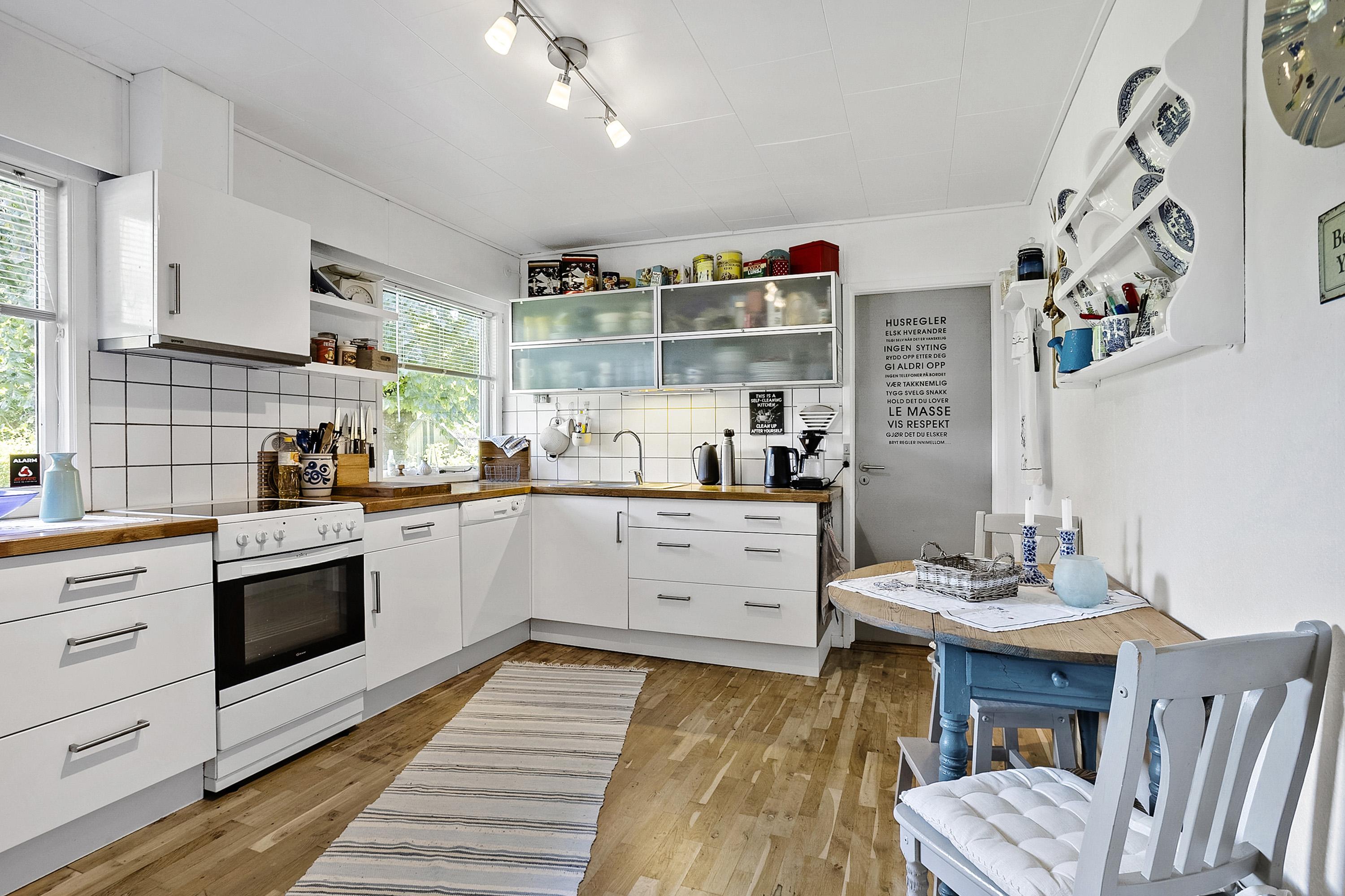 Boligen er velindrettet og rummer hele fire værelser, et stort badeværelse med badekar samt et ekstra gæstetoilet ideelt til børnefamilien eller dig, der ønsker god