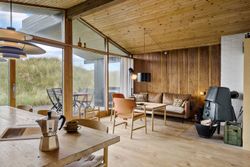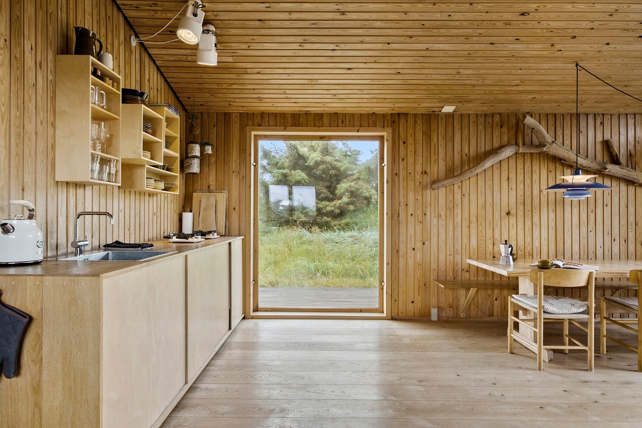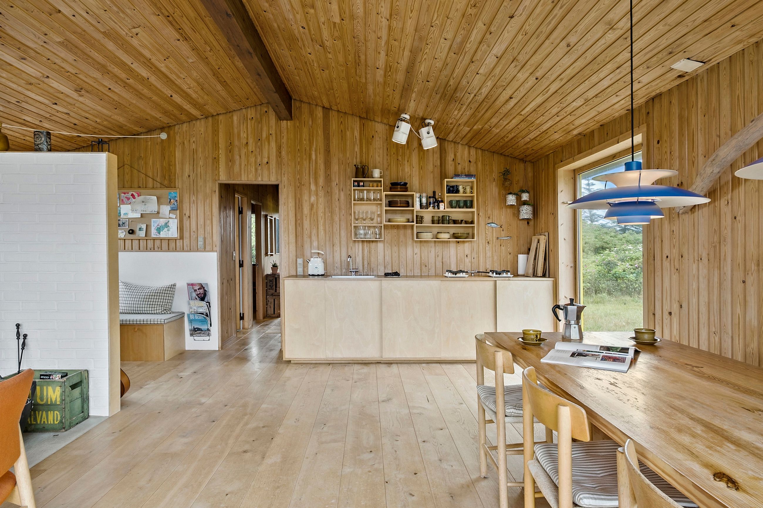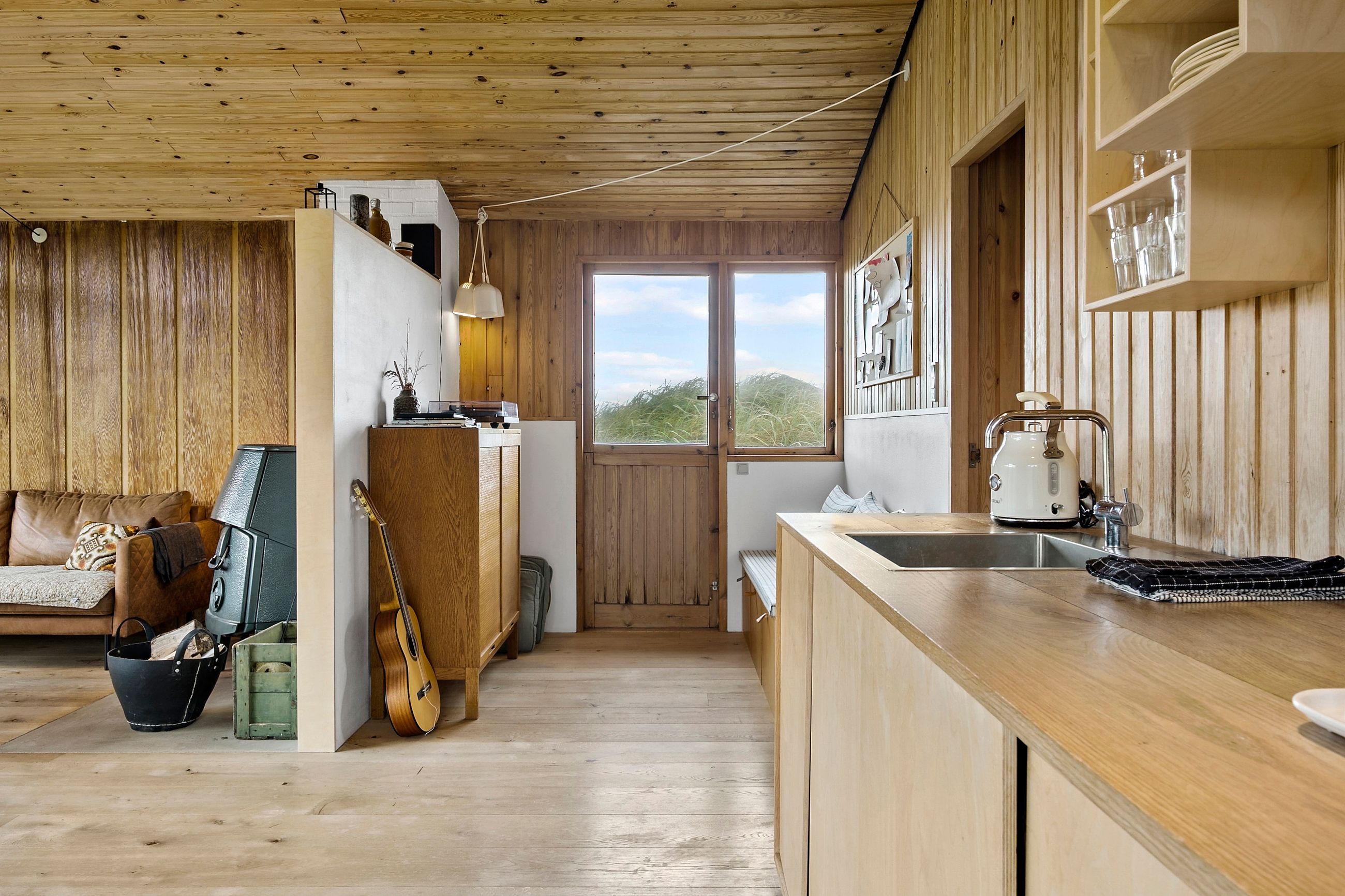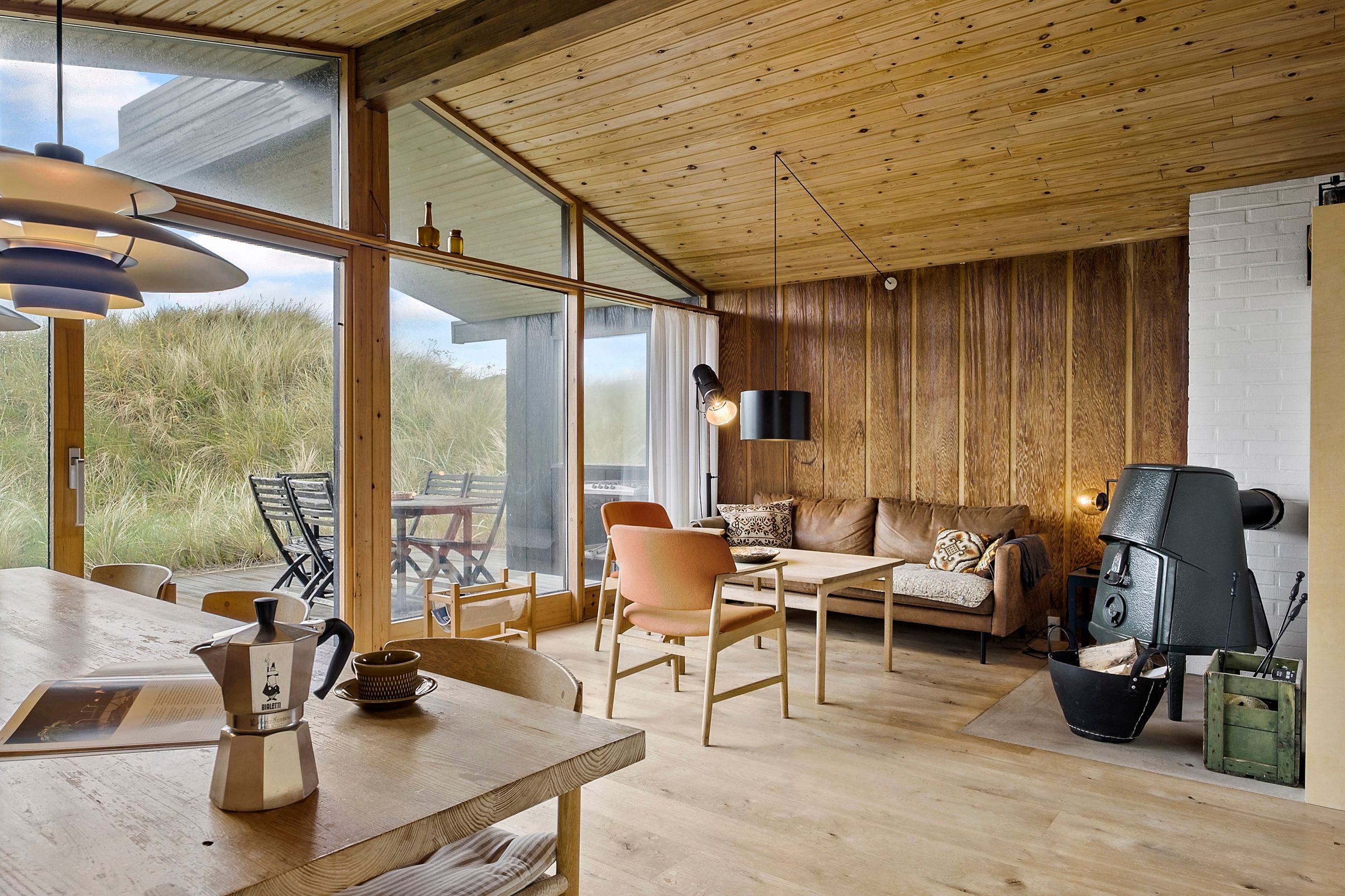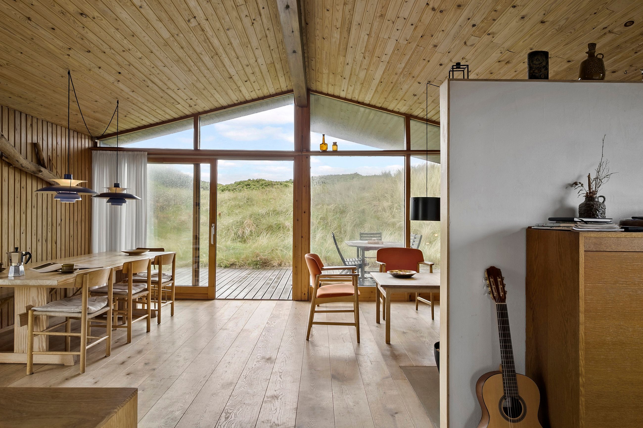 Huset er oprindeligt opført i 1960’erne men er sidenhen blevet nænsomt renoveret med respekt for dets sjæl og oprindelige arkitektur. Resultatet er et stemningsfuldt fristed, hvor kvalitet og materialevalg er i særklasse. Her får i blandt andet gulve i massive egetræsplanker, snedkerkøkken i eg, nyt badeværelse med gulvvarme og elegante volaarmaturer. De store skydedøre inviterer klitlandskabet helt ind i stuen og skaber en naturlig forbindelse mellem ude og inde.