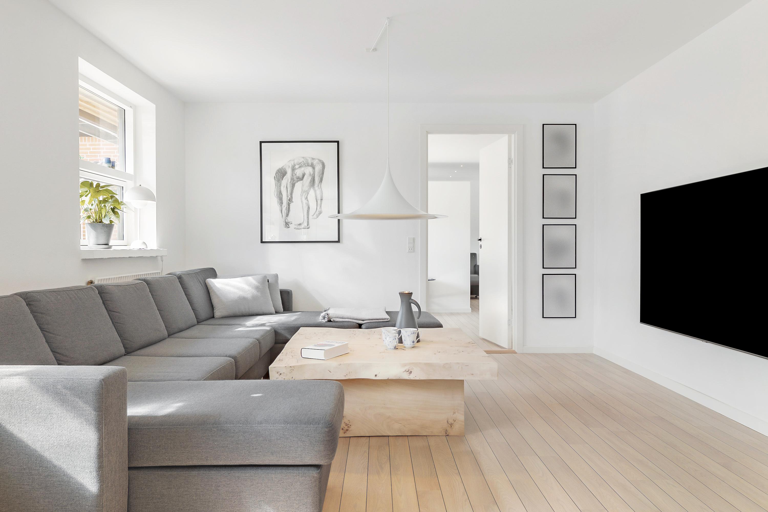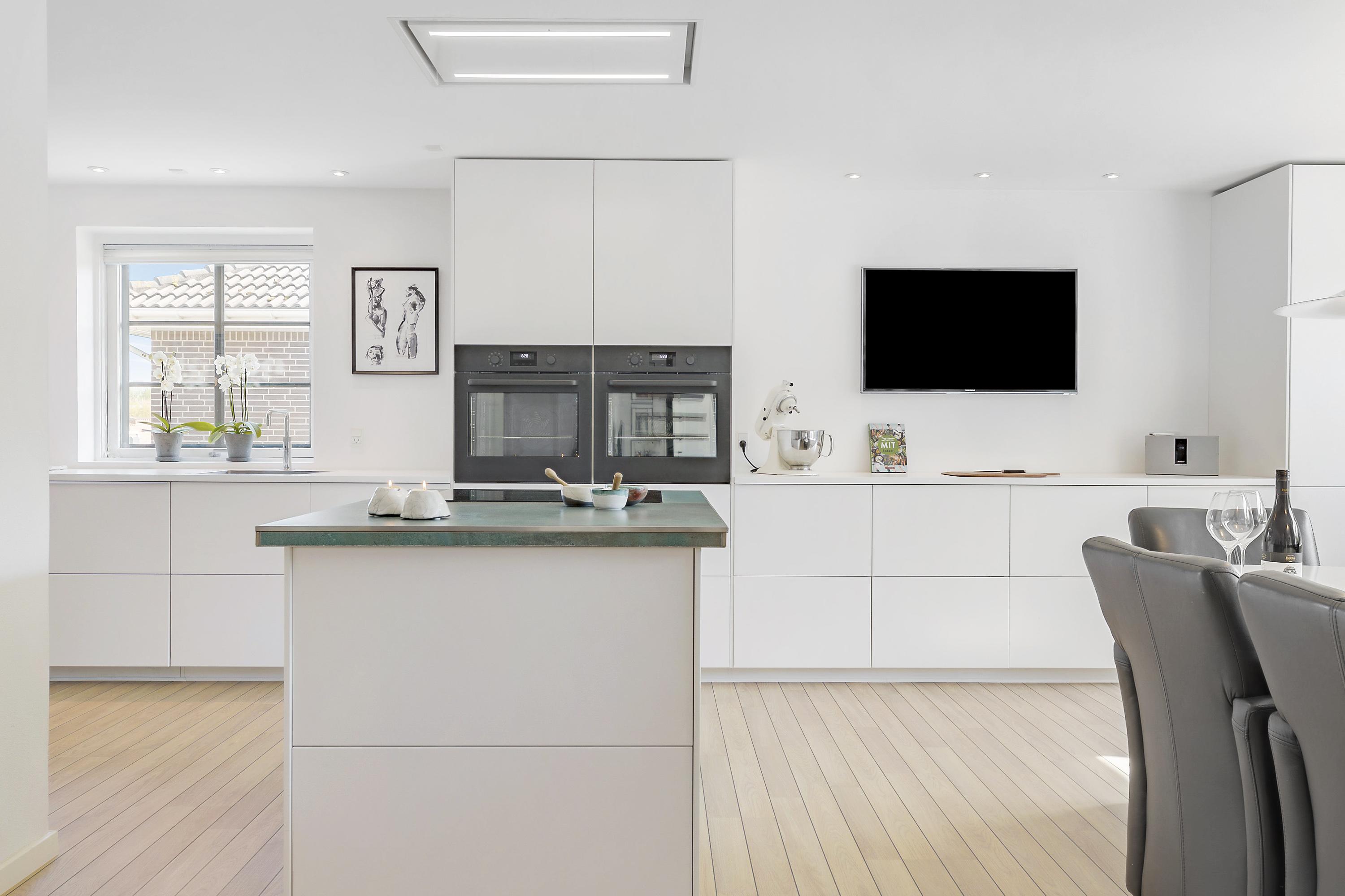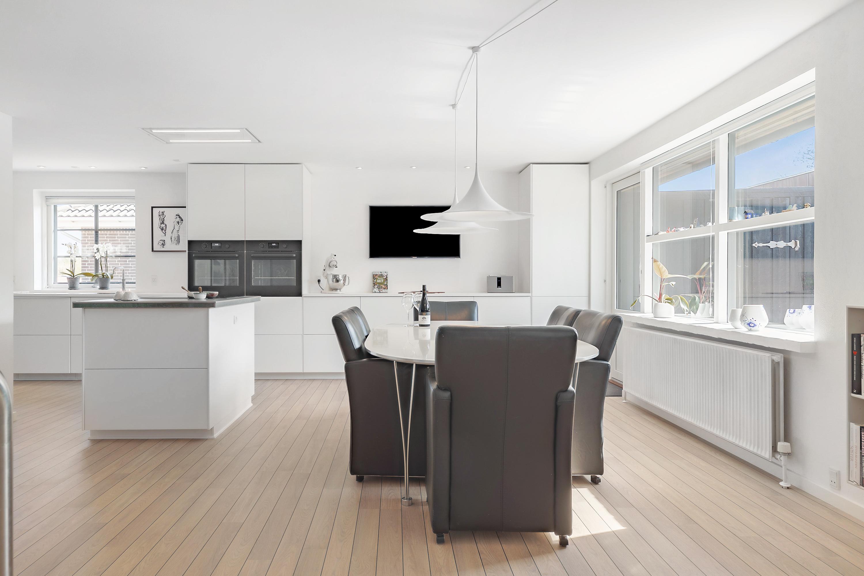 Stueplanen indeholder et stort, lyst køkken-alrum med et moderne IKEA-køkken fra 2023. Dertil har man et .. Læs mere...