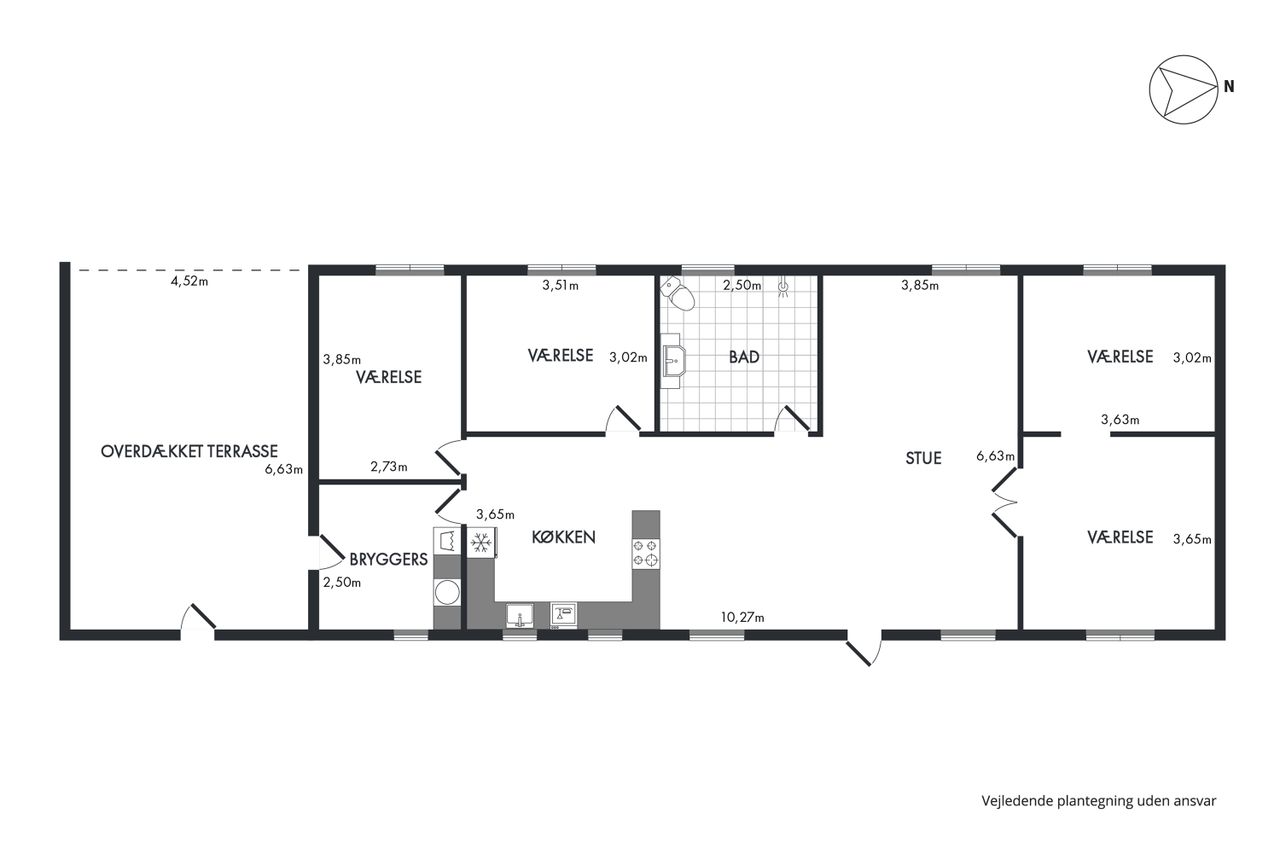 Det store og lyse køkken-alrum er huset hjerterum og byder b.la. på et nyere Ikea køkken fra 2016. Derudover får man et nyere badeværelse fra 2017, samt 4 gode værelser, der giver rigeligt plads til børneværelser, hjemmekontor eller gæsteværelse.