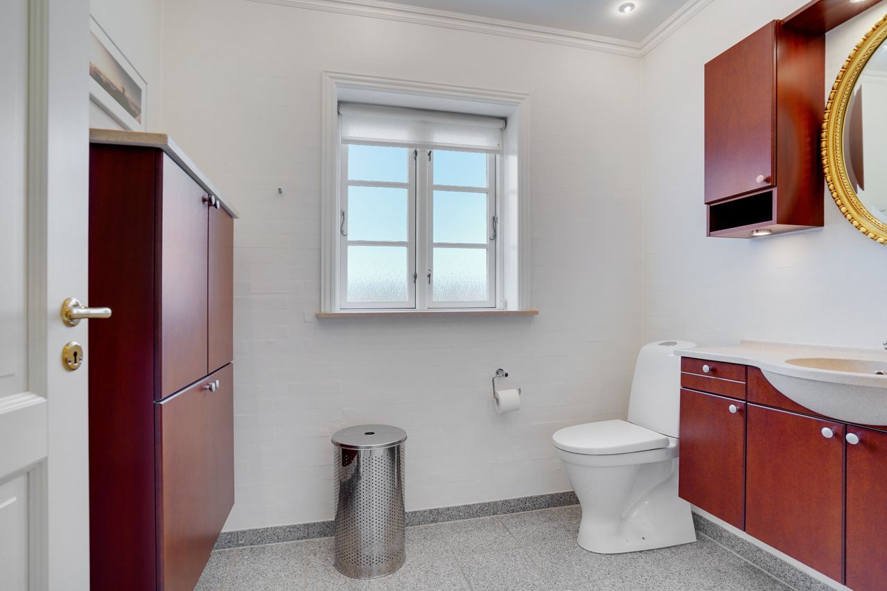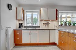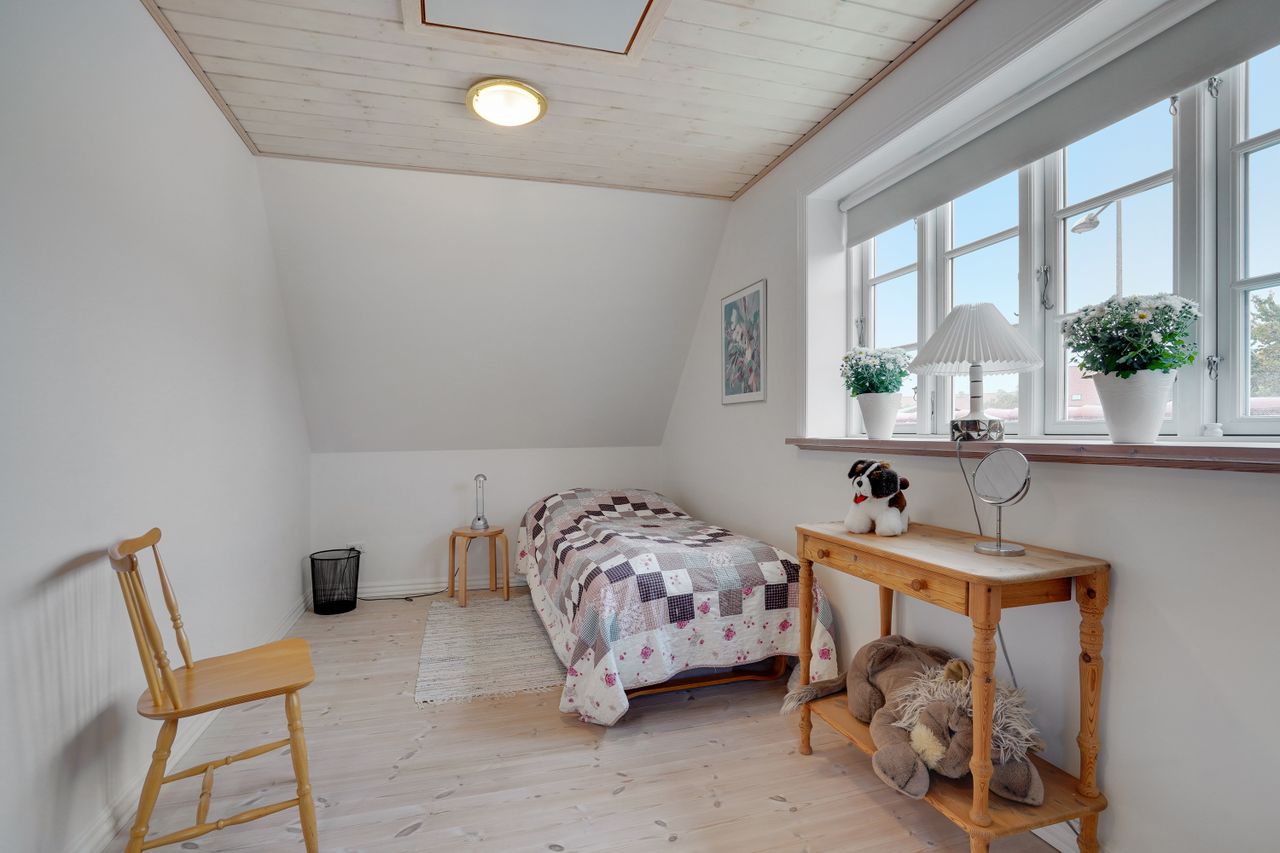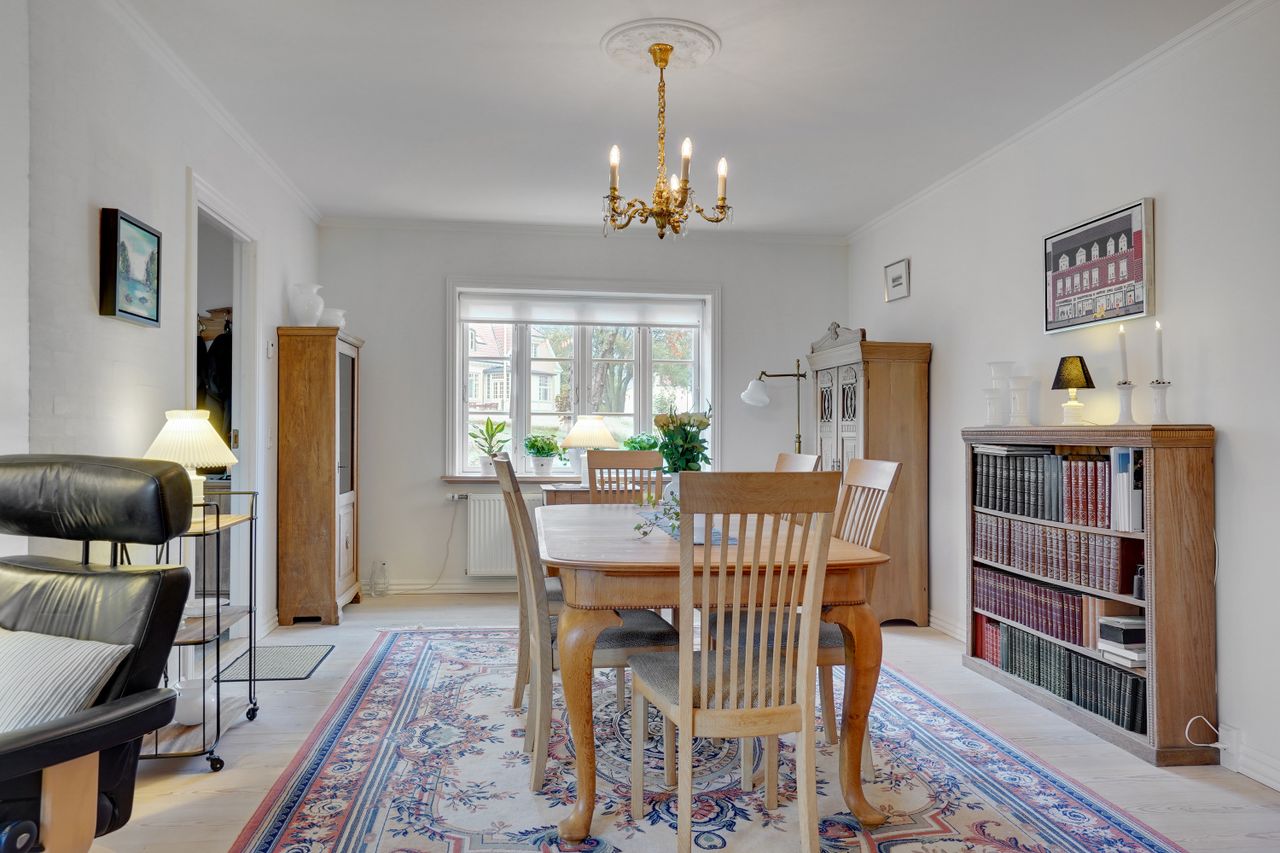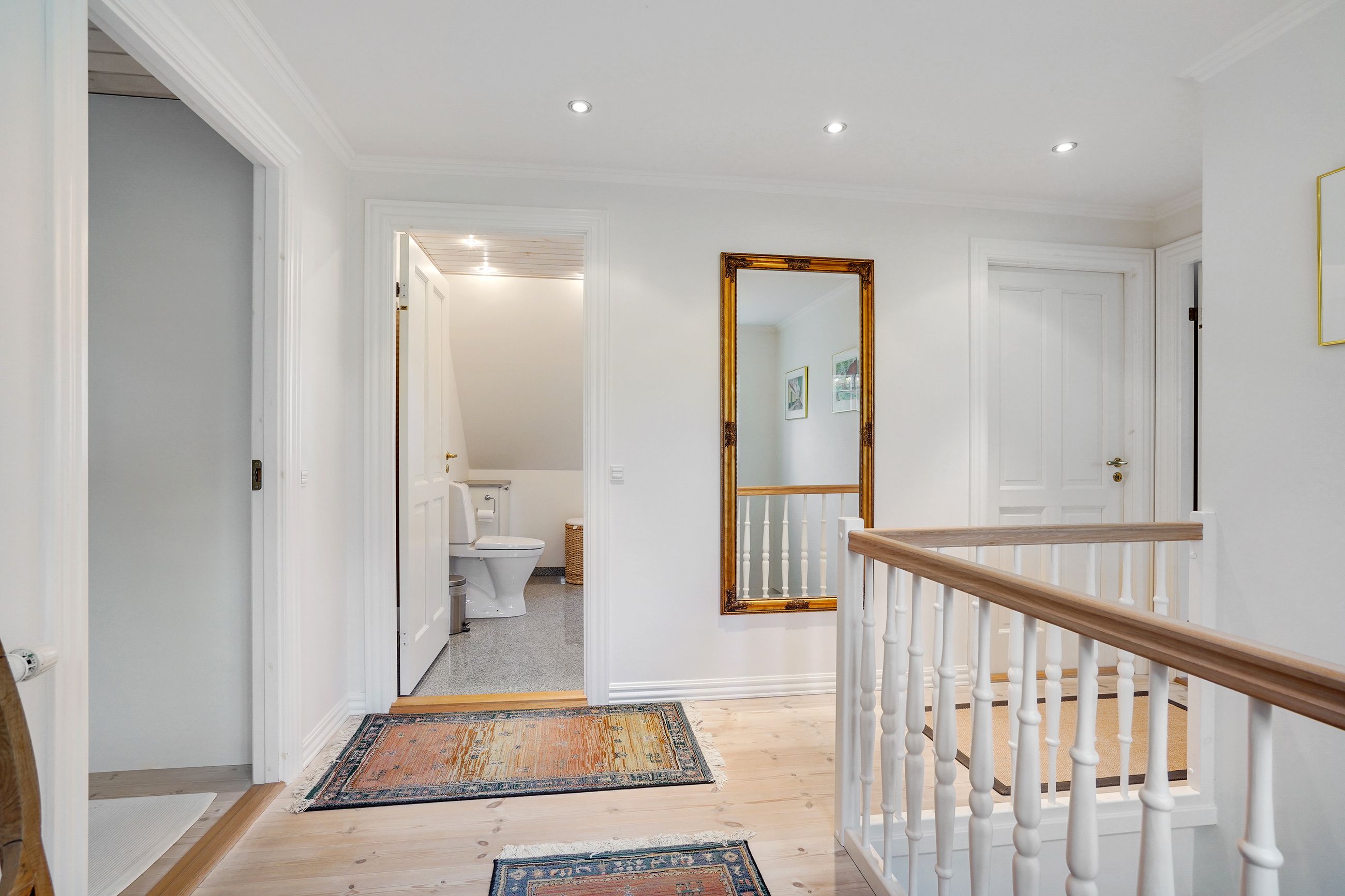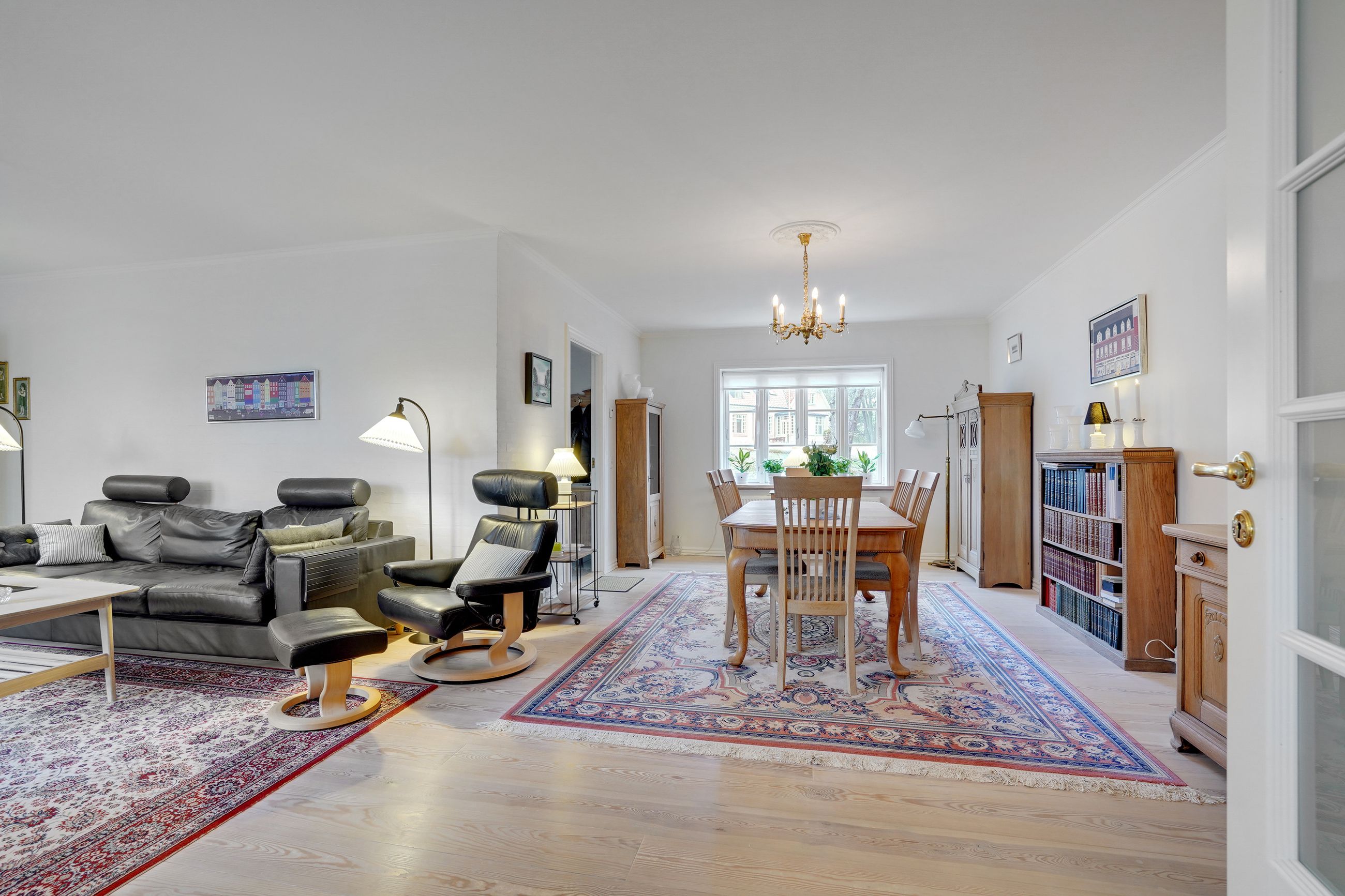 Planløsningen giver dig i stueplan en stor vinkelstue, som via en fransk dør er forbundet med spisekøkkenet i baghuslængen. I forlængelse af køkkenet ligger et bryggers og et spisekammer, og i husets modsatte ende får du et soveværelse og et badeværelse. På første sal er der endnu et badeværelse, to værelser med indbyggede skabe samt et kammer.