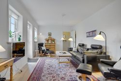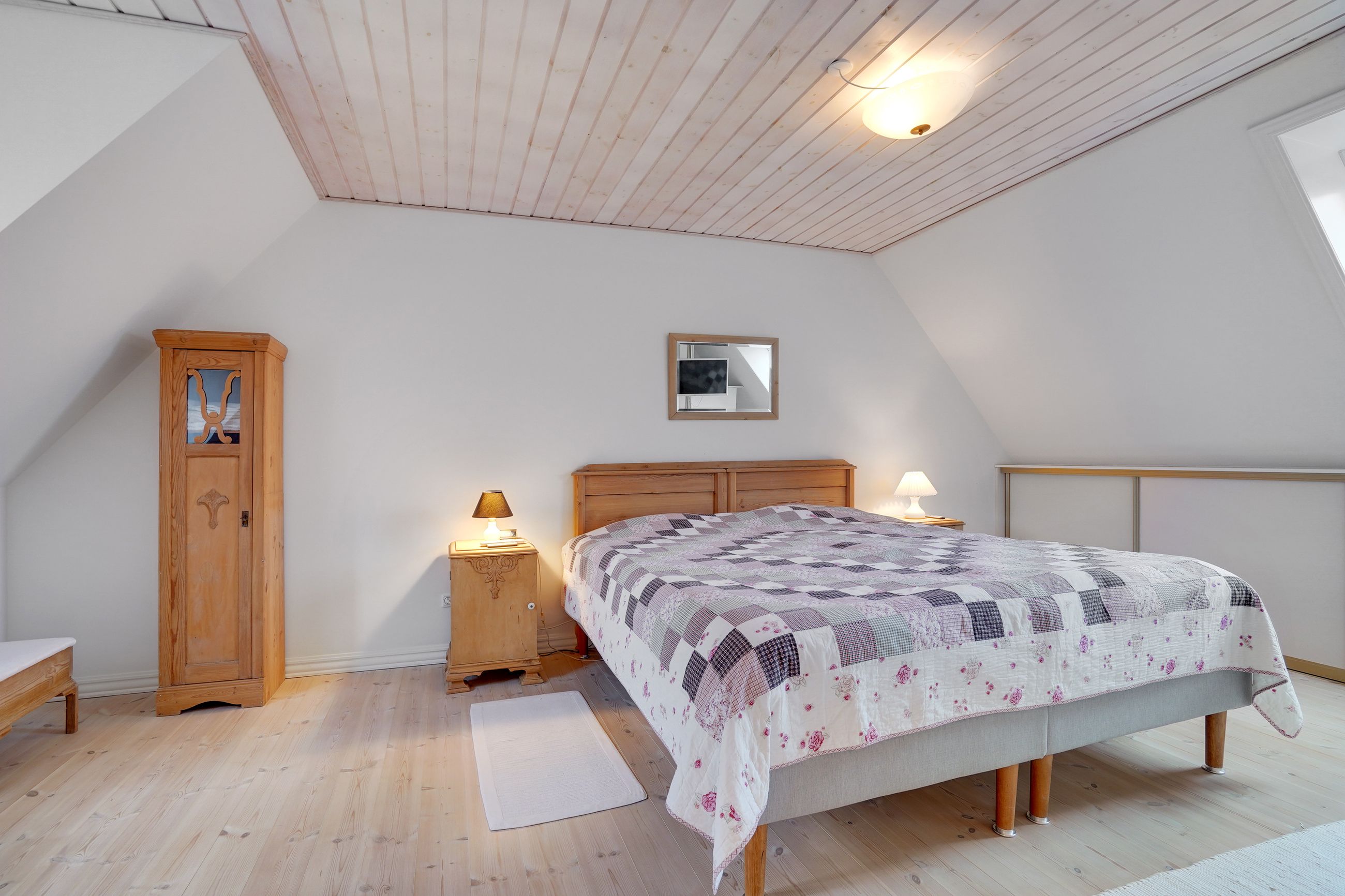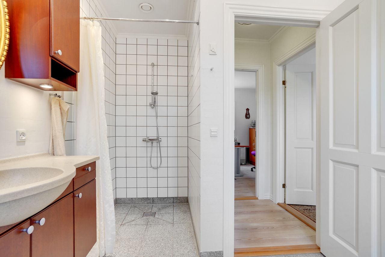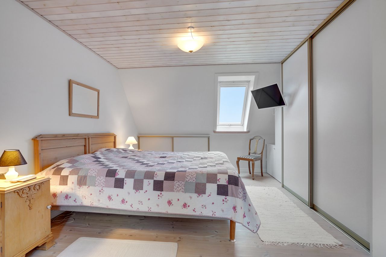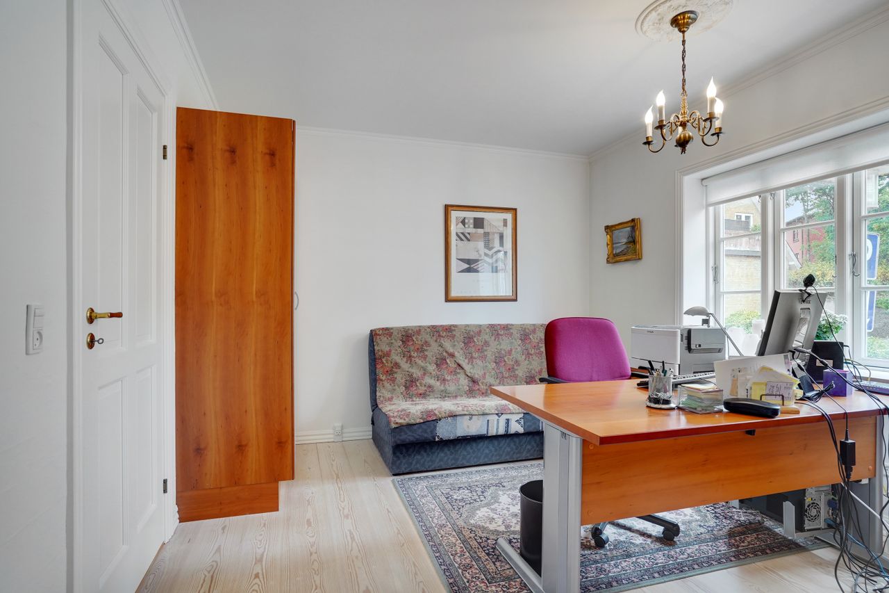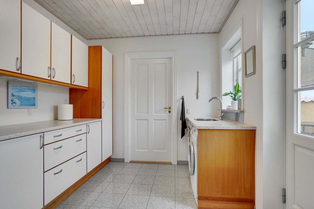 Planløsningen giver dig i stueplan en stor vinkelstue, som via en fransk dør er forbundet med spisekøkkenet i baghuslængen. I forlængelse af køkkenet ligger et bryggers og et spisekammer, og i husets modsatte ende får du et soveværelse og et badeværelse. På første sal er der endnu et badeværelse, to værelser med indbyggede skabe samt et kammer.