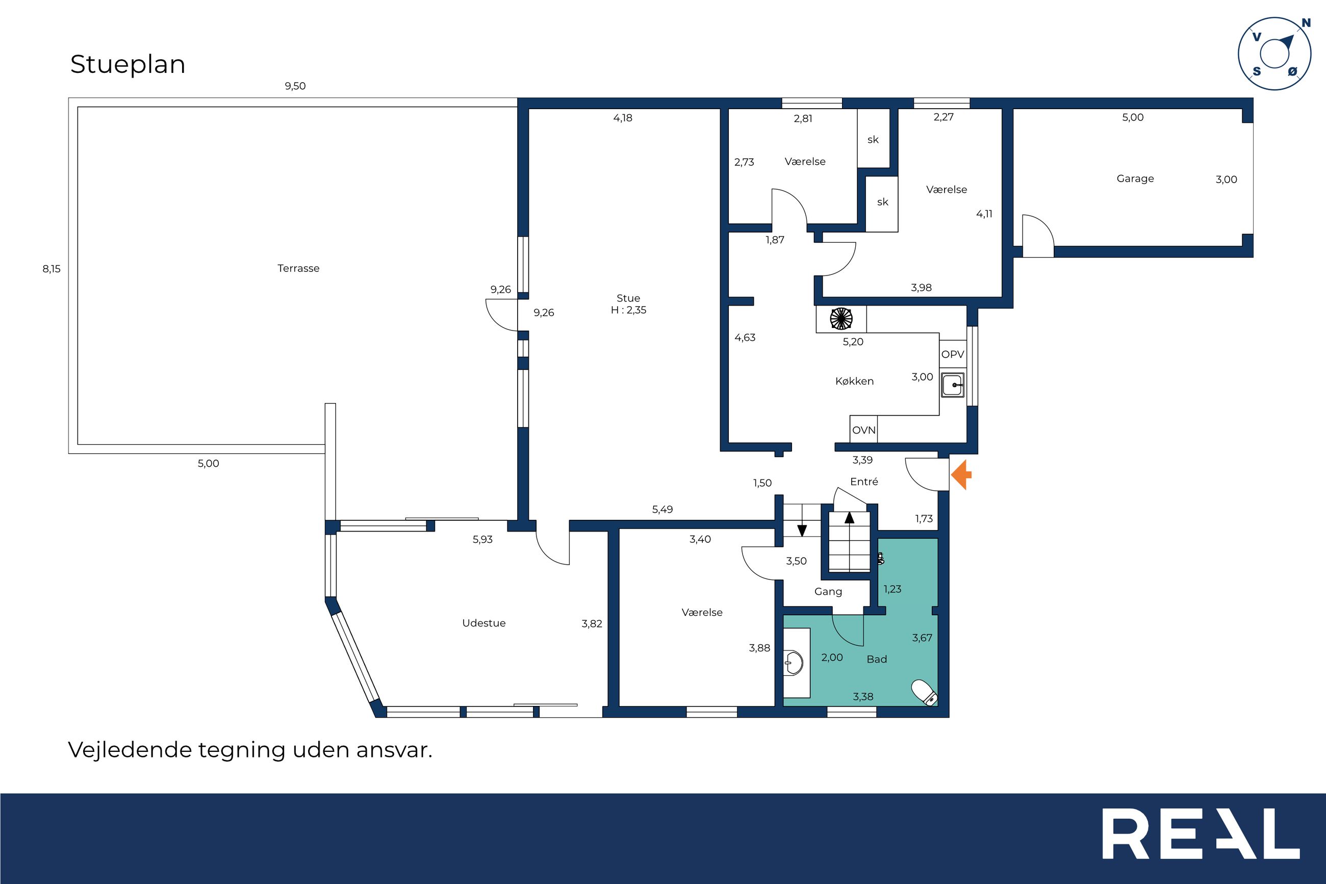 Huset er rummeligt og velindrettet med et samlet boligareal på 134 kvadratmeter. Når man træder ind i