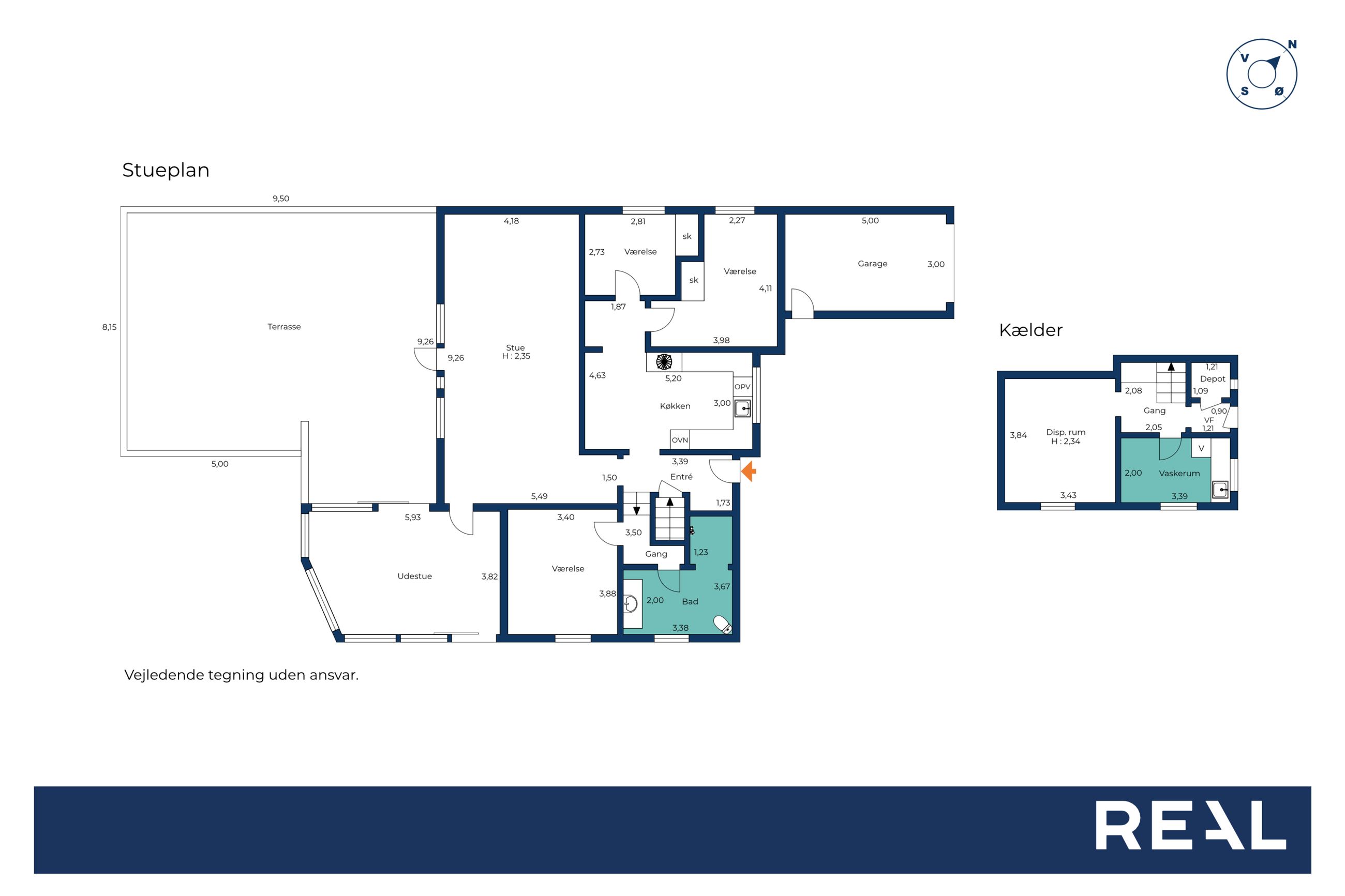 Derudover er der en 36 kvm kælder med bryggers og værksted/disponibelt rum.