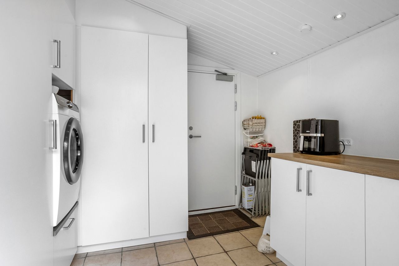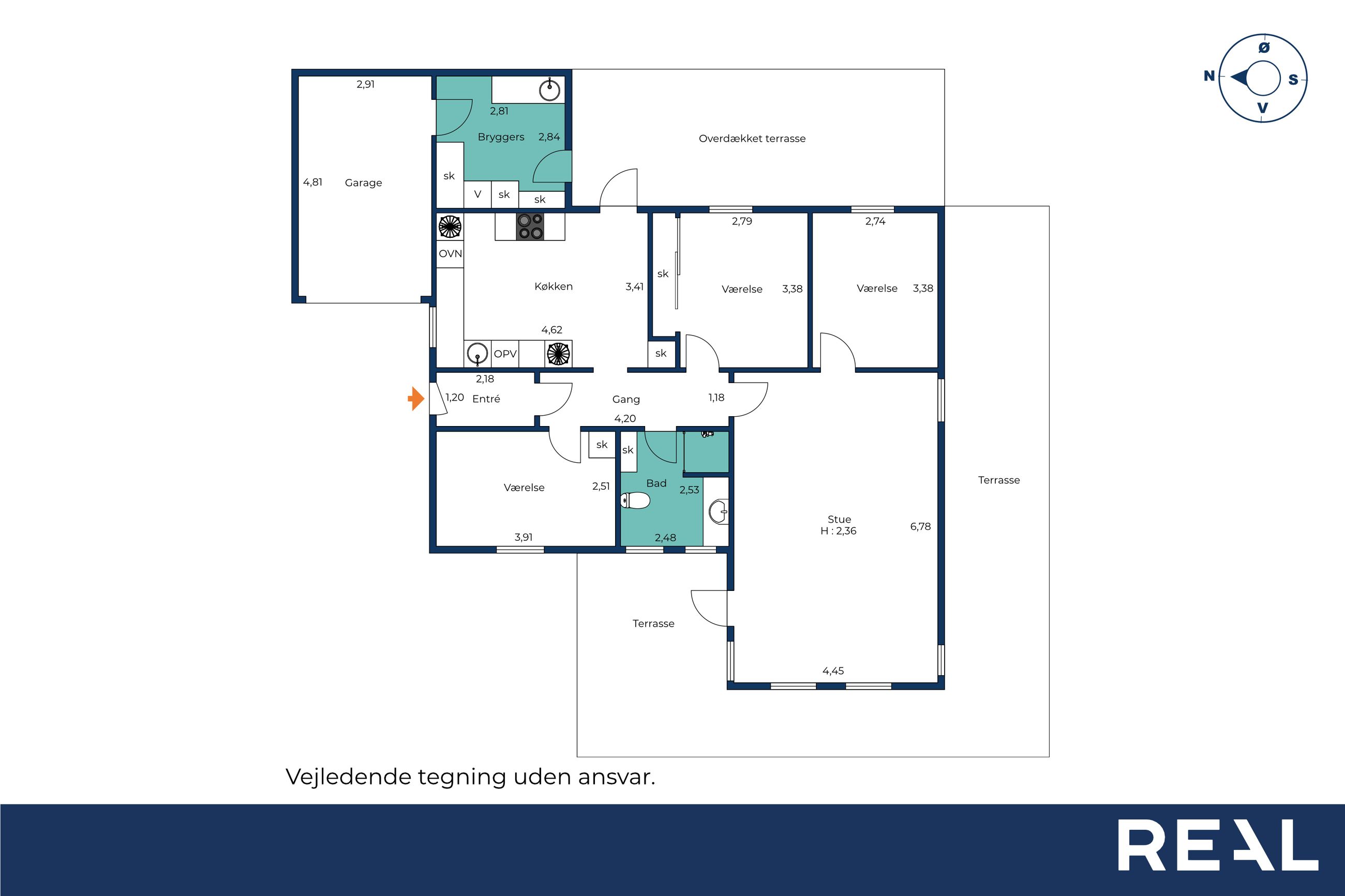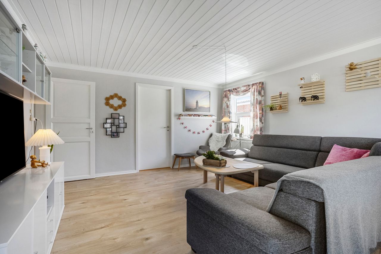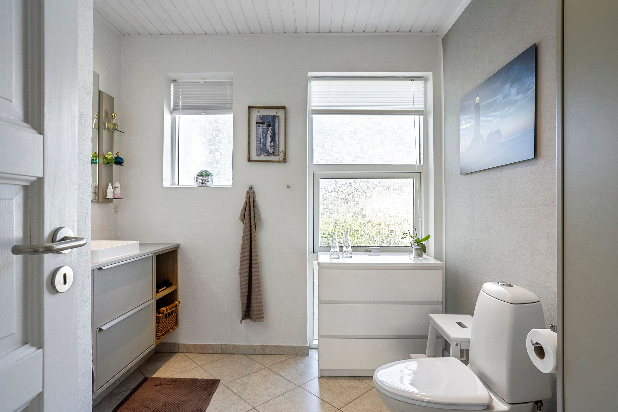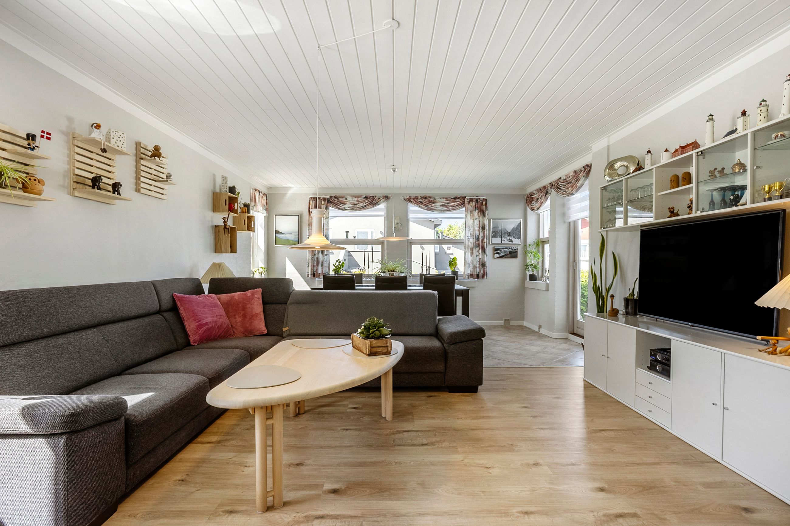 Her får man et funktionelt indrettet køkken med god skabsplads, integreret spiseplads og med udgang til en overdækket terrasse. Videre ind i huset finder man en rummelig og lys stue med store vinduespartier, der giver et fantastisk lysindfald. Huset rummer desuden soveværelse, samt to gode værelser - oplagt til børneværelse, hjemmekontor, gæsteværelse eller hobbyrum. Badeværelset fremstår pænt og velholdt og fik i 2024 nye badeværelsesmøbler. Seperat fra boligen får man et praktisk bryggers med vaskefaciliteter og ekstra opbevaringsmuligheder, samt med udgang til en integreret garage.
