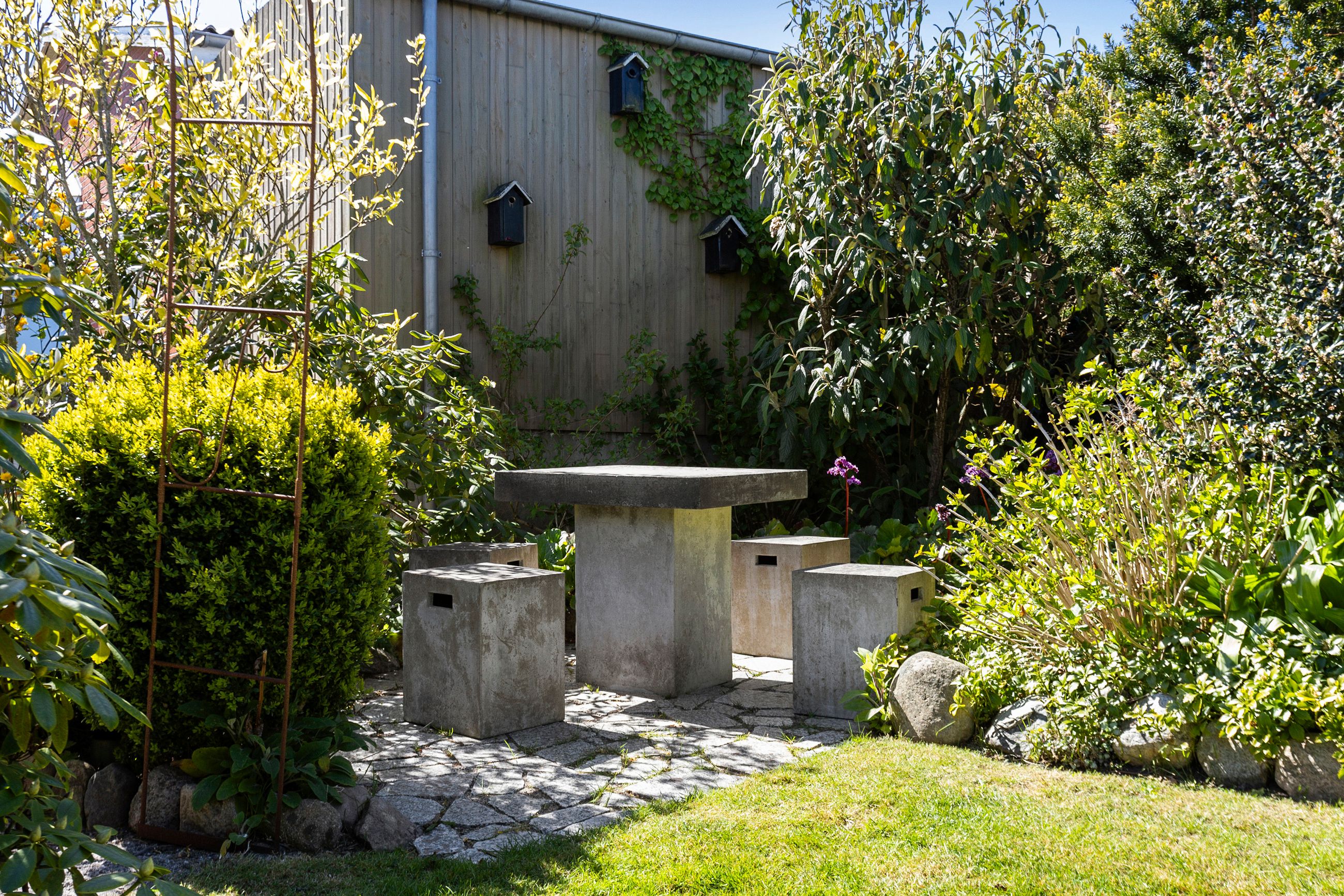 Udenfor finder du en charmerende og solrig have, perfekt til sommerens grillhygge, leg og afslapning. I bunden af haven er placeret et godt og isoleret udhus.