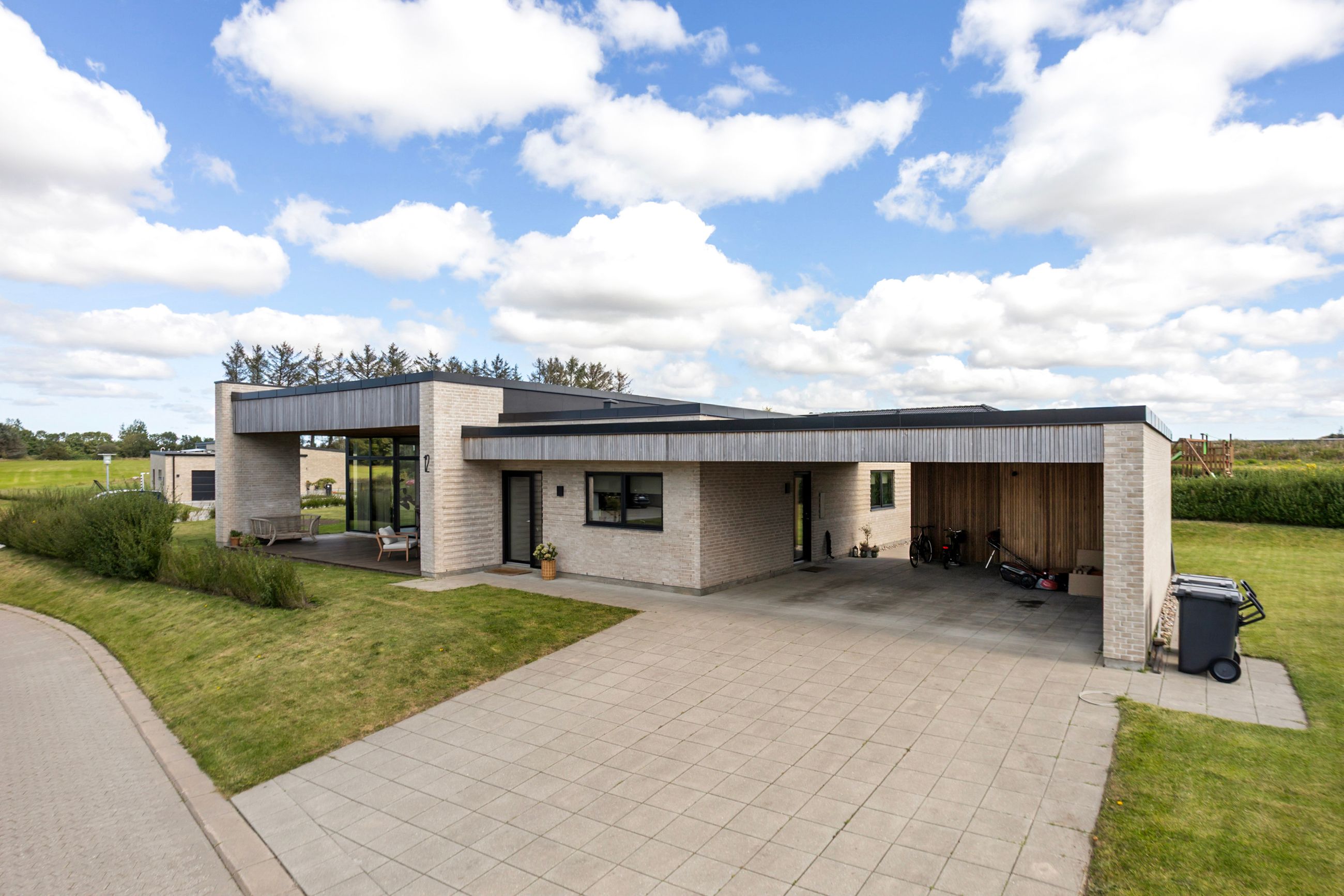 Til boligen hører desuden et funktionelt bryggers med vaskefaciliteter og rigelig plads til opbevaring. Herfra er der direkte adgang til carporten på 50 m2, der er smukt beklædt med cedertræ, og som samtidig rummer et 10 m2 stort udhus.
