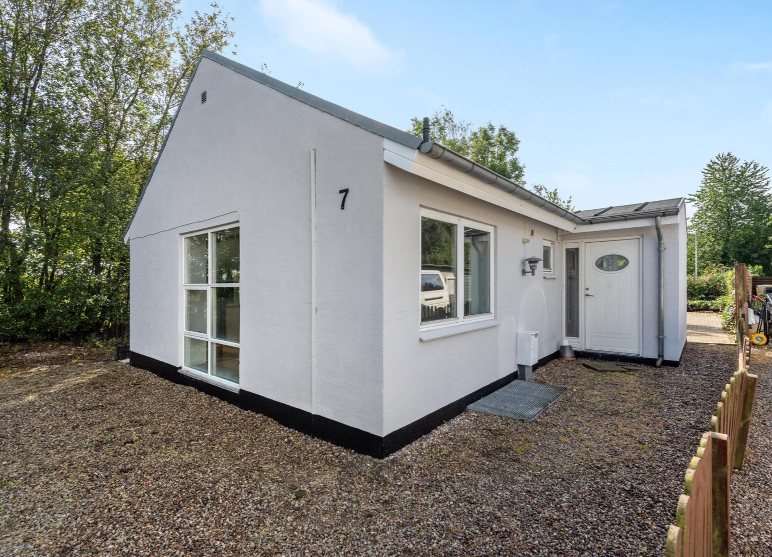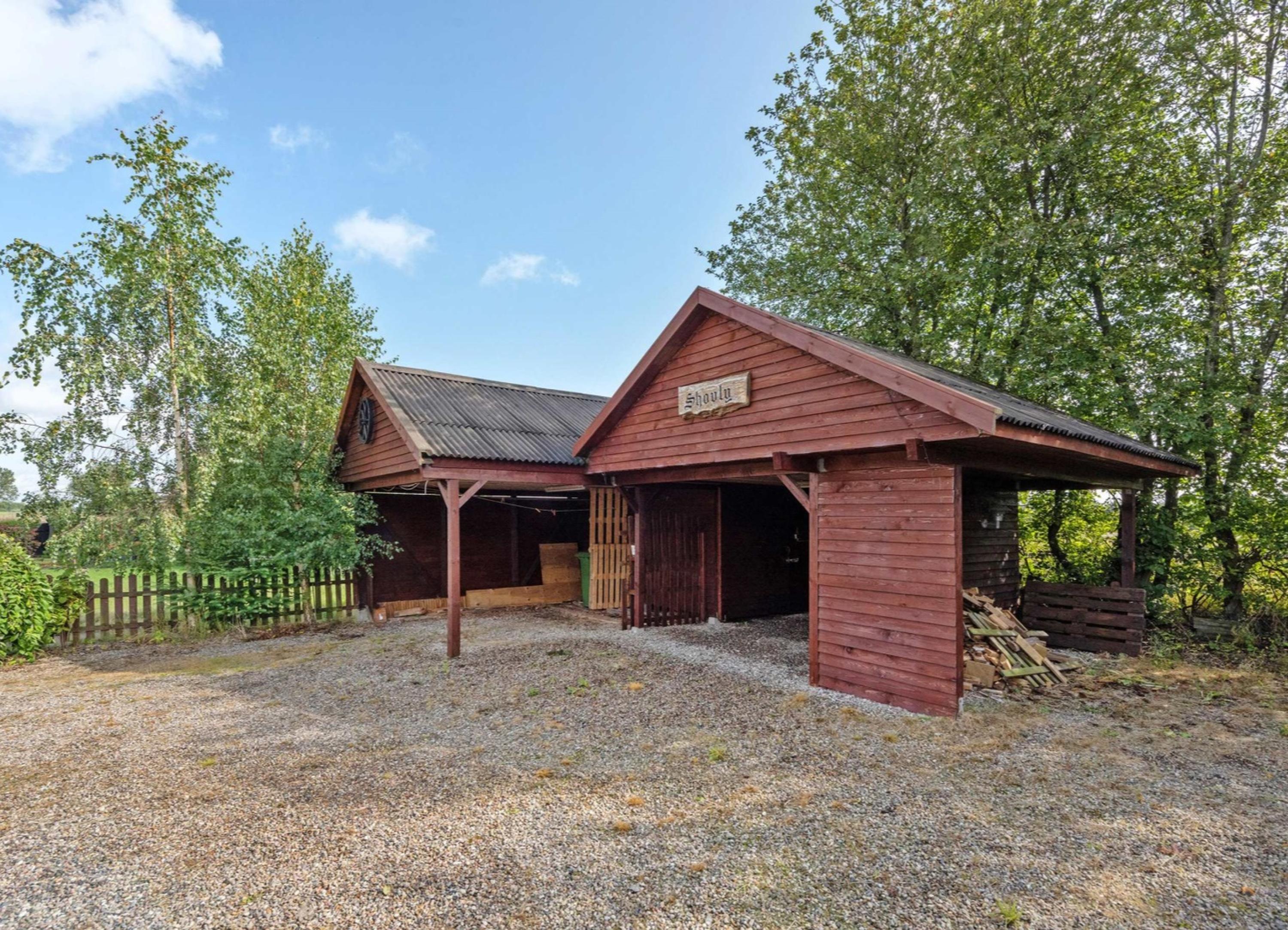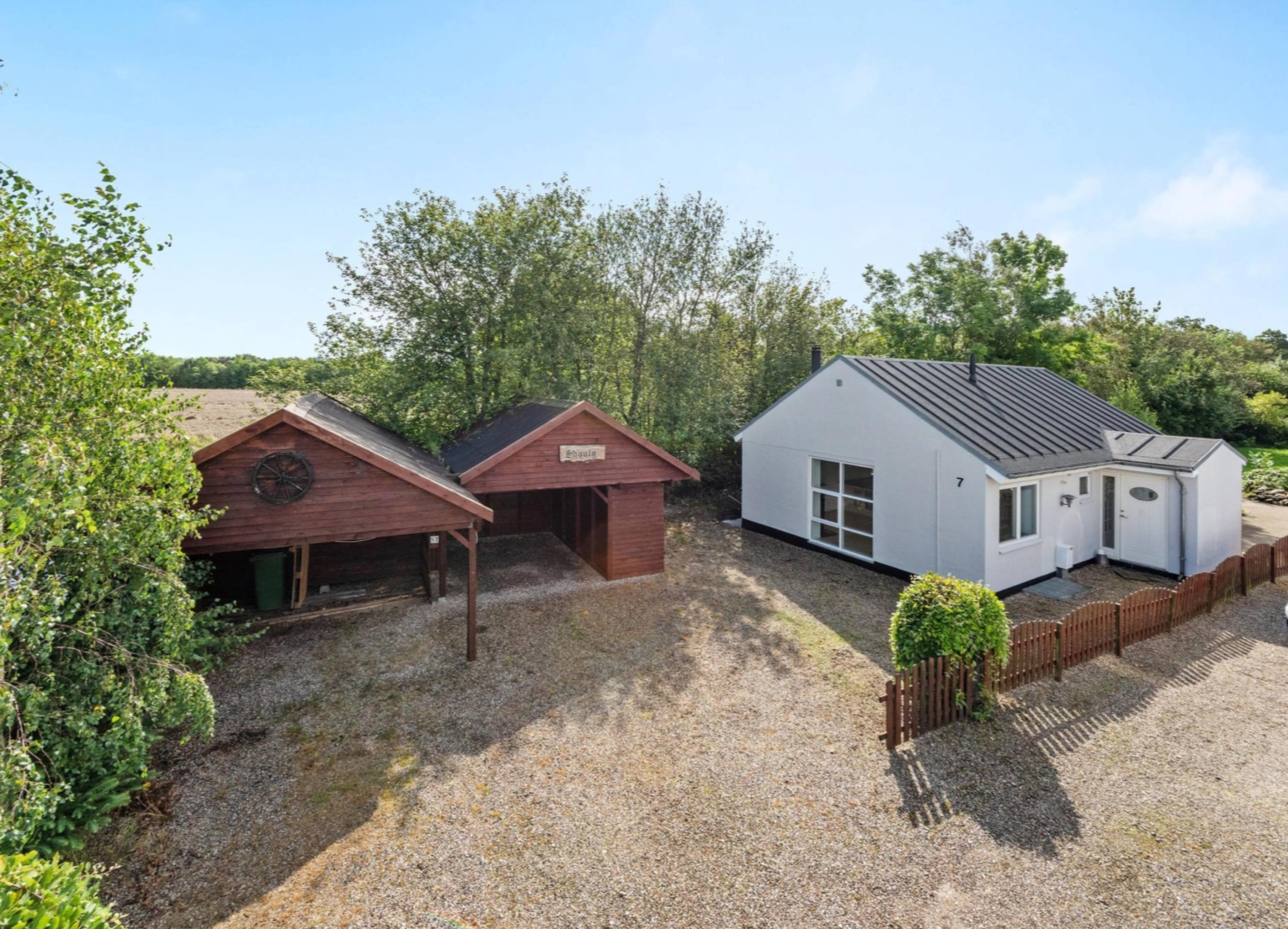 Her er opført dobbel carport på 50 m2 heraf 11 m2 udhus. Dejlig lukket sydvendt have med frugttræer og guldfiskedam.