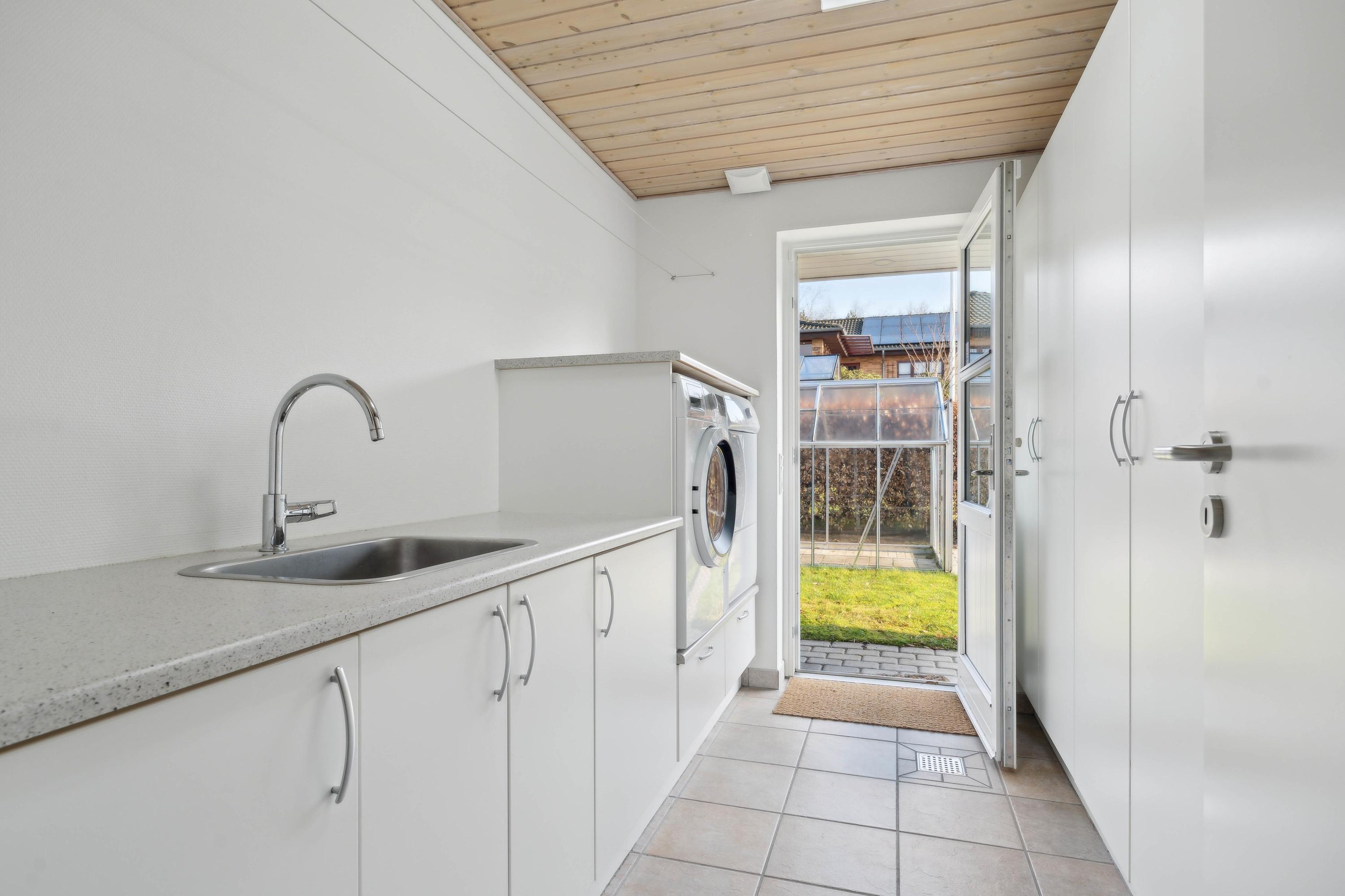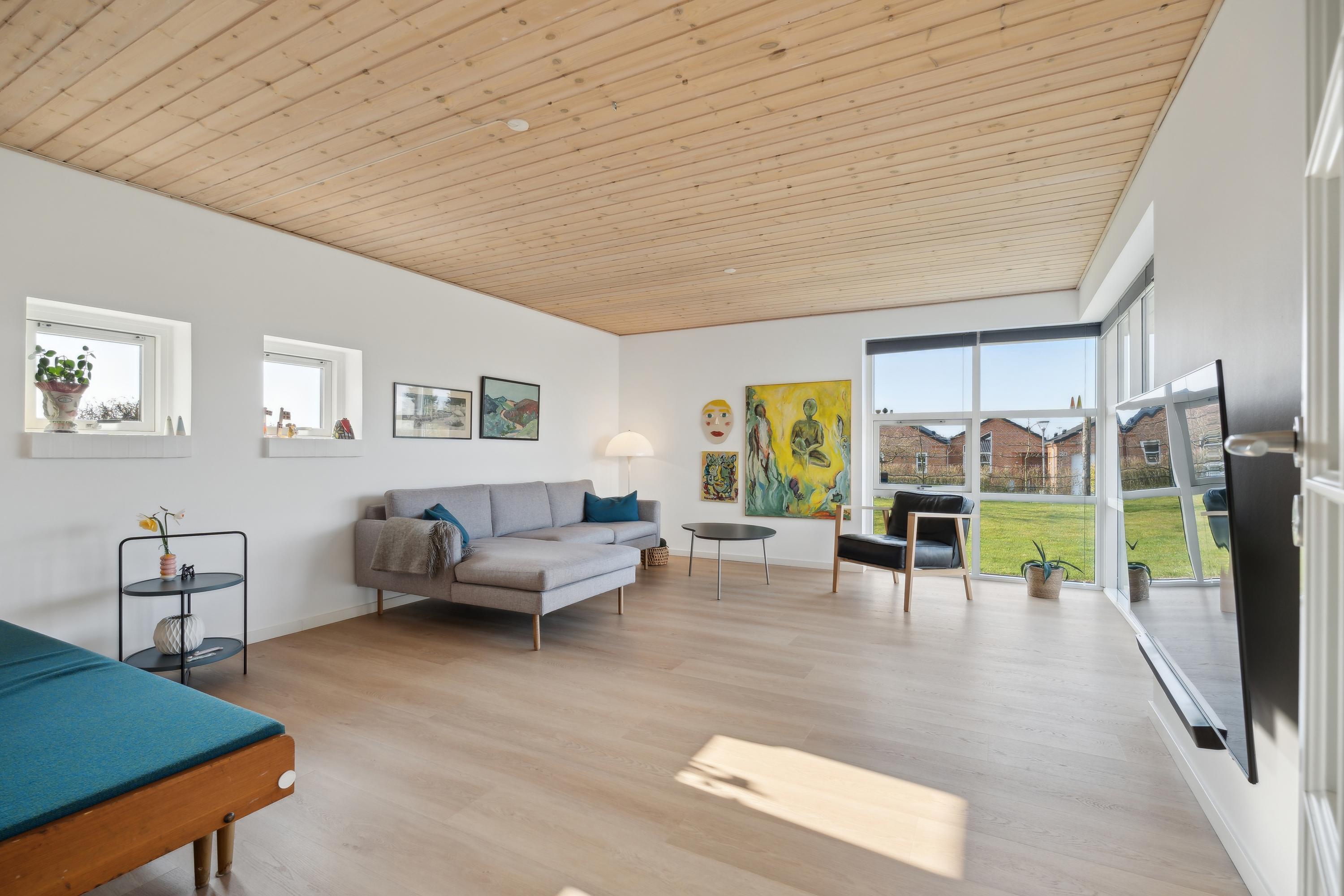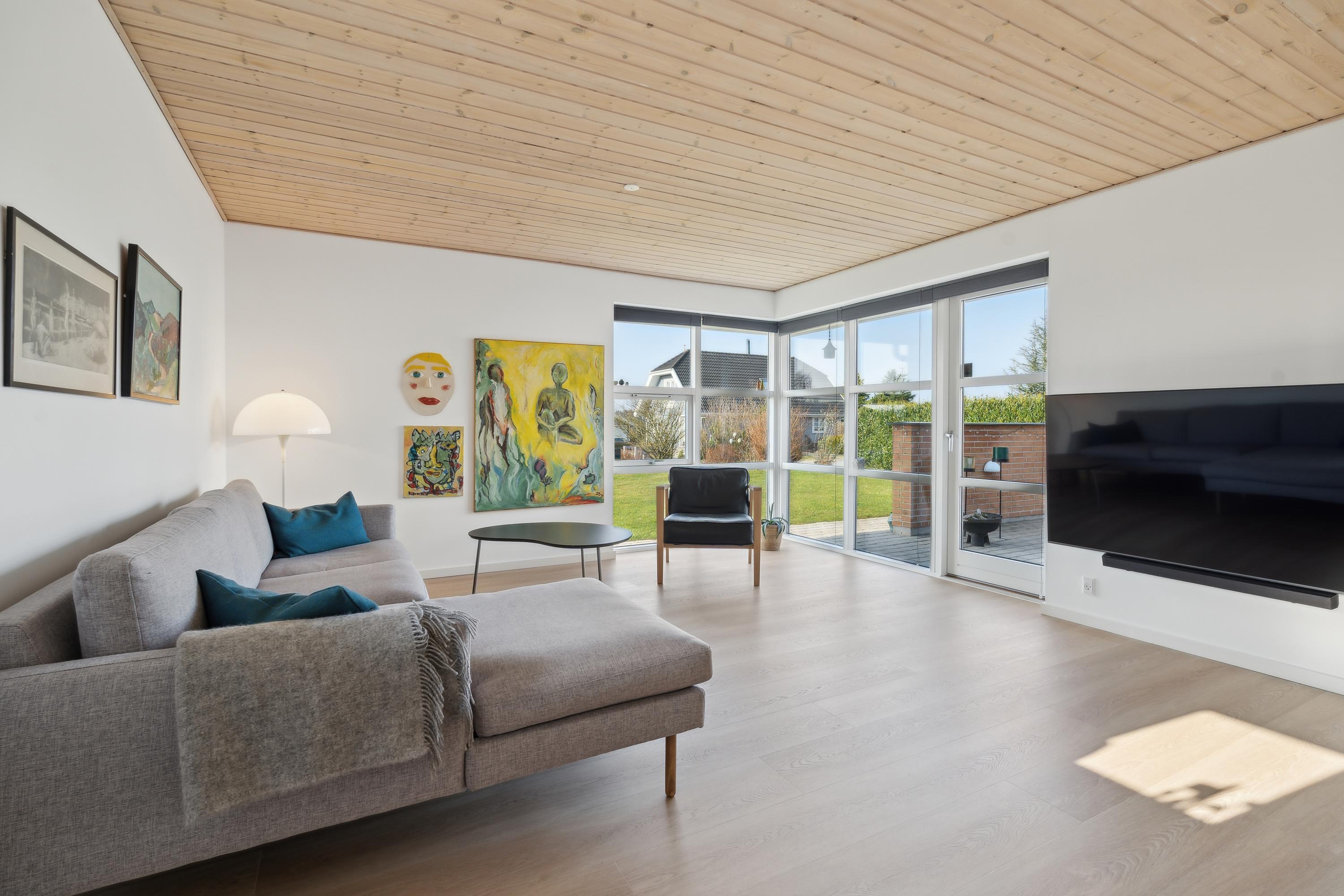 Villaen byder på 159 m2 velindrettet bolig, der er gennemført med tidløse materialer og moderne