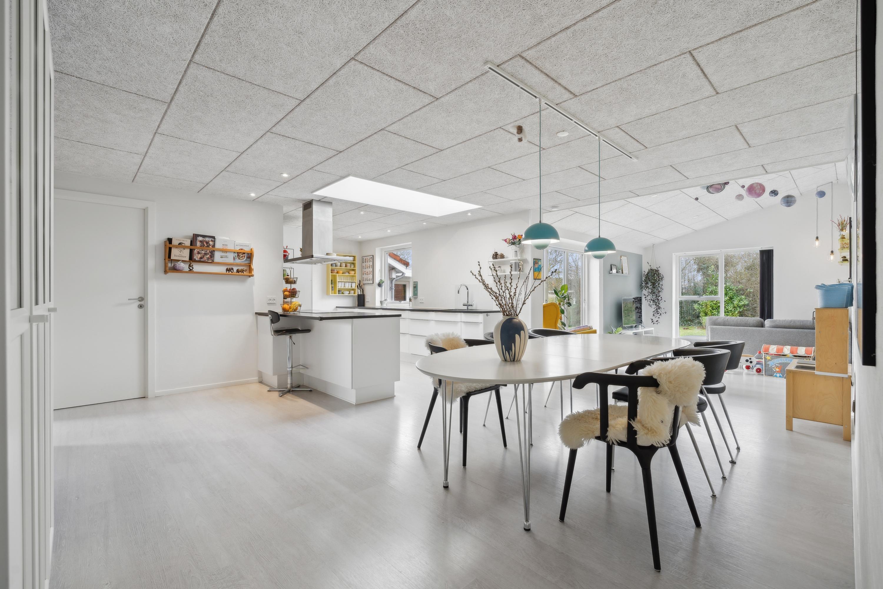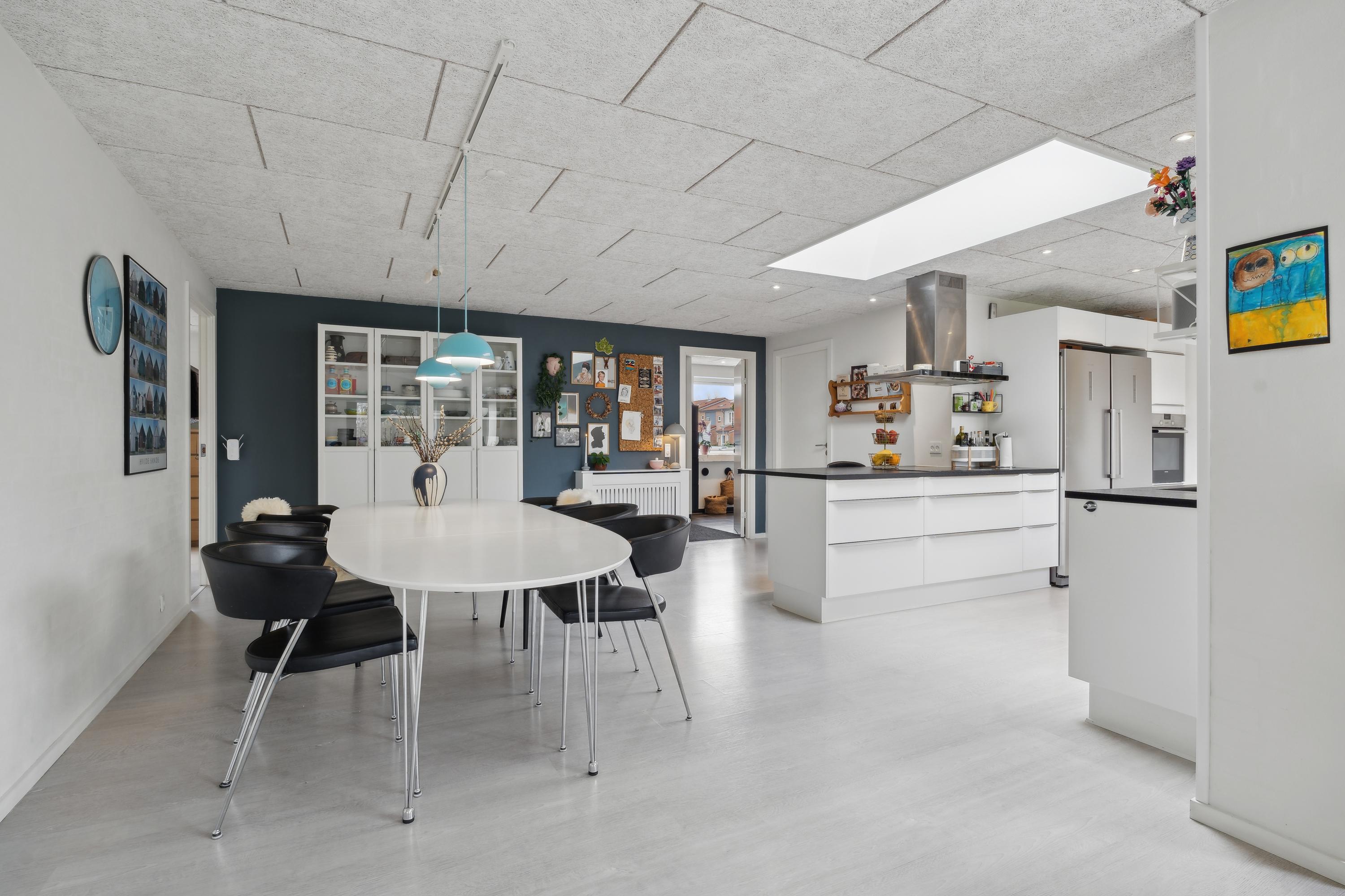 På Borgåvej 2 i Viborg finder du et lyst og velindrettet enderækkehus, der er perfekt til familien, der ønsker både plads og en rolig beliggenhed. Boligen byder på 137 m2 fordelt på fem værelser, hvor den åbne planløsning skaber en indbydende atmosfære med masser af naturligt lys. Køkken-alrummet