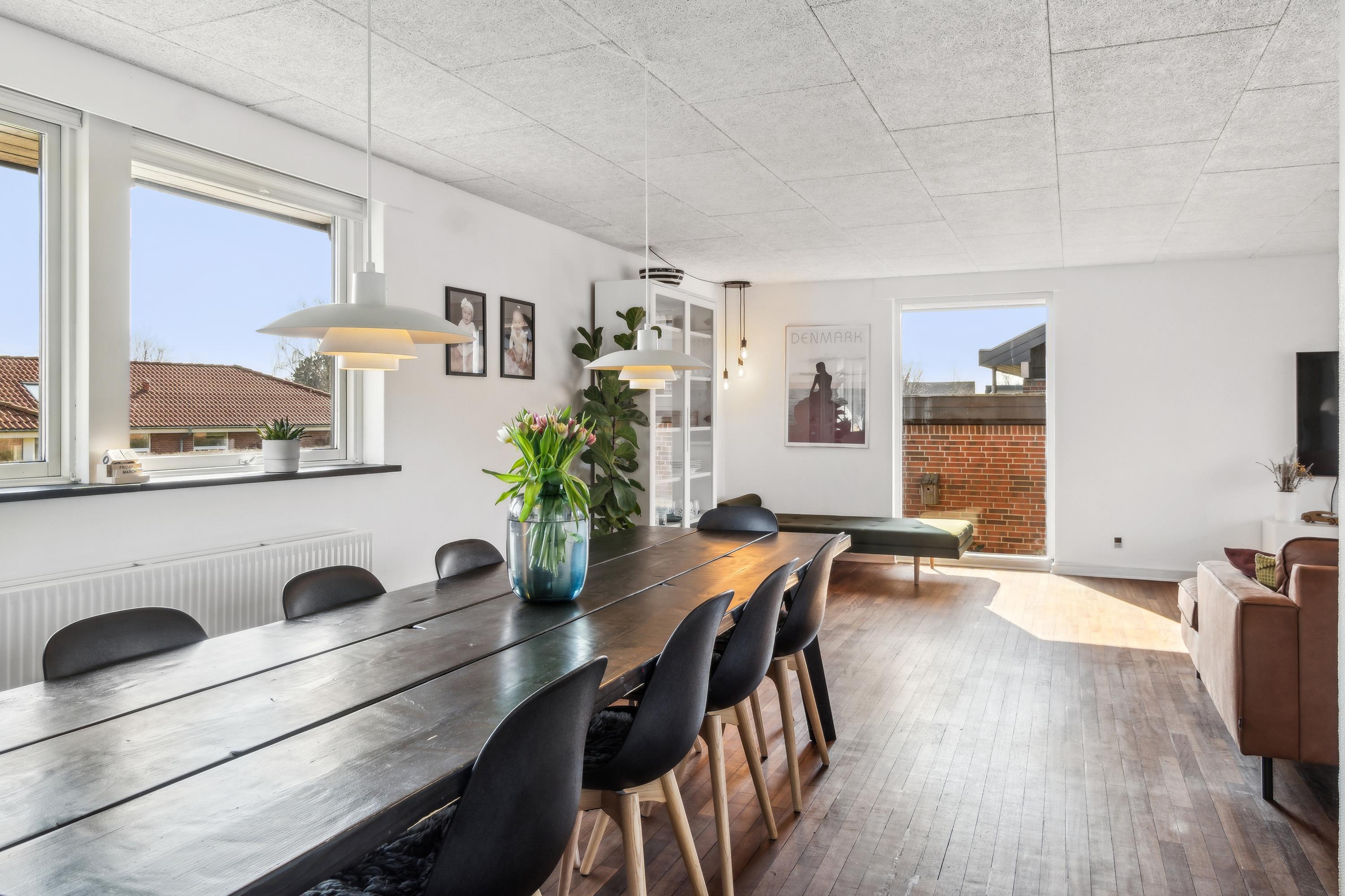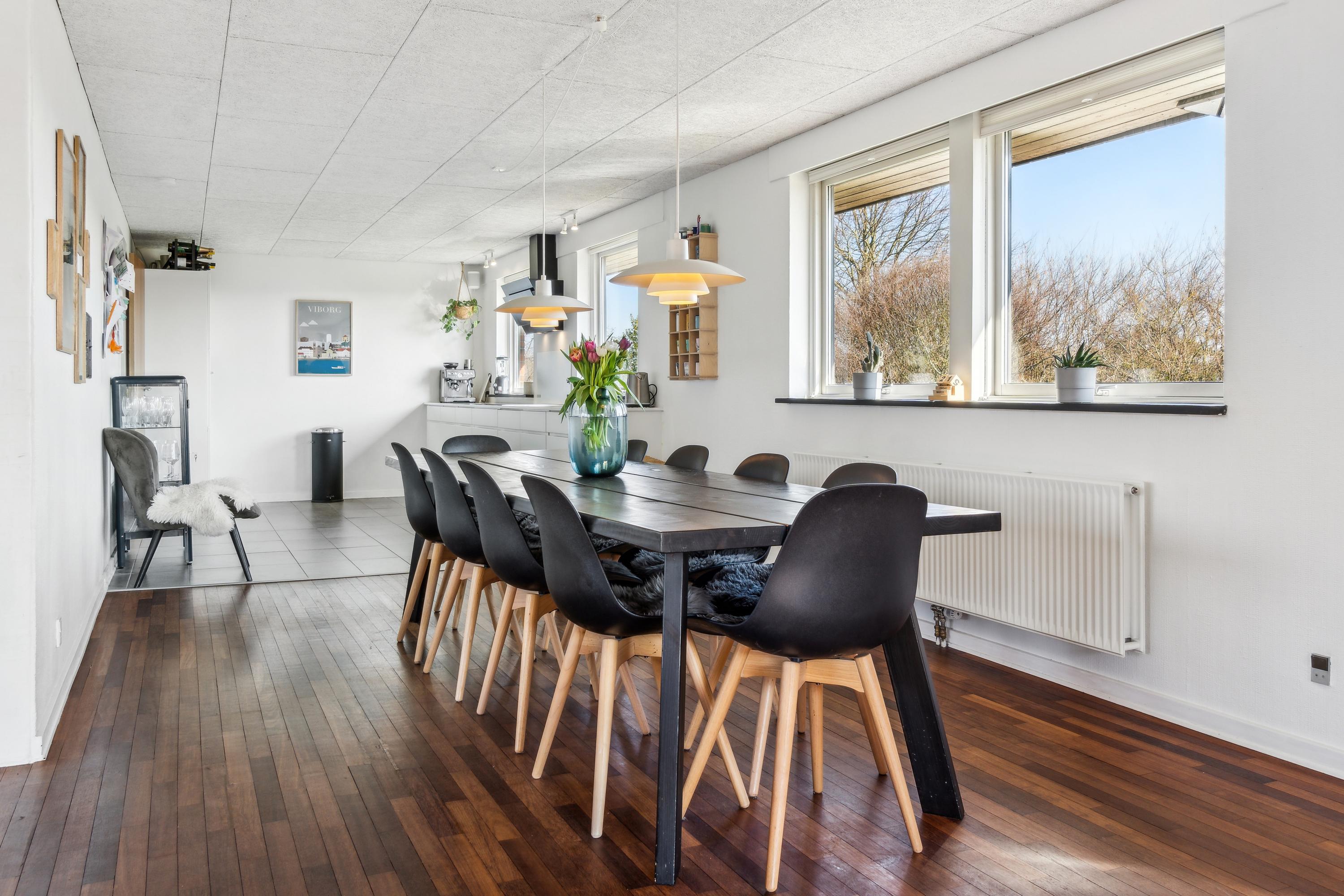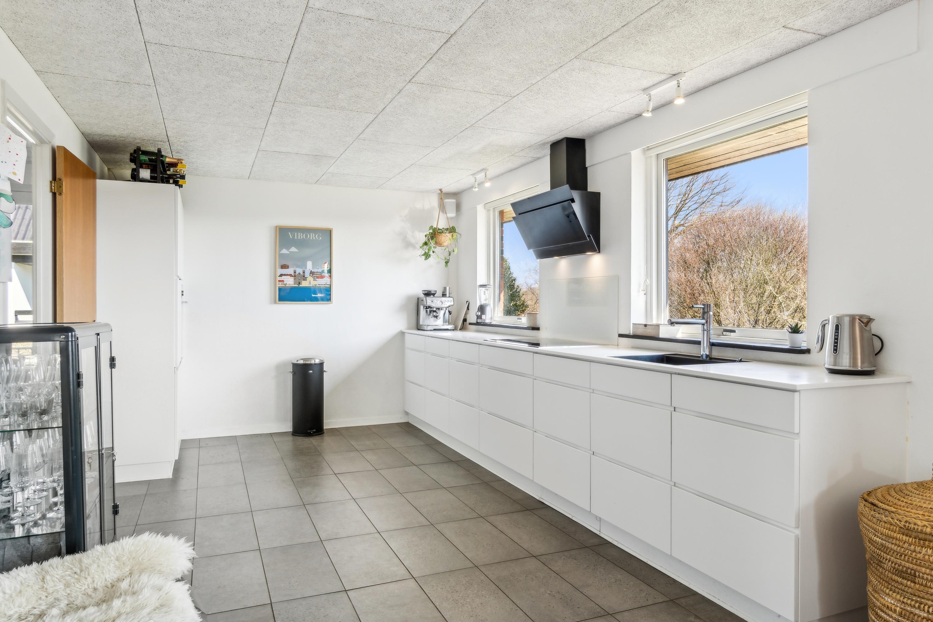 Stor rummelig entre. Et stort og lyst køkken/alrum, perfekt til madlavning og hyggelige familiemiddage. Køkkenet er i åben forbindelse med den store rummelige