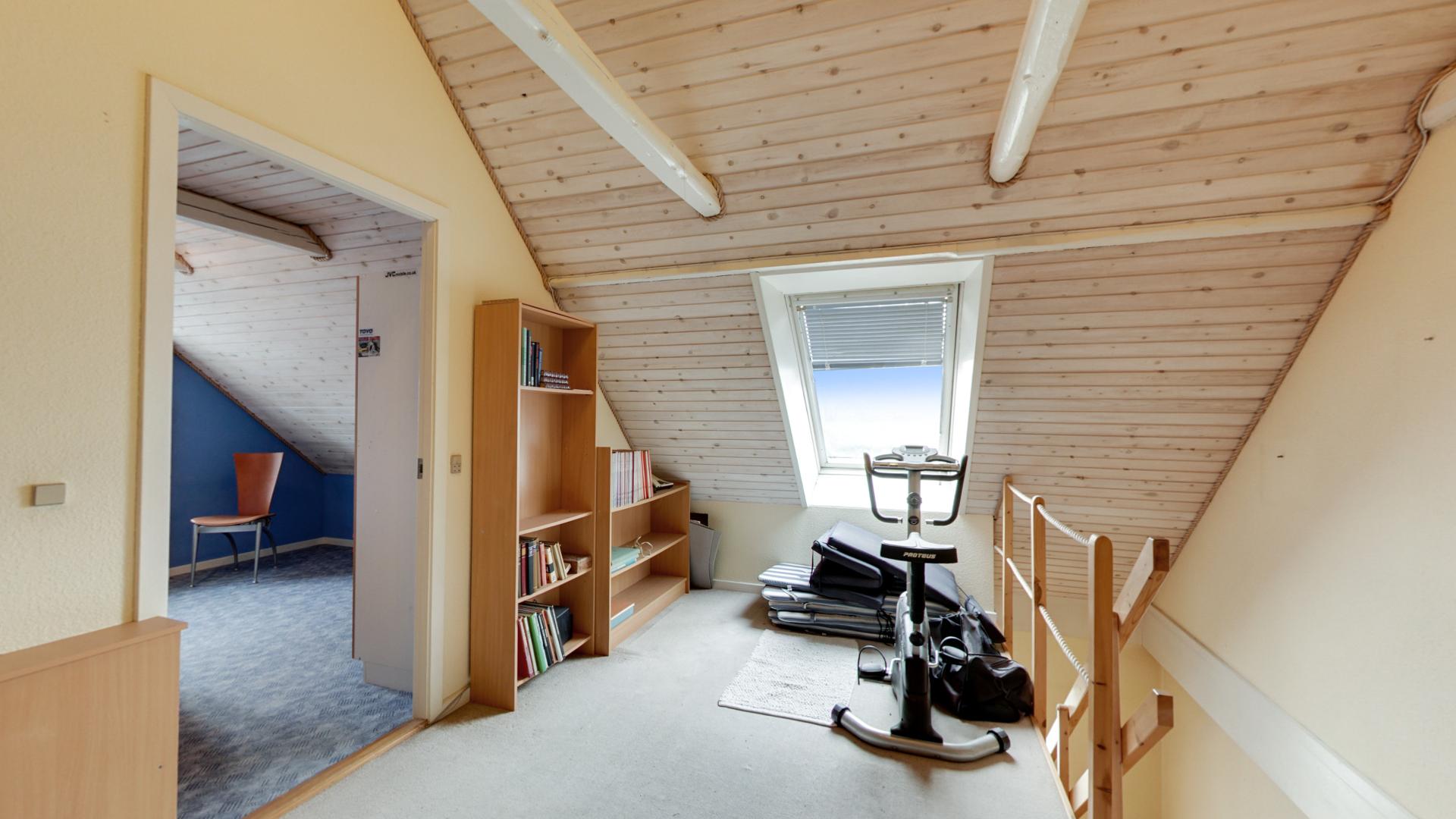 1. sal er indrettet med rummelig repos/stue med loft til kip med synlige bjælker, 3 gode værelser alle med synlige bjælker samt toilet.