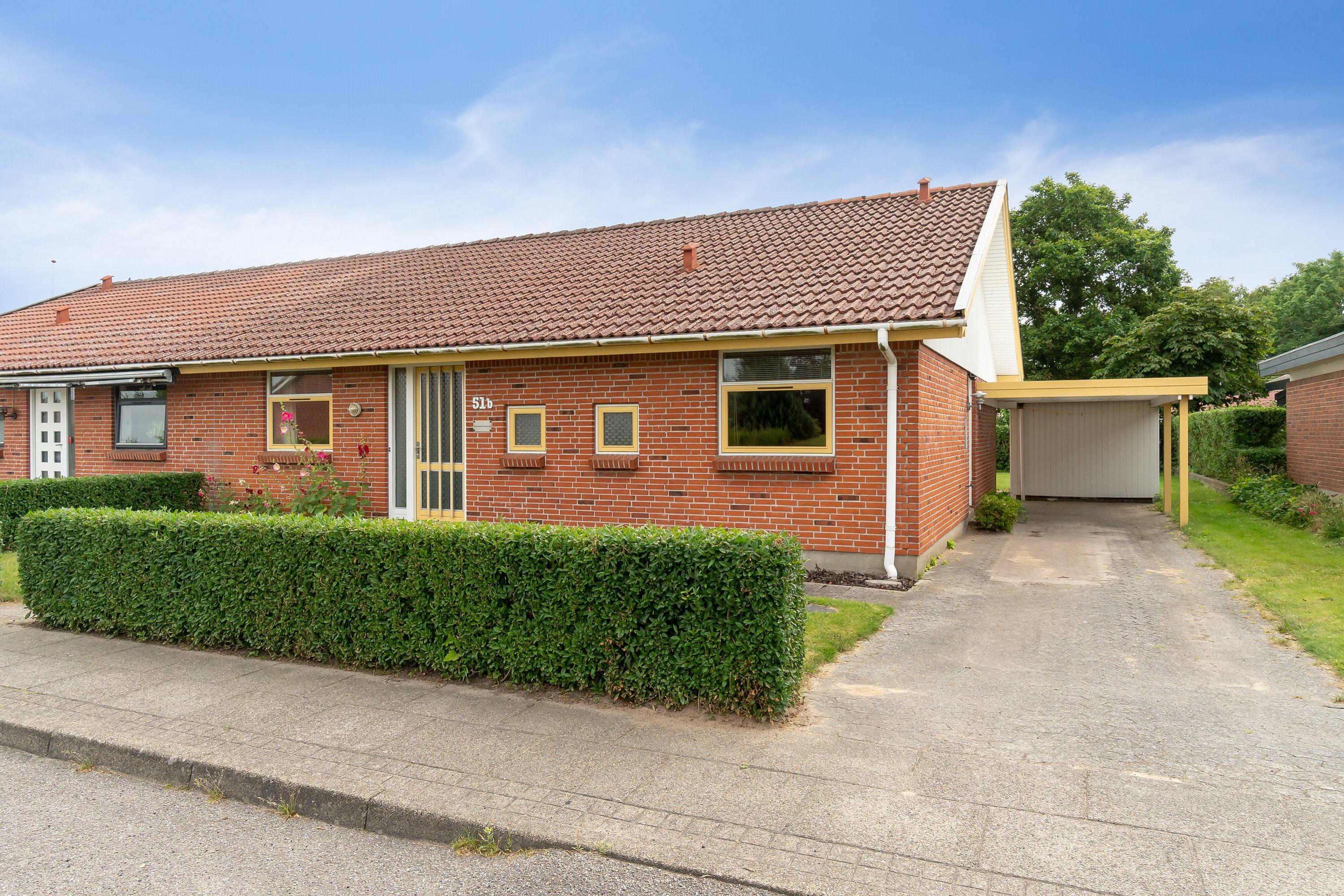 Velbeliggende på børnevenlig villavej i attraktivt område i Møldrup udbydes nu et godt indrettet rækkehus med carport. Kvarteret byder bl.a. på gode stisystemer, lege-og boldplads samt spejderhus.