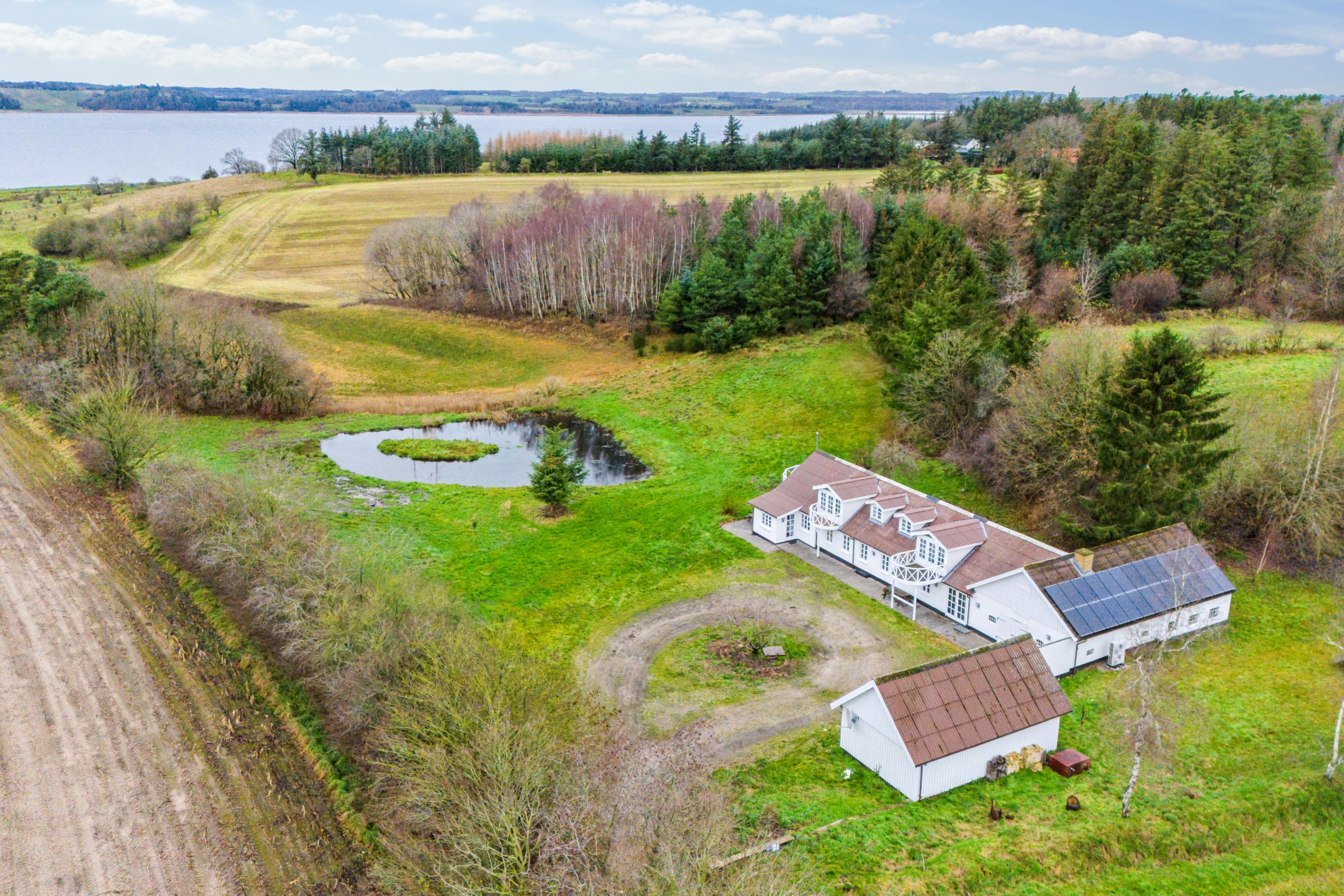 Beliggende i de mest idylliske rammer du kan forestille dig, finder du landejendommen her. Ejendommen er naturskønt placeret med skov, eng og mark som omkranser en, samtidig med direkte udsigt over Hjarbæk Fjord. Her finder du en fredfyldt ro, med fuglekvidr og blide vindpust.