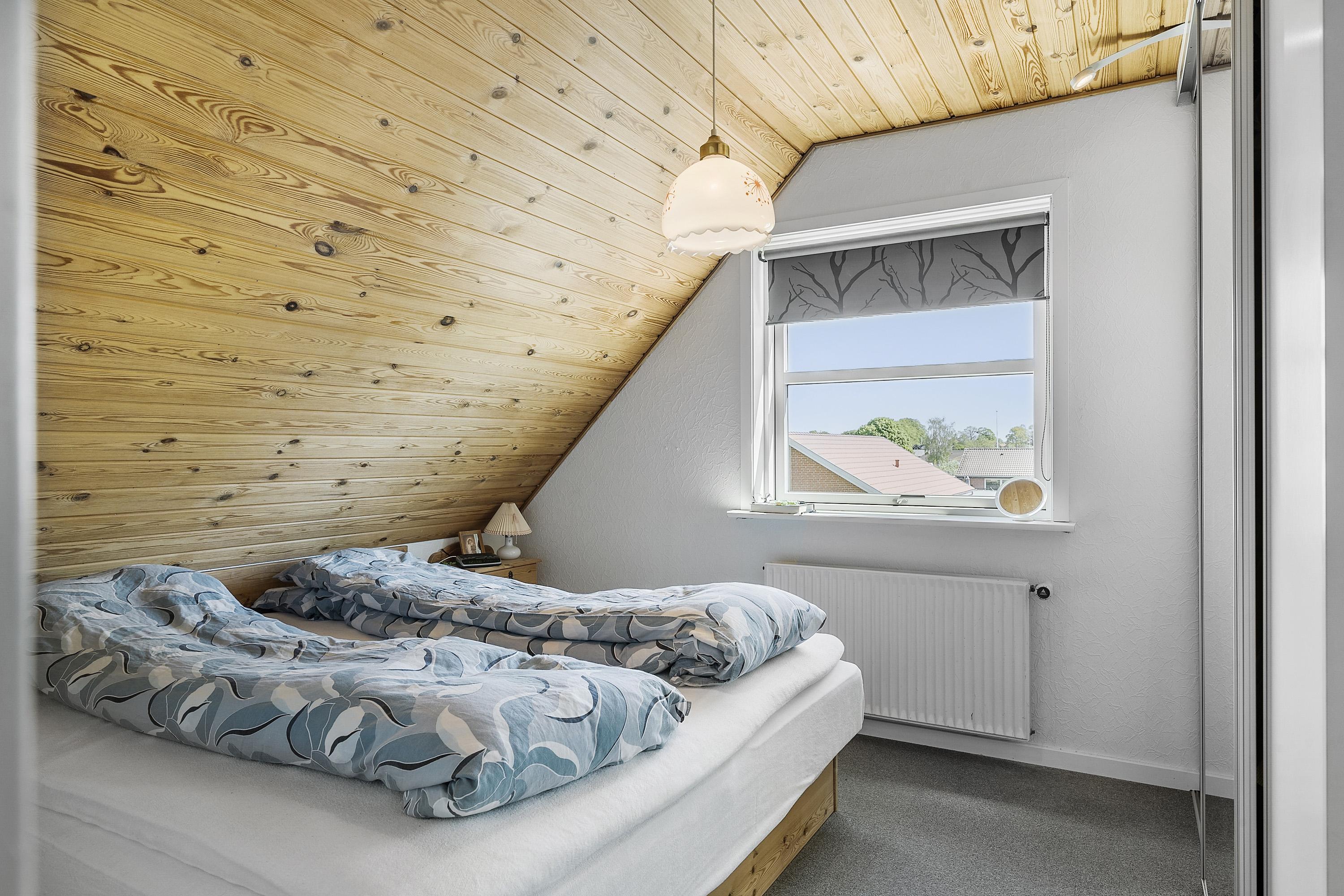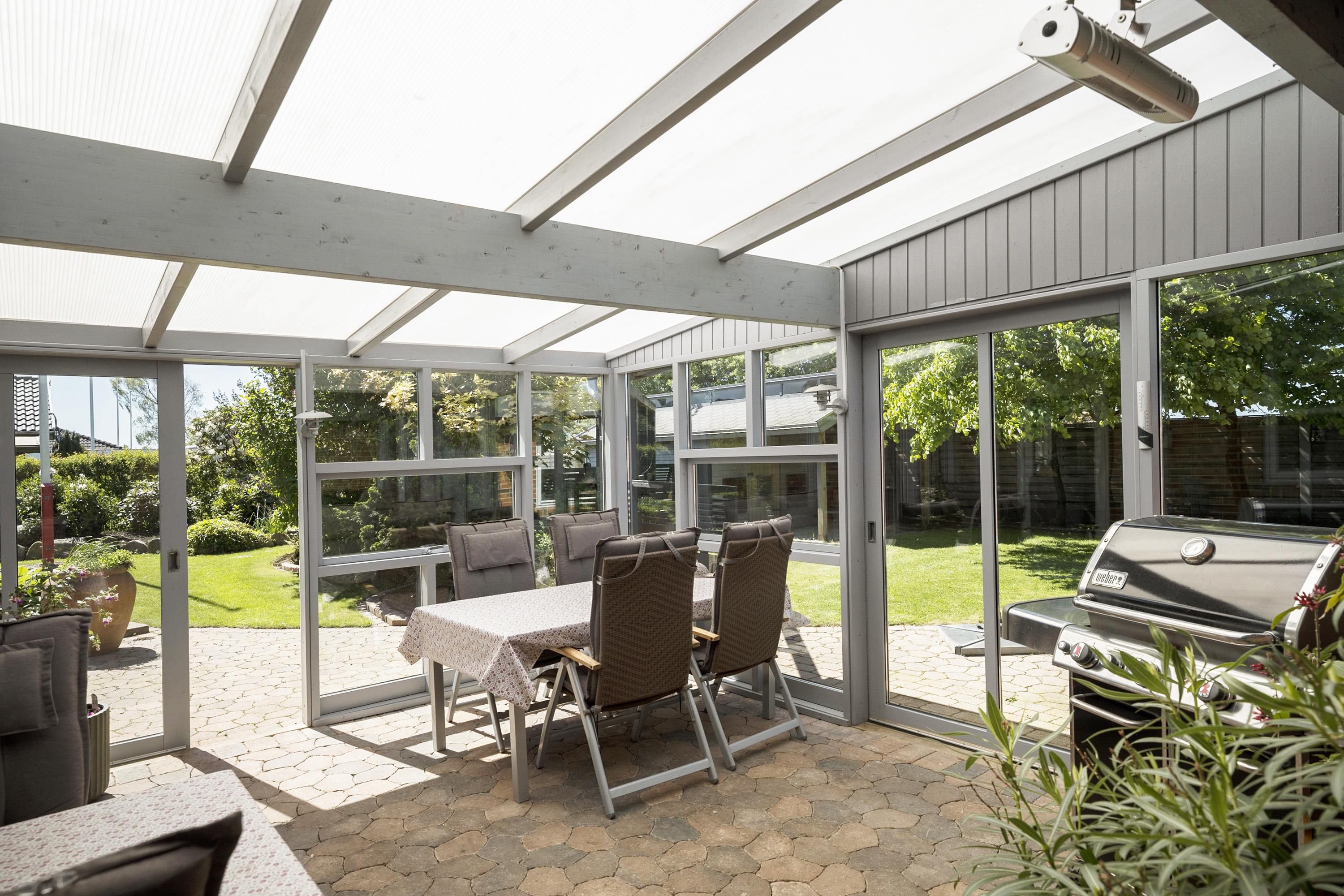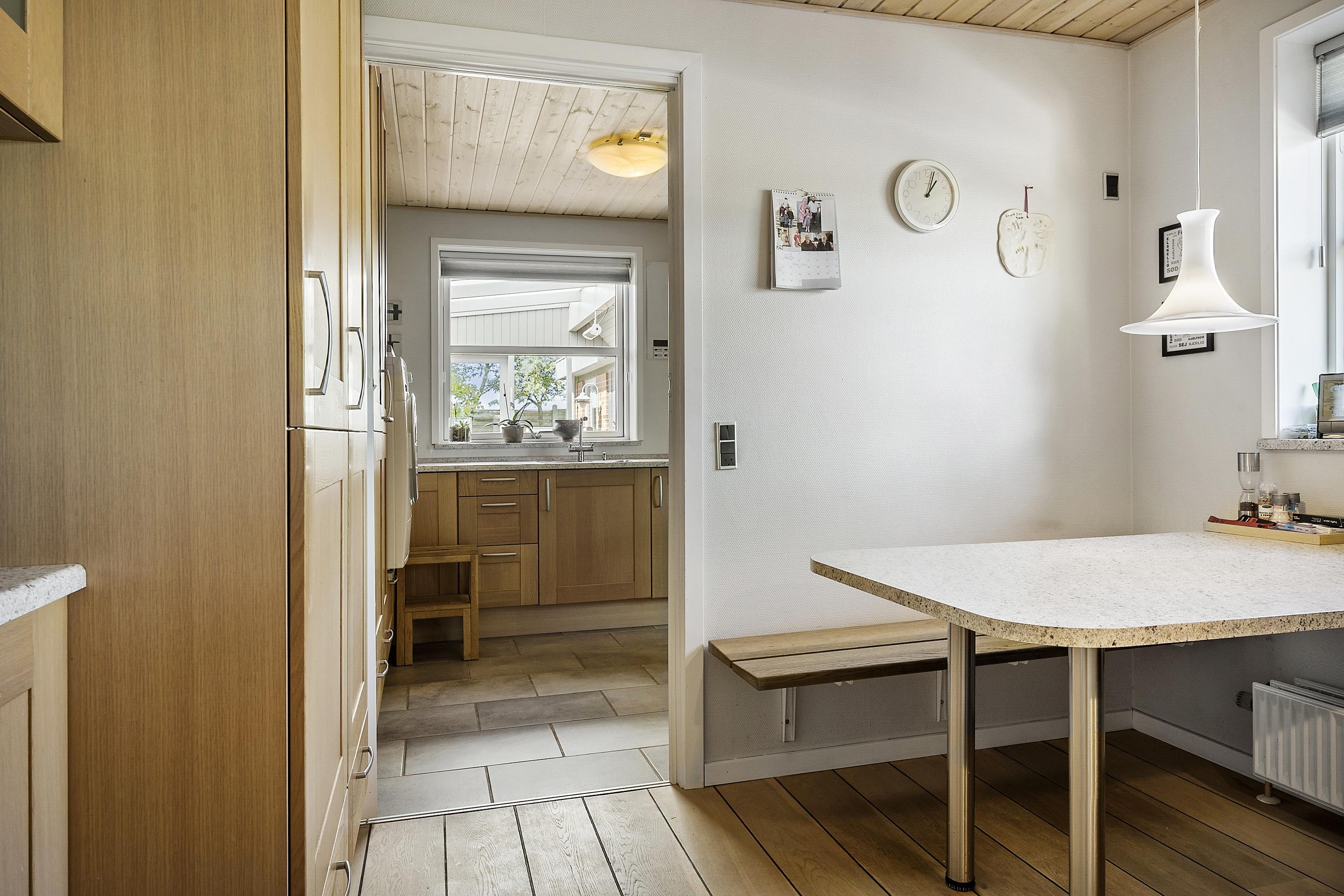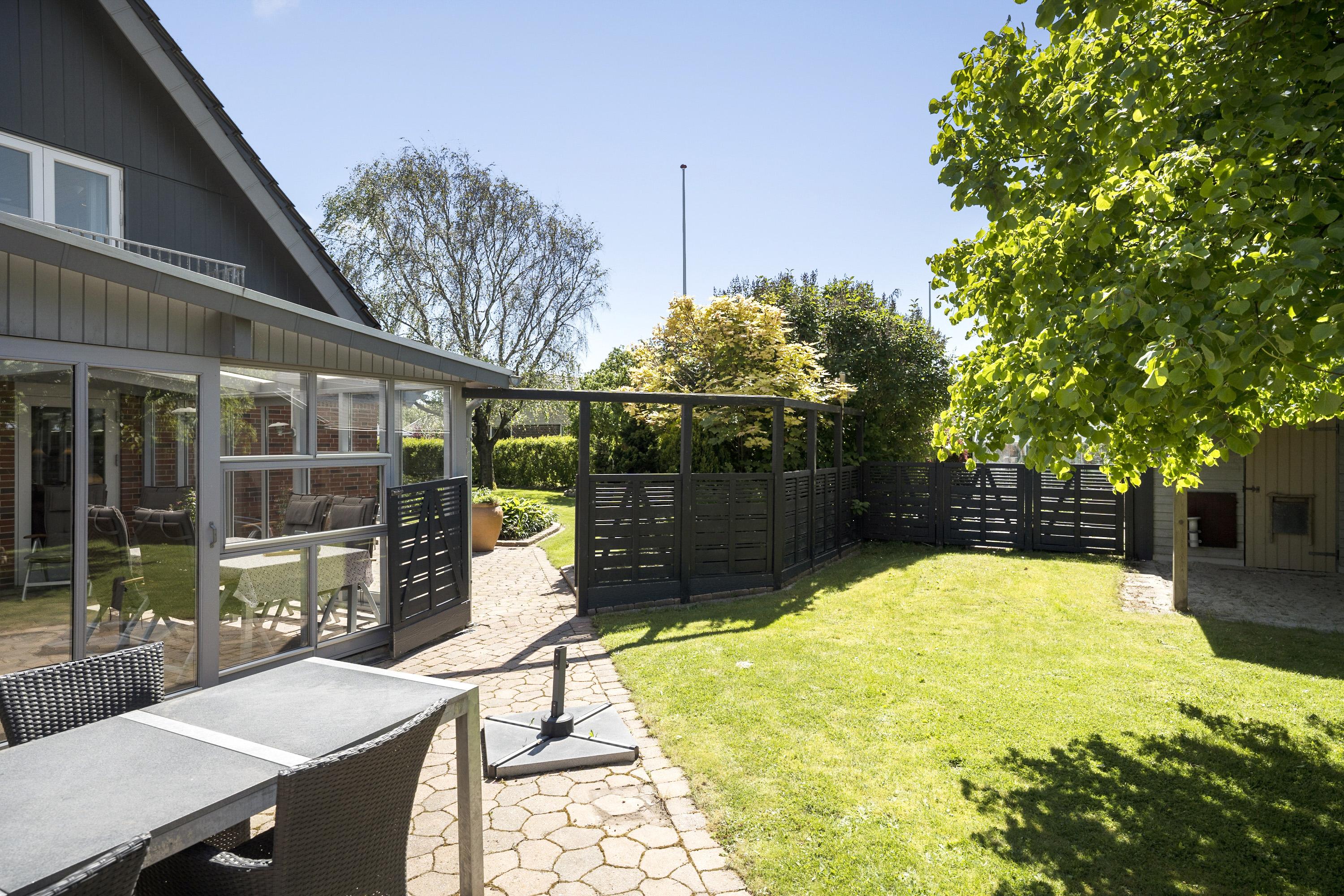 Villaen er opført i 1981 i charmerende rødbrune sten og tilbyder et væld af moderne faciliteter som vedligeholdelsesfrie materialer og solceller, der sikrer en energieffektiv