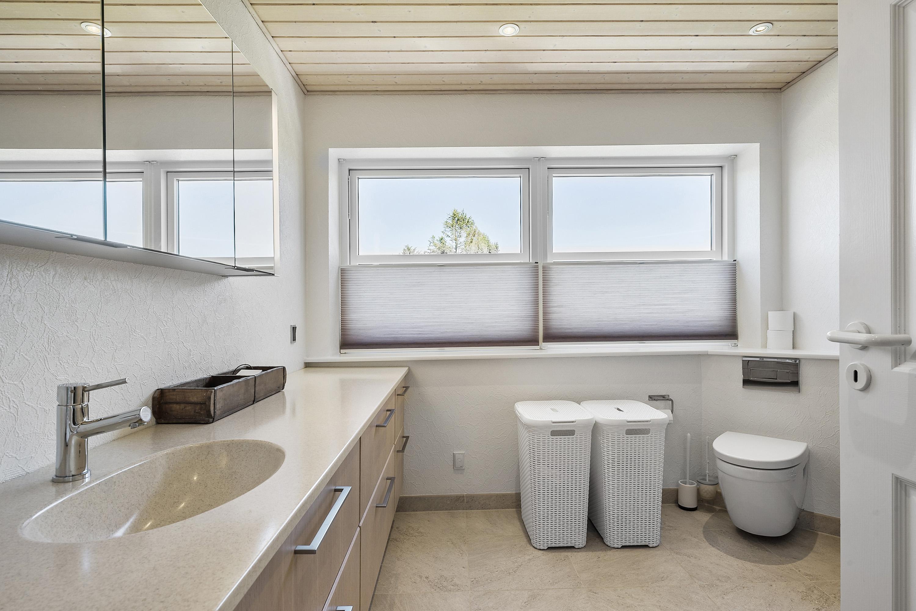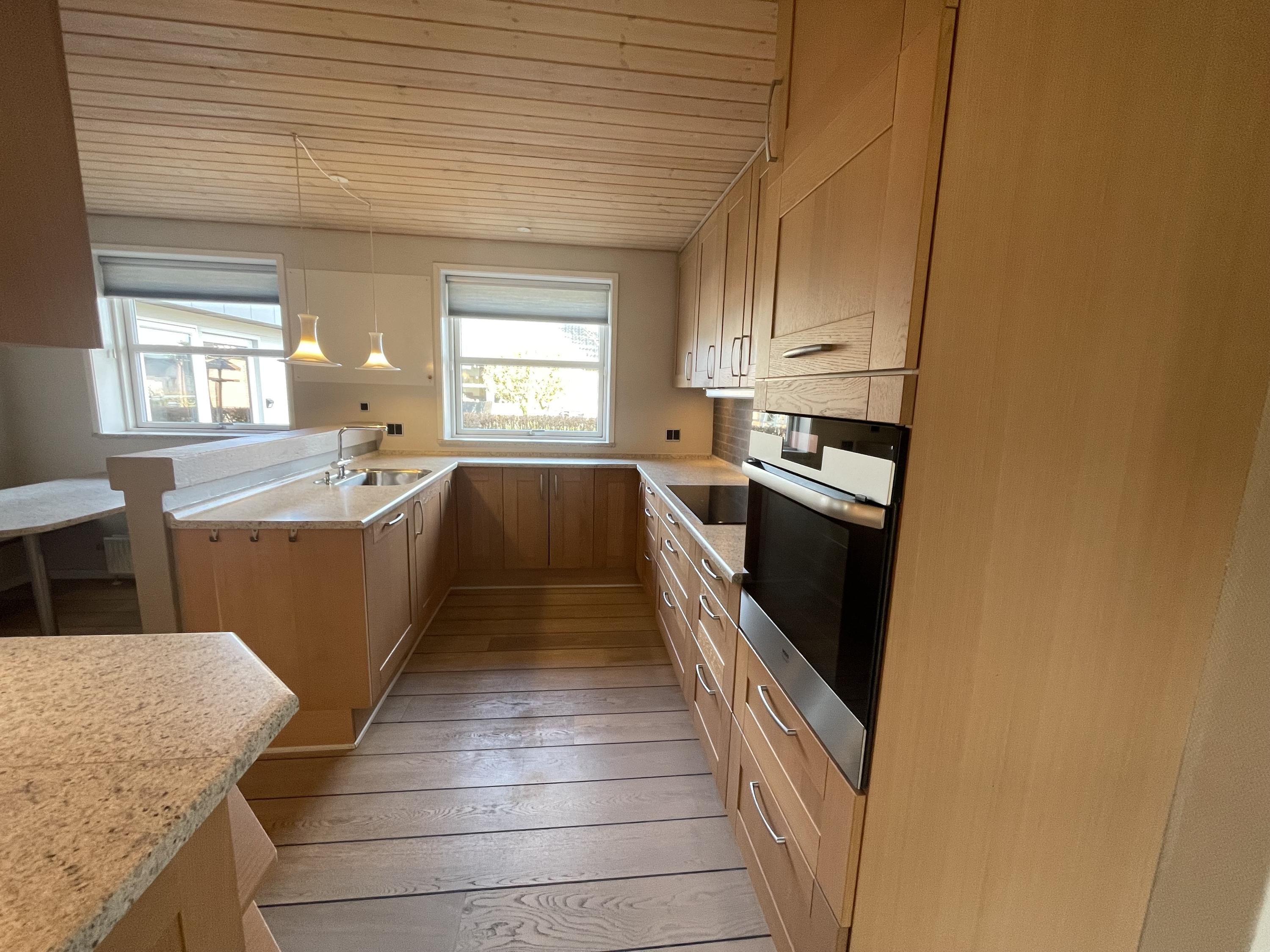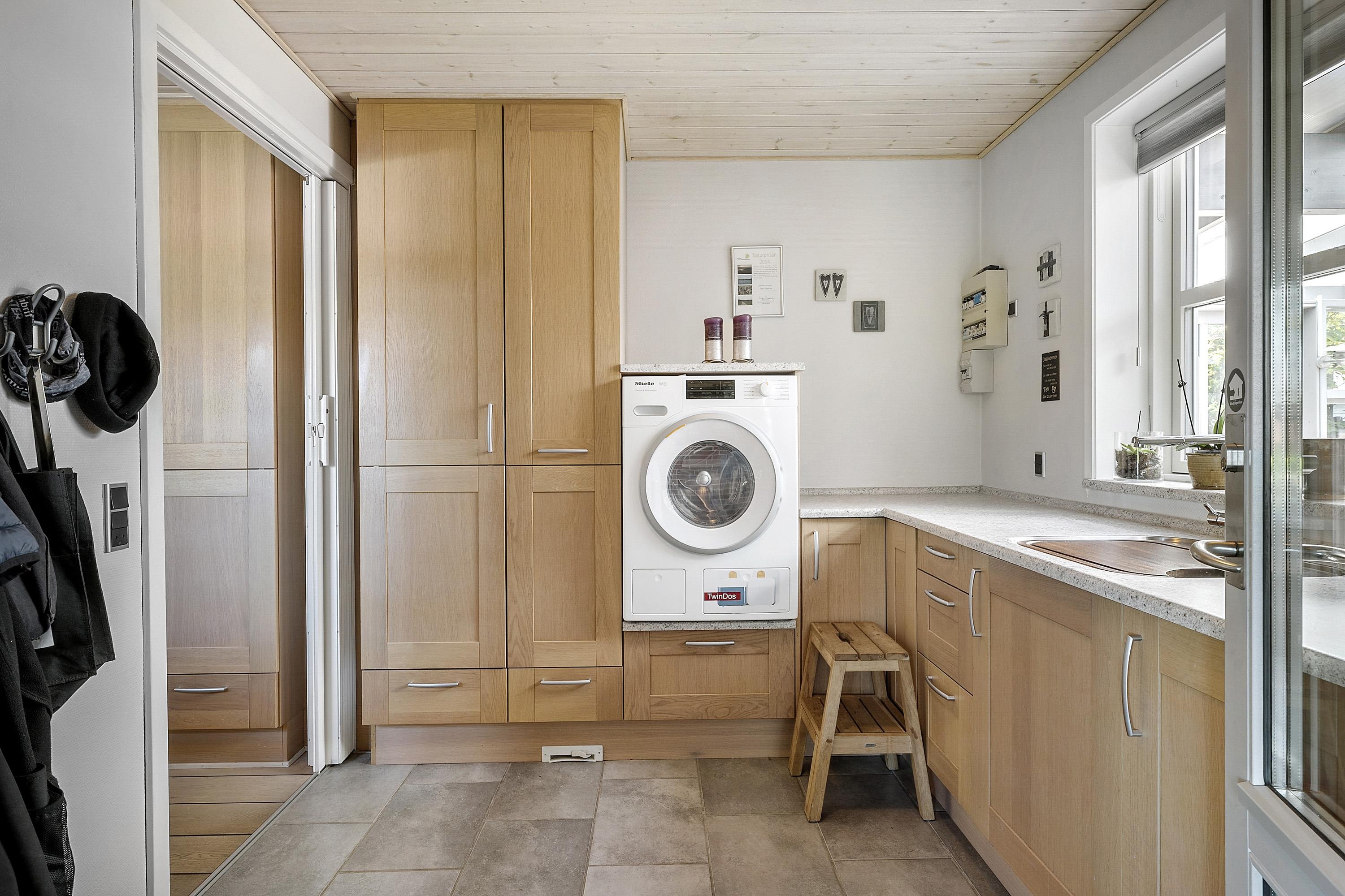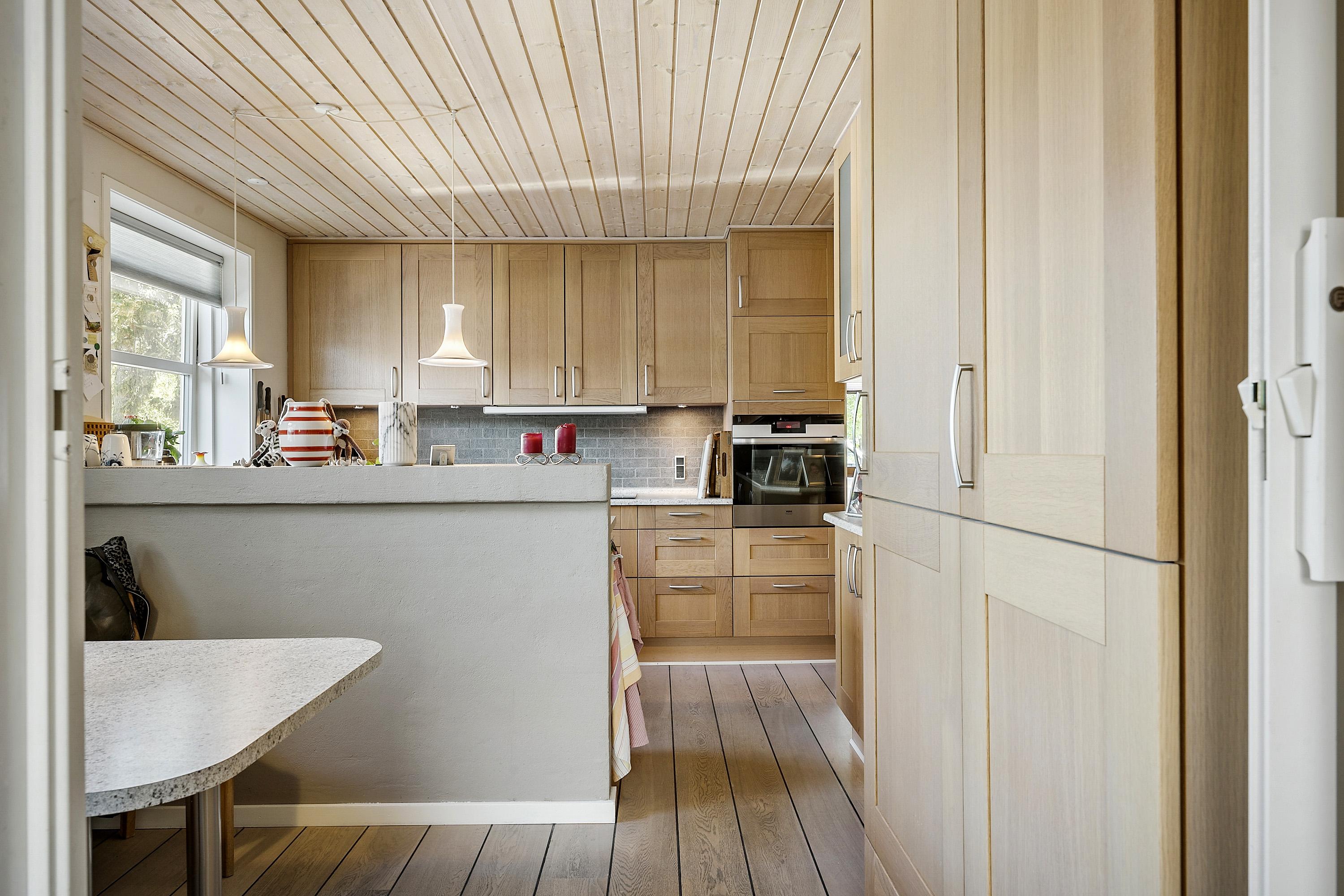 Villaen er opført i 1981 i charmerende rødbrune sten og tilbyder et væld af moderne faciliteter som vedligeholdelsesfrie materialer og solceller, der sikrer en energieffektiv
