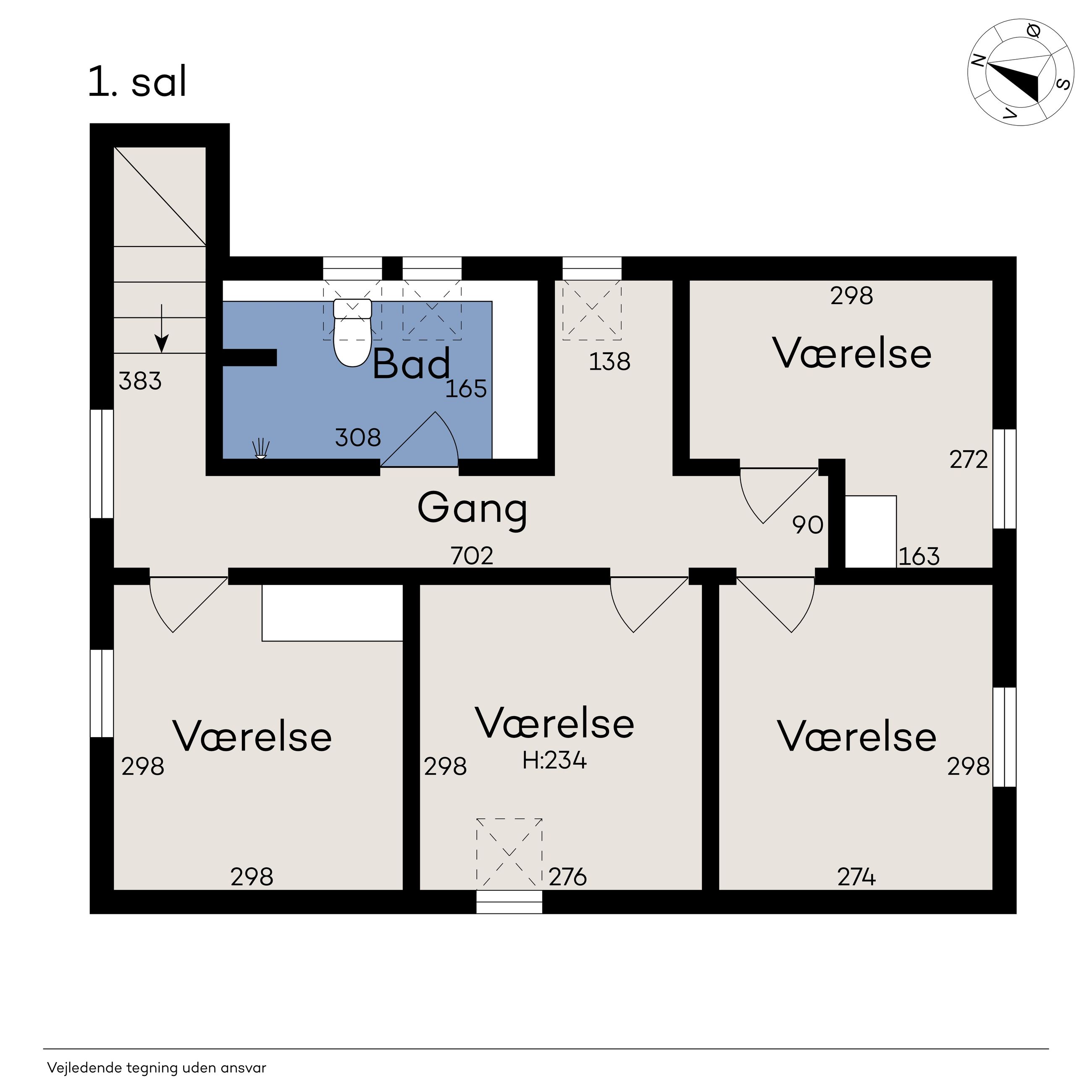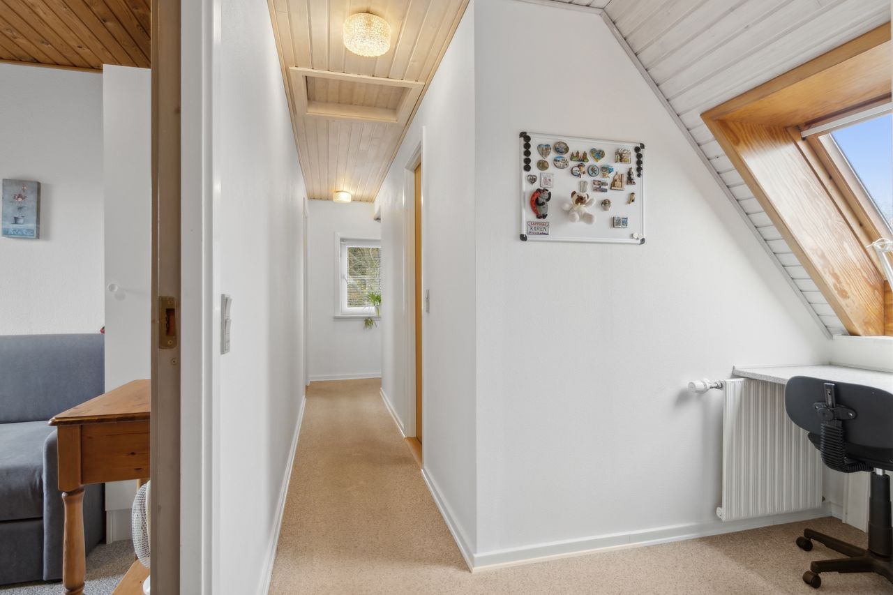 Førstesalen består af en lys repos og fordelergang, som giver adgang til 3 gode værelser samt et dejligt soveværelse.